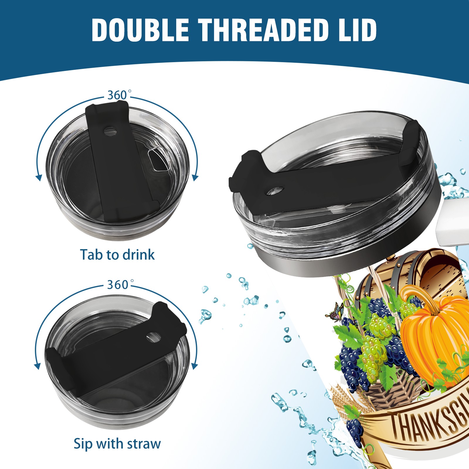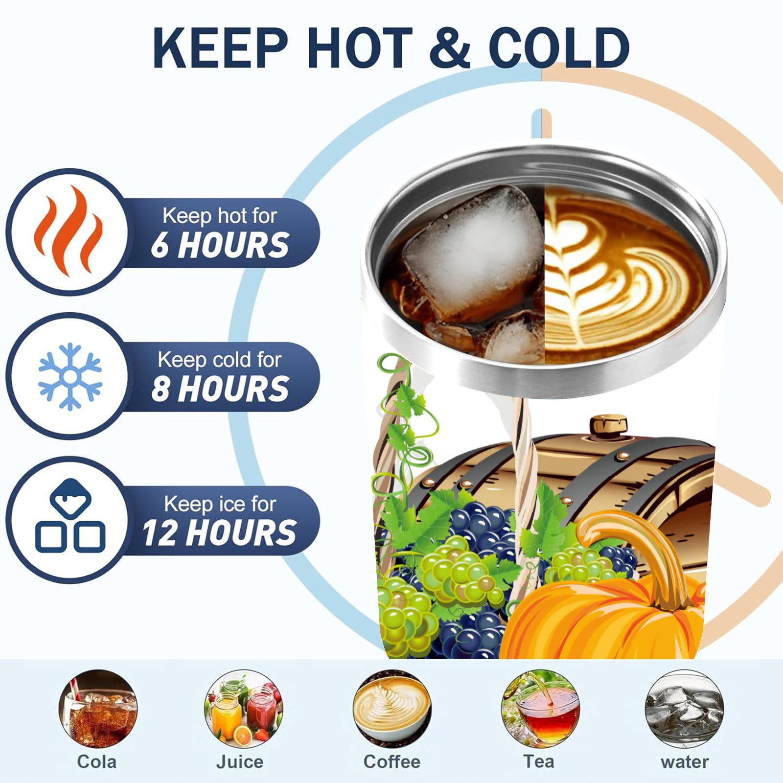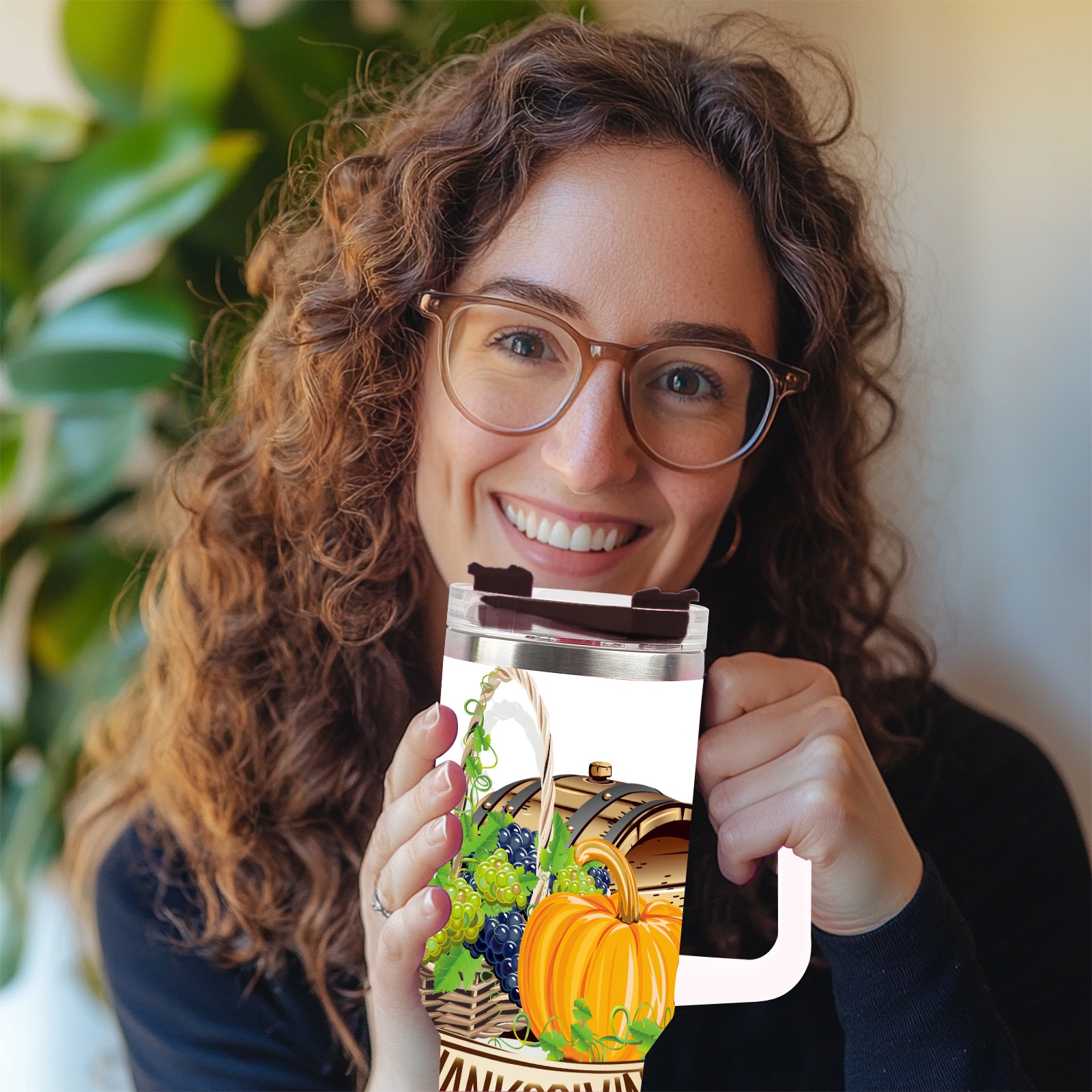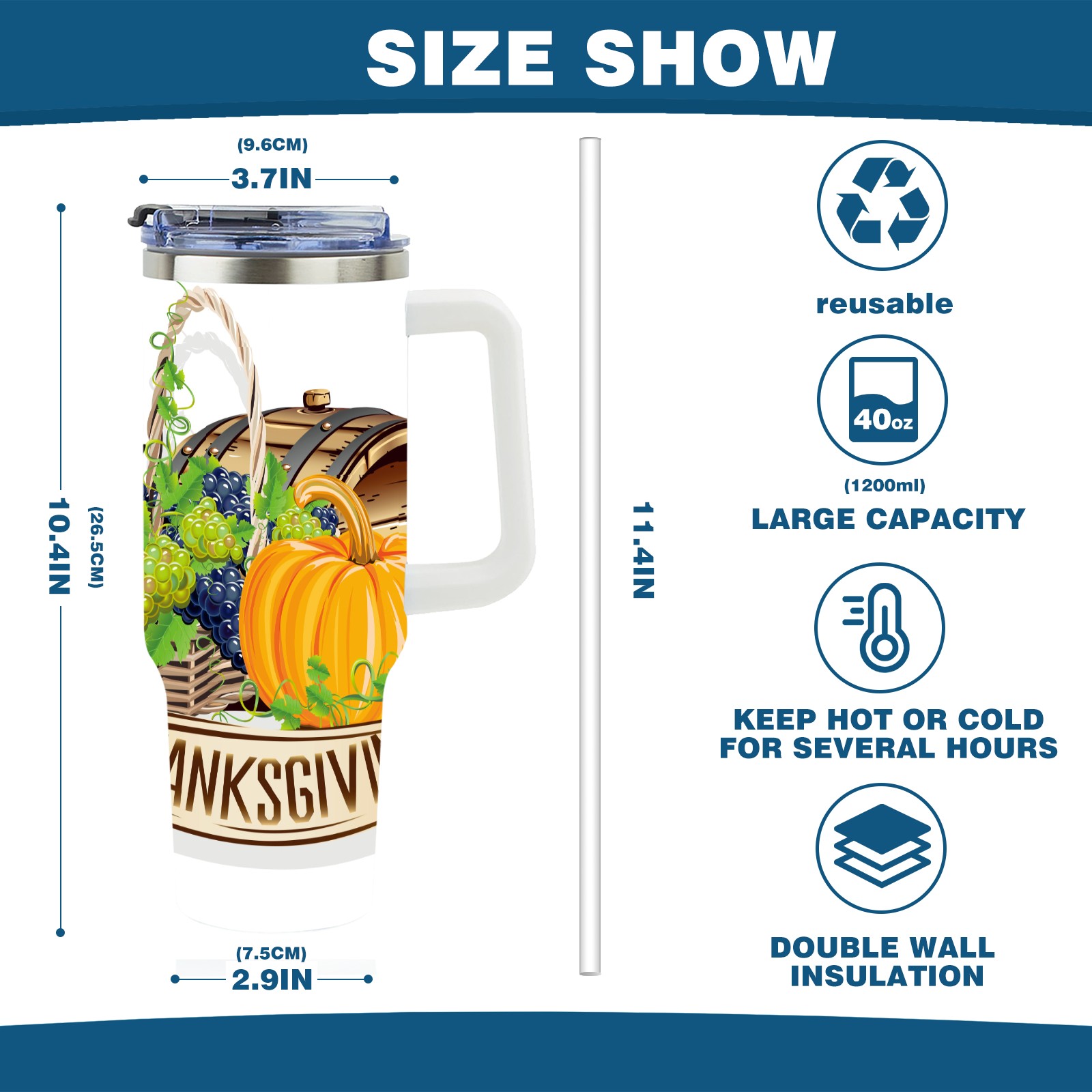 40 унций полностью напечатанный автомобильный стакан happy Thanksgiving Day grapes