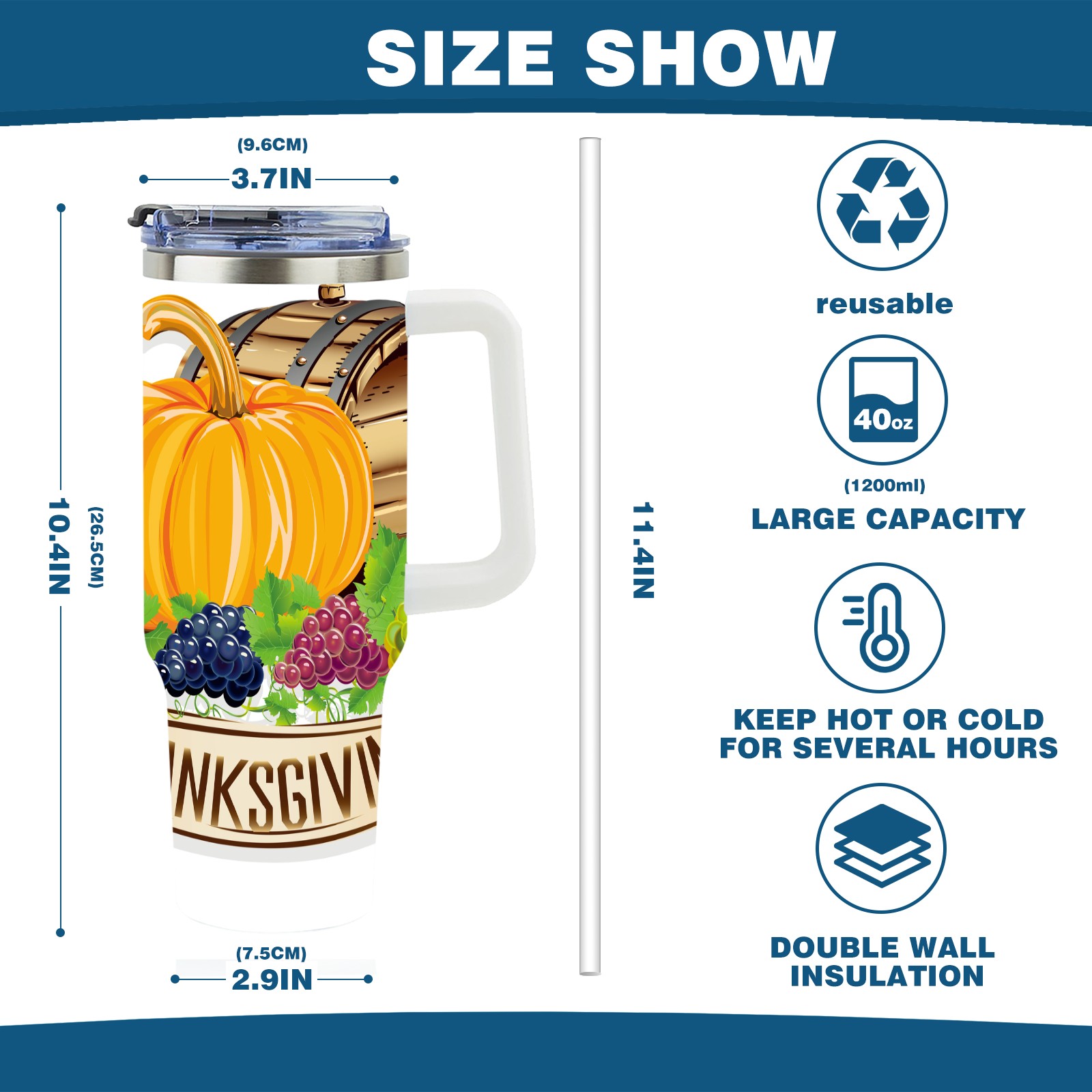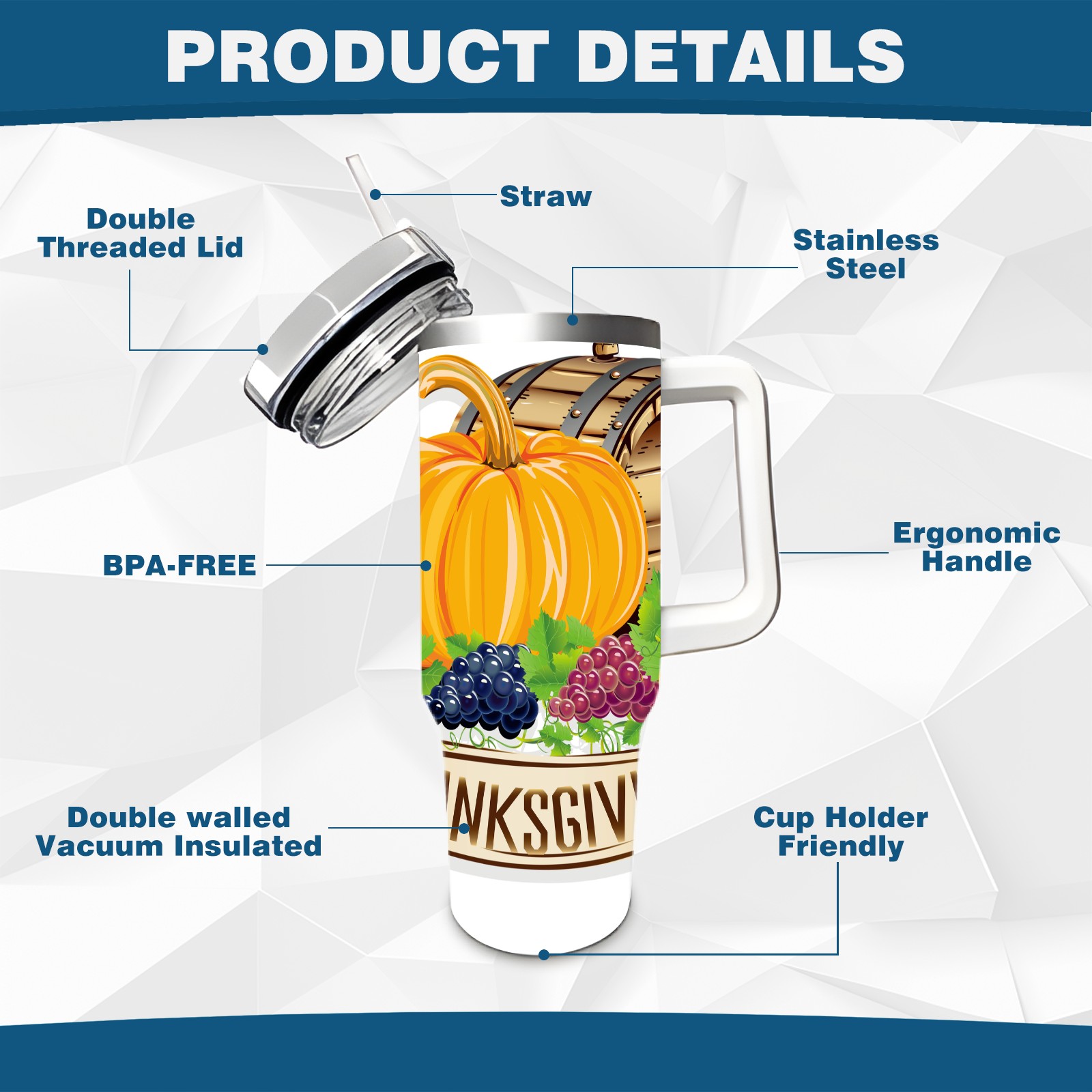 40 унций полностью напечатанный автомобильный стакан Thanksgiving Day