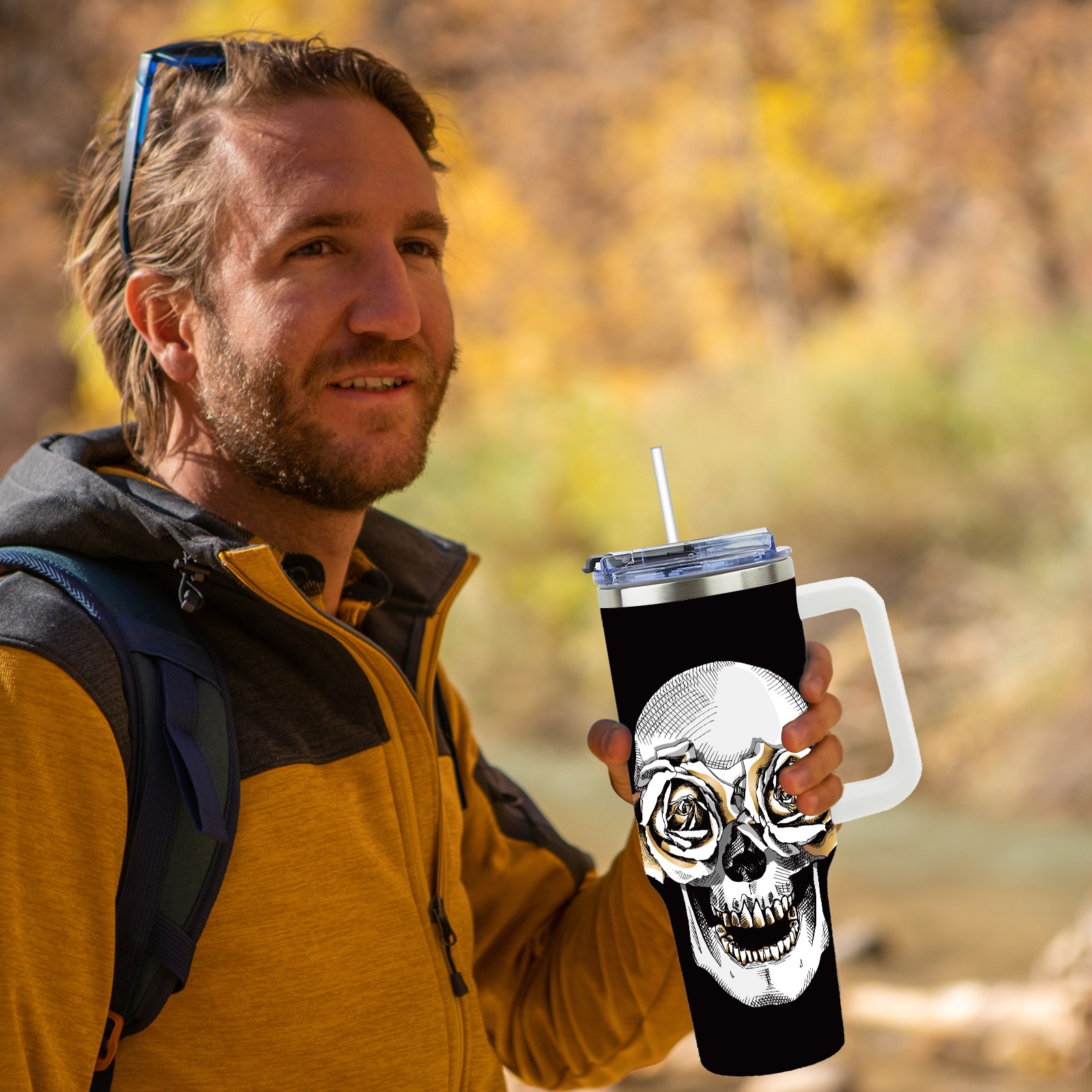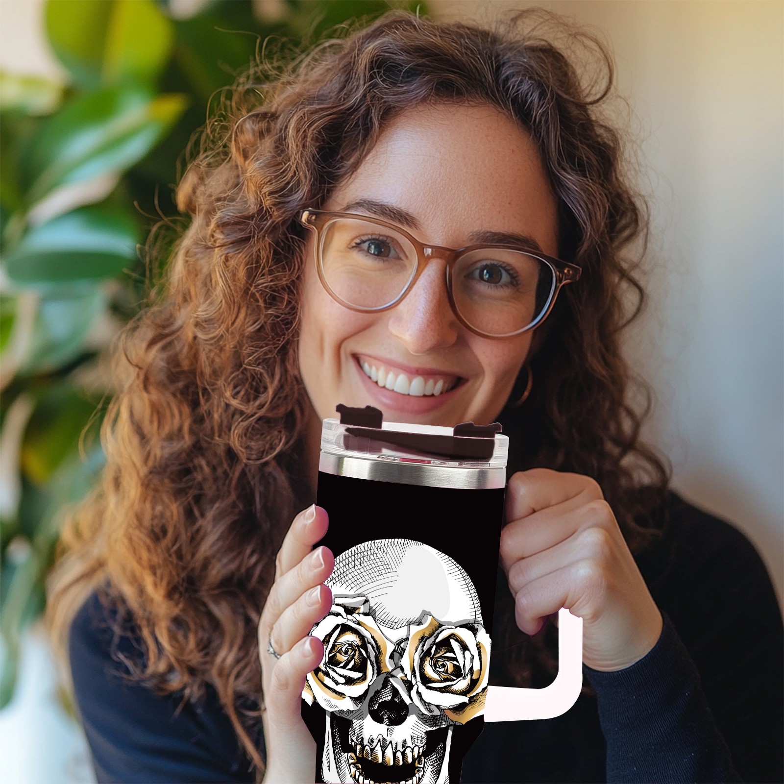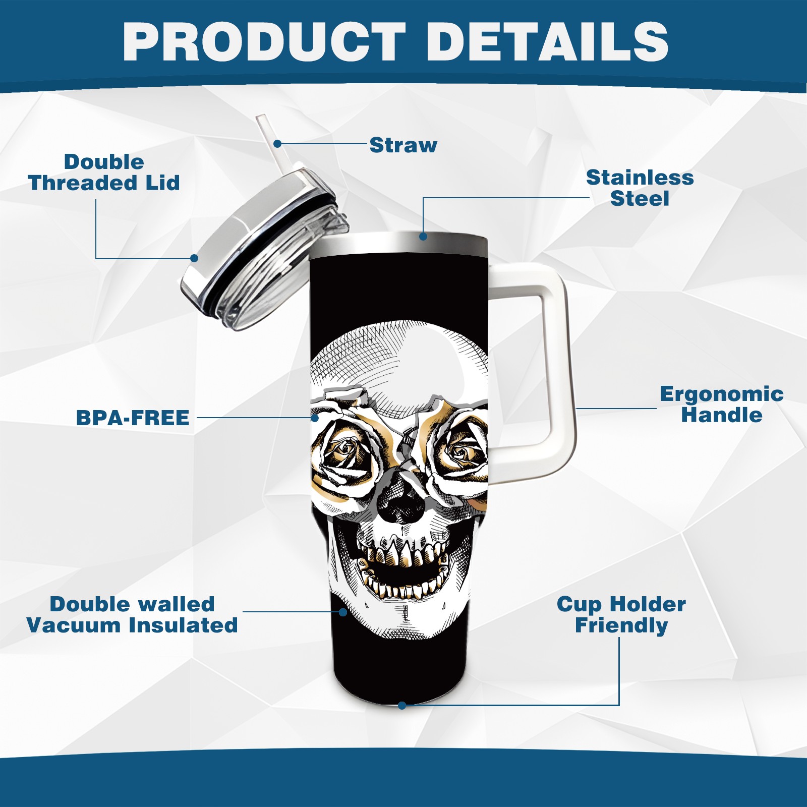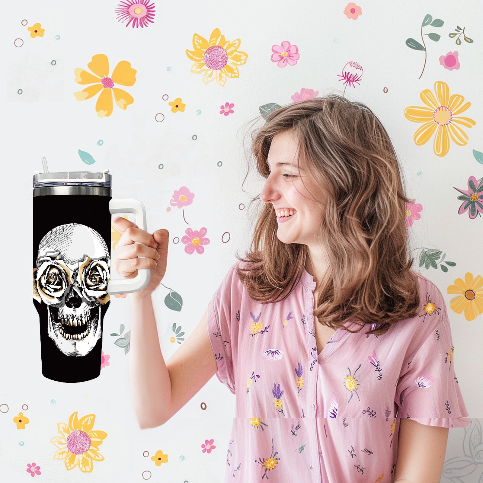 40 унций полностью напечатанный автомобильный стакан flower skull