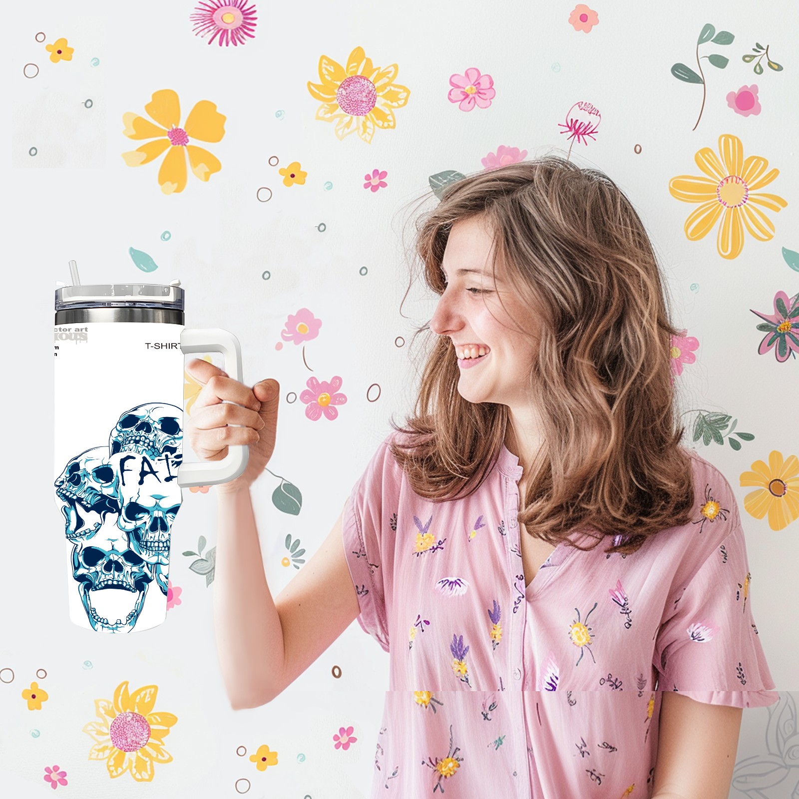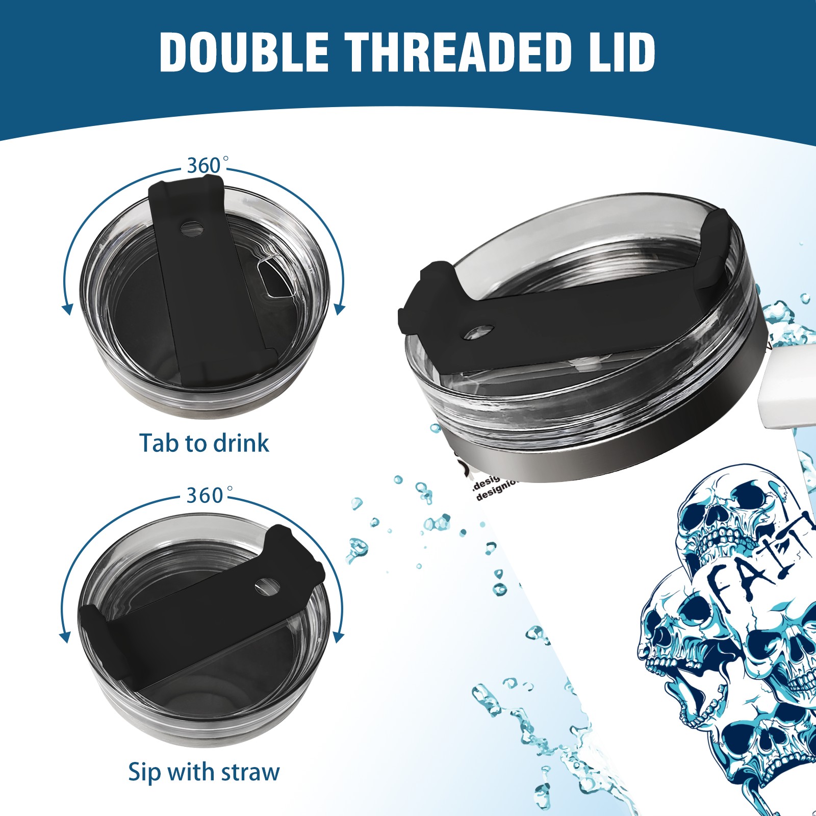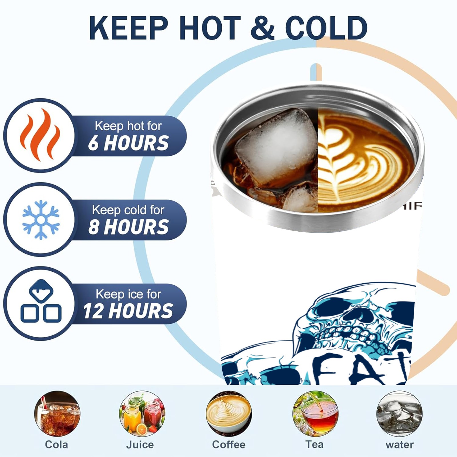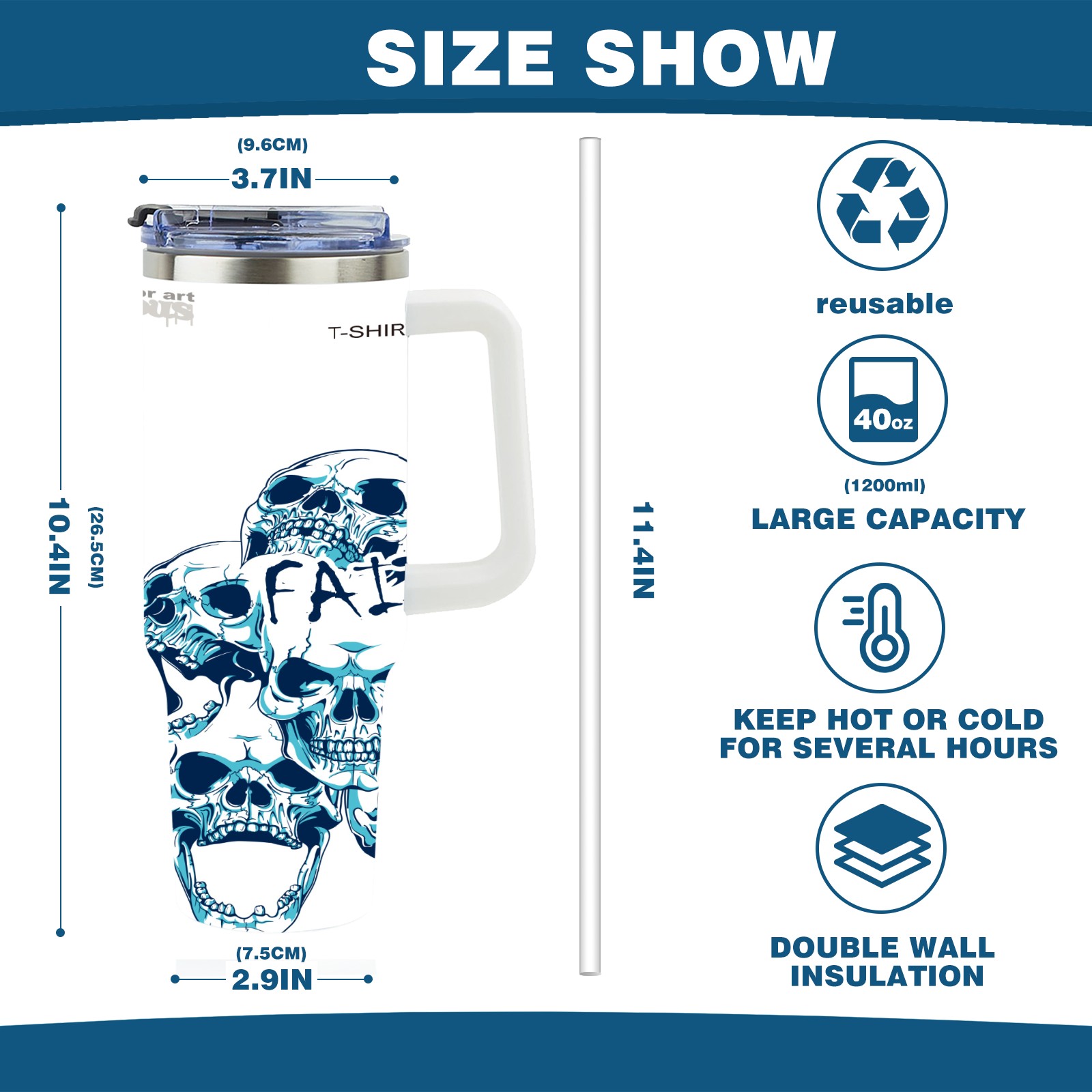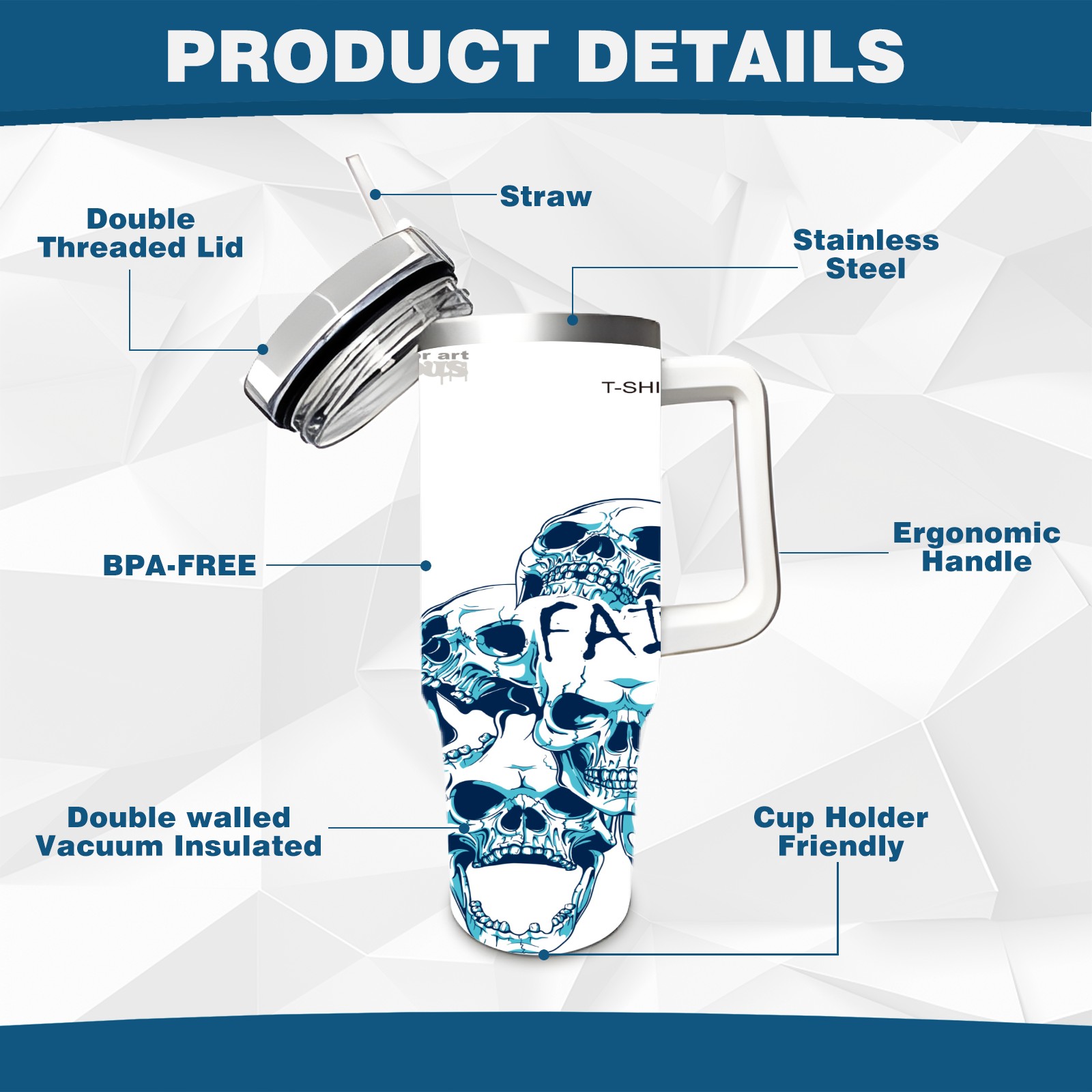 40 унций полностью напечатанный автомобильный стакан blue skull