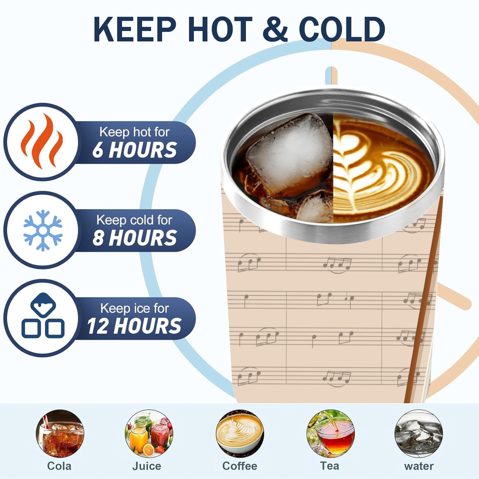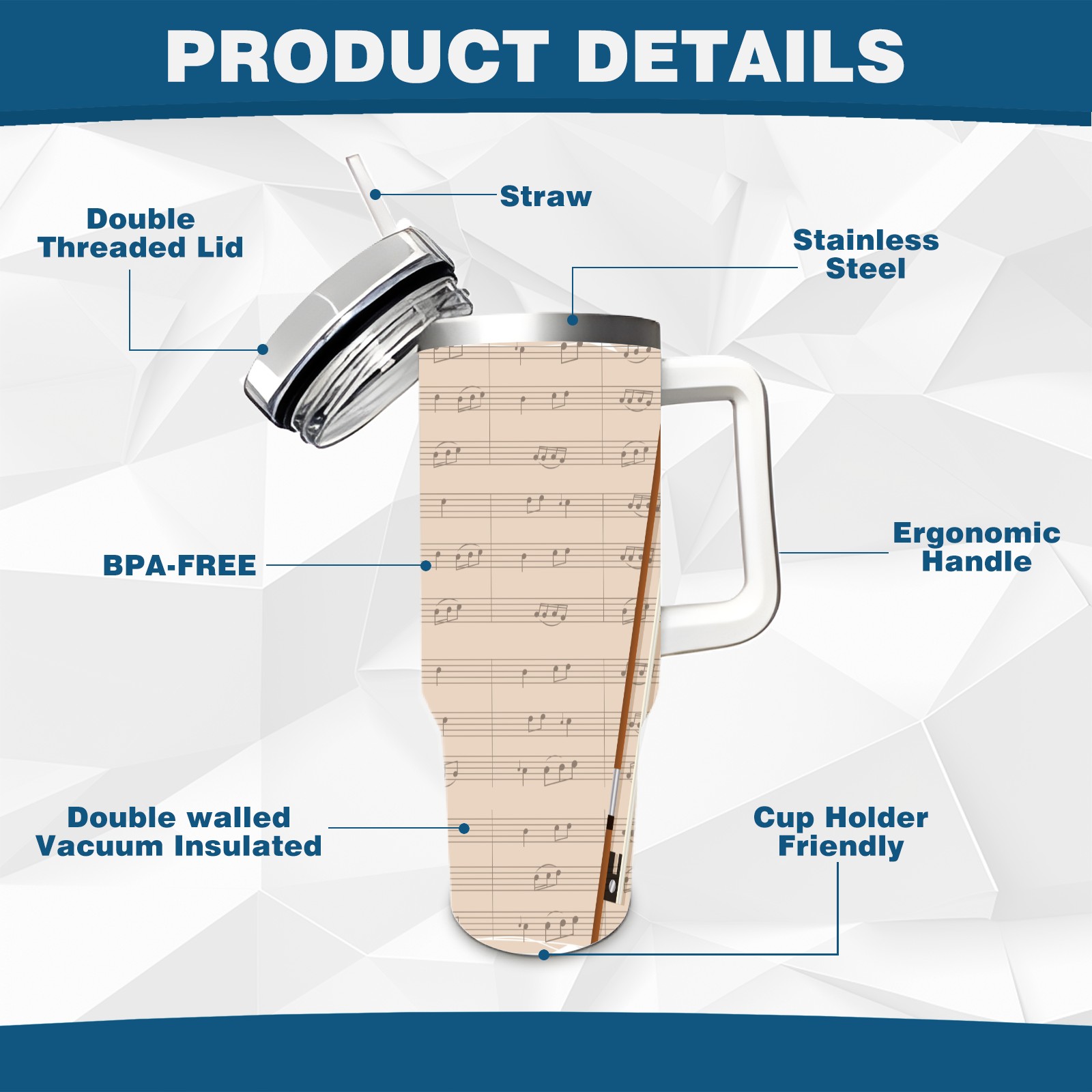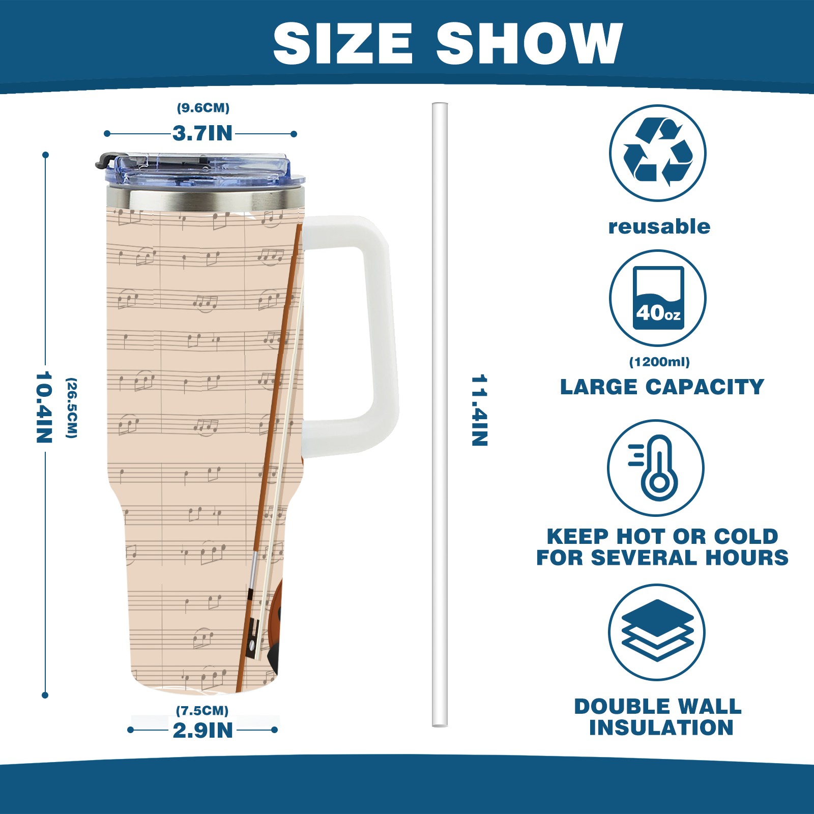 40 унций полностью напечатанный автомобильный стакан Violin With Music Notes