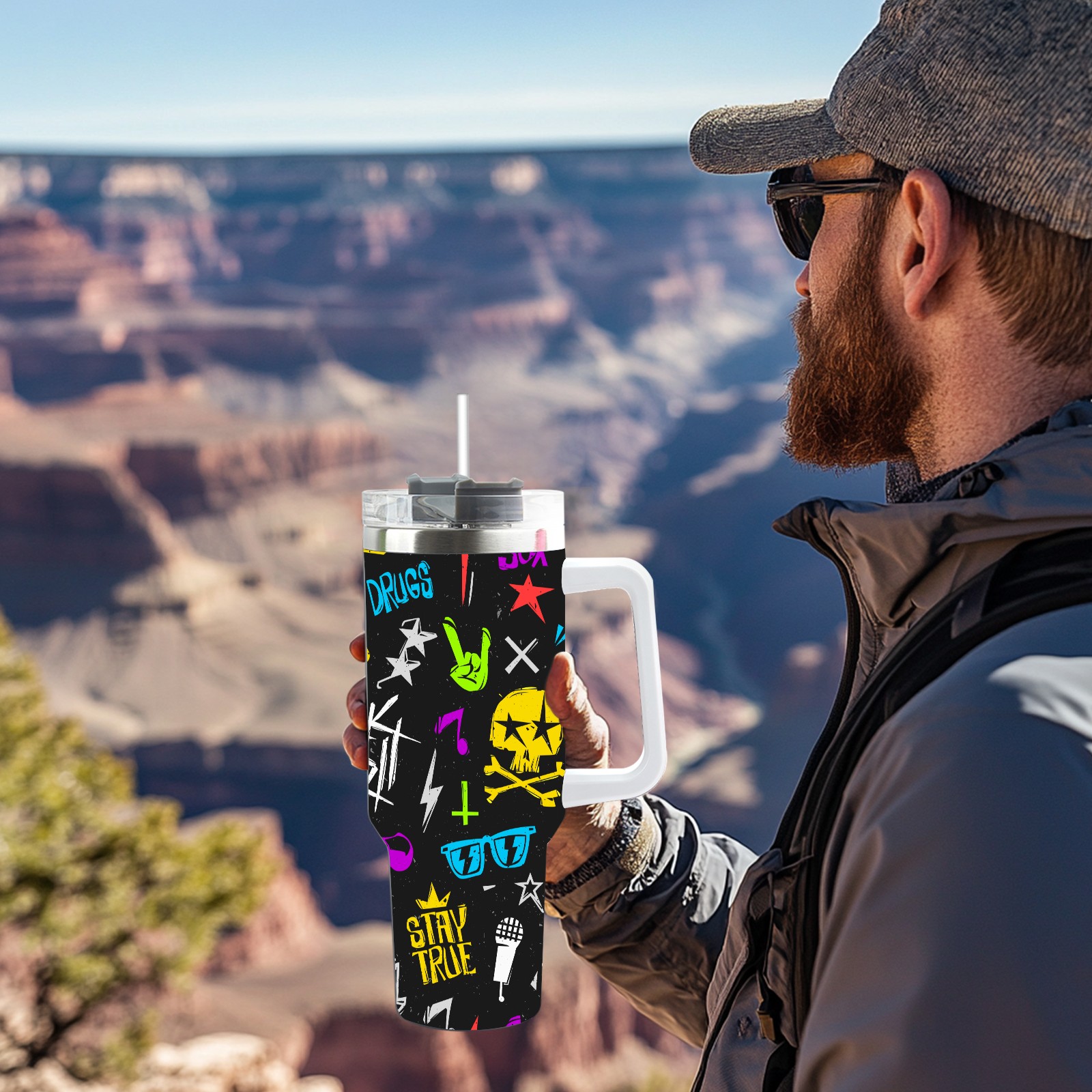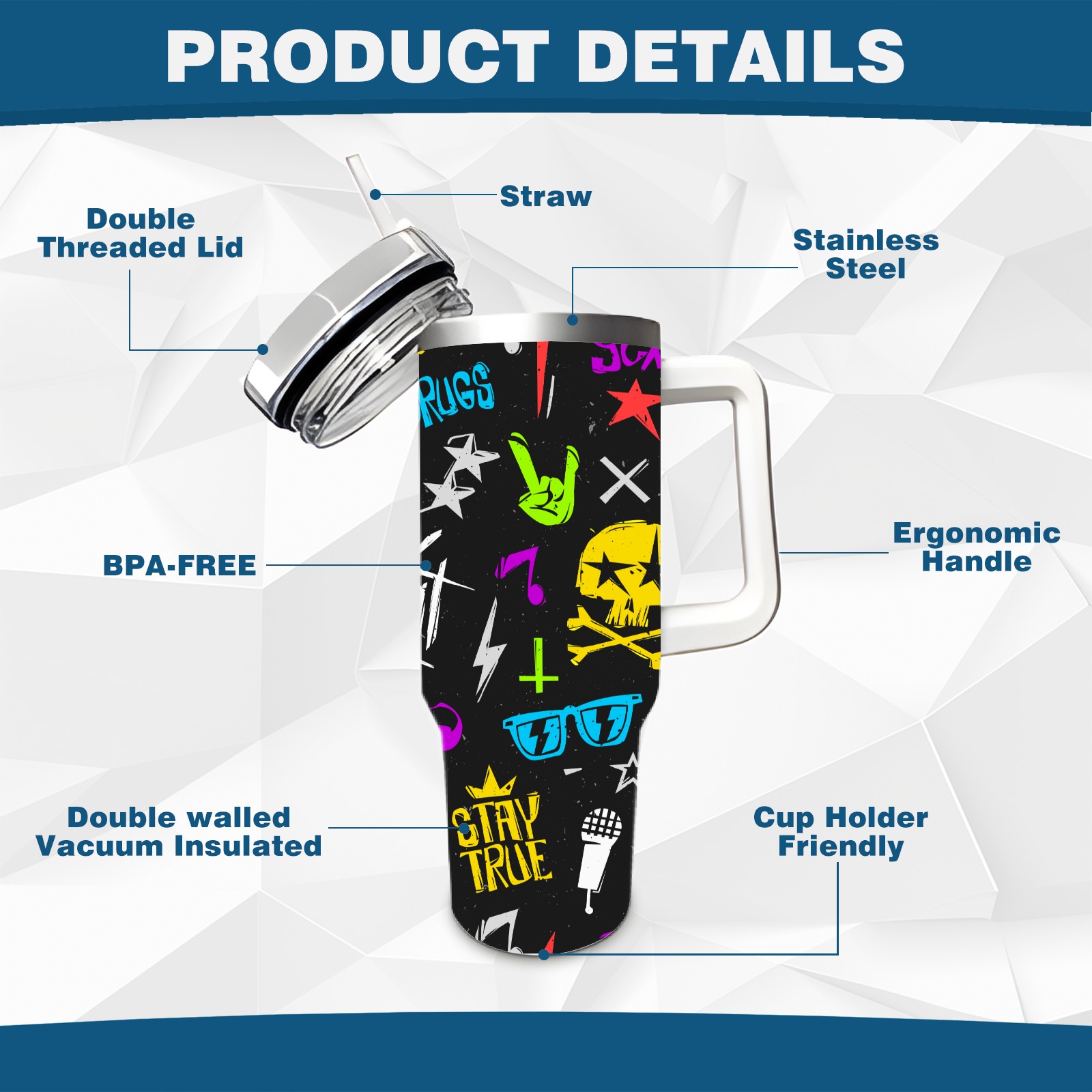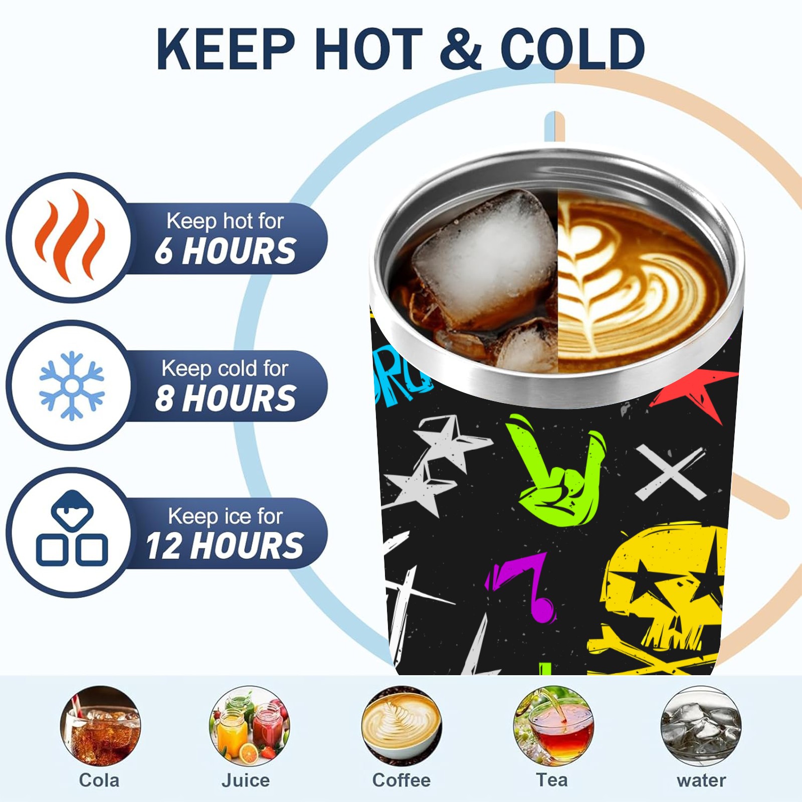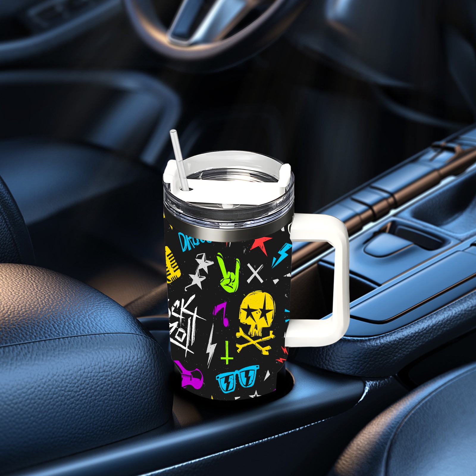 40 унций полностью напечатанный автомобильный стакан Rock 'N' Roll Music Skull
