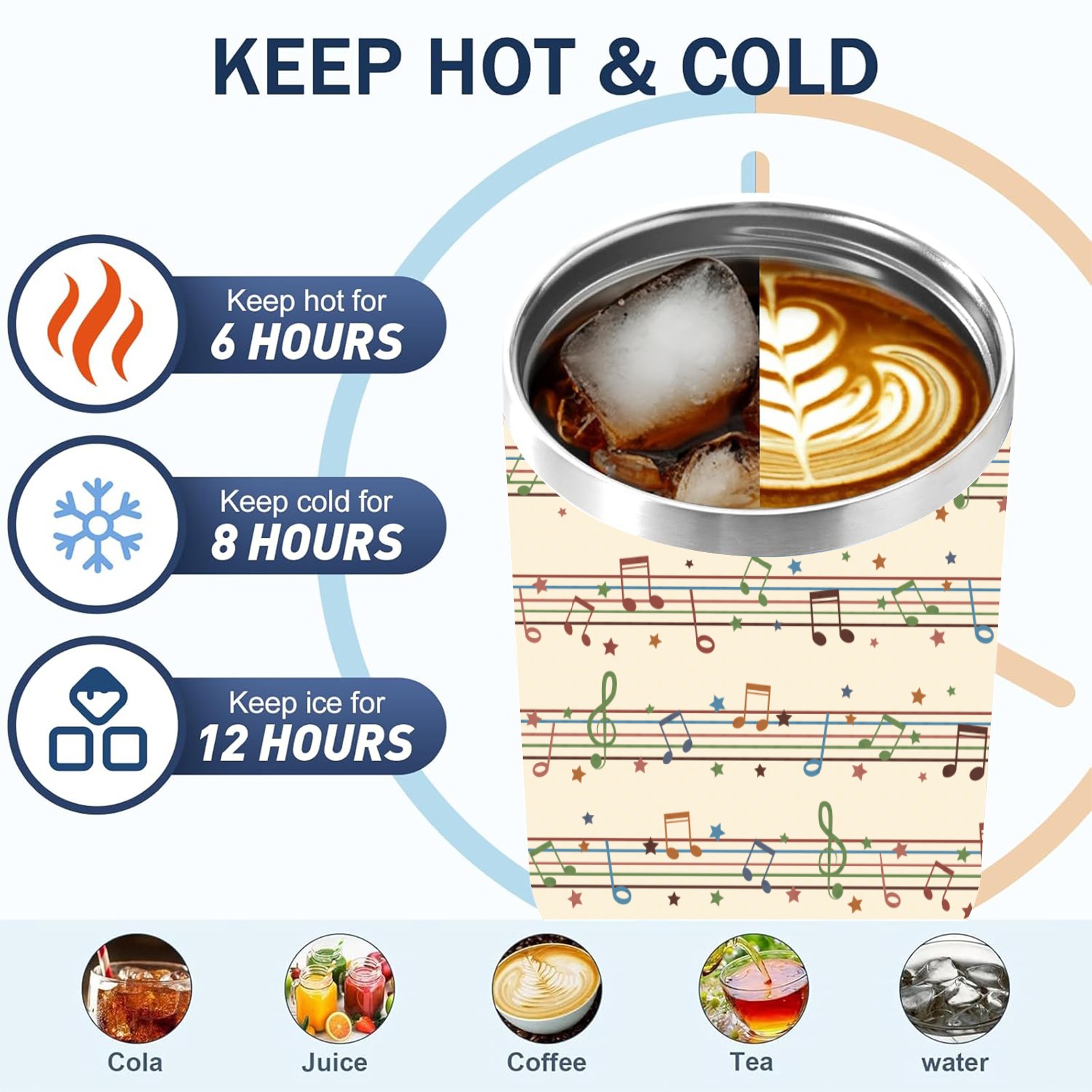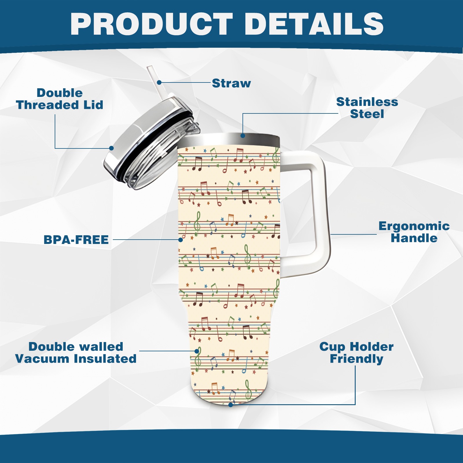 40 унций полностью напечатанный автомобильный стакан Retro Musical Notes