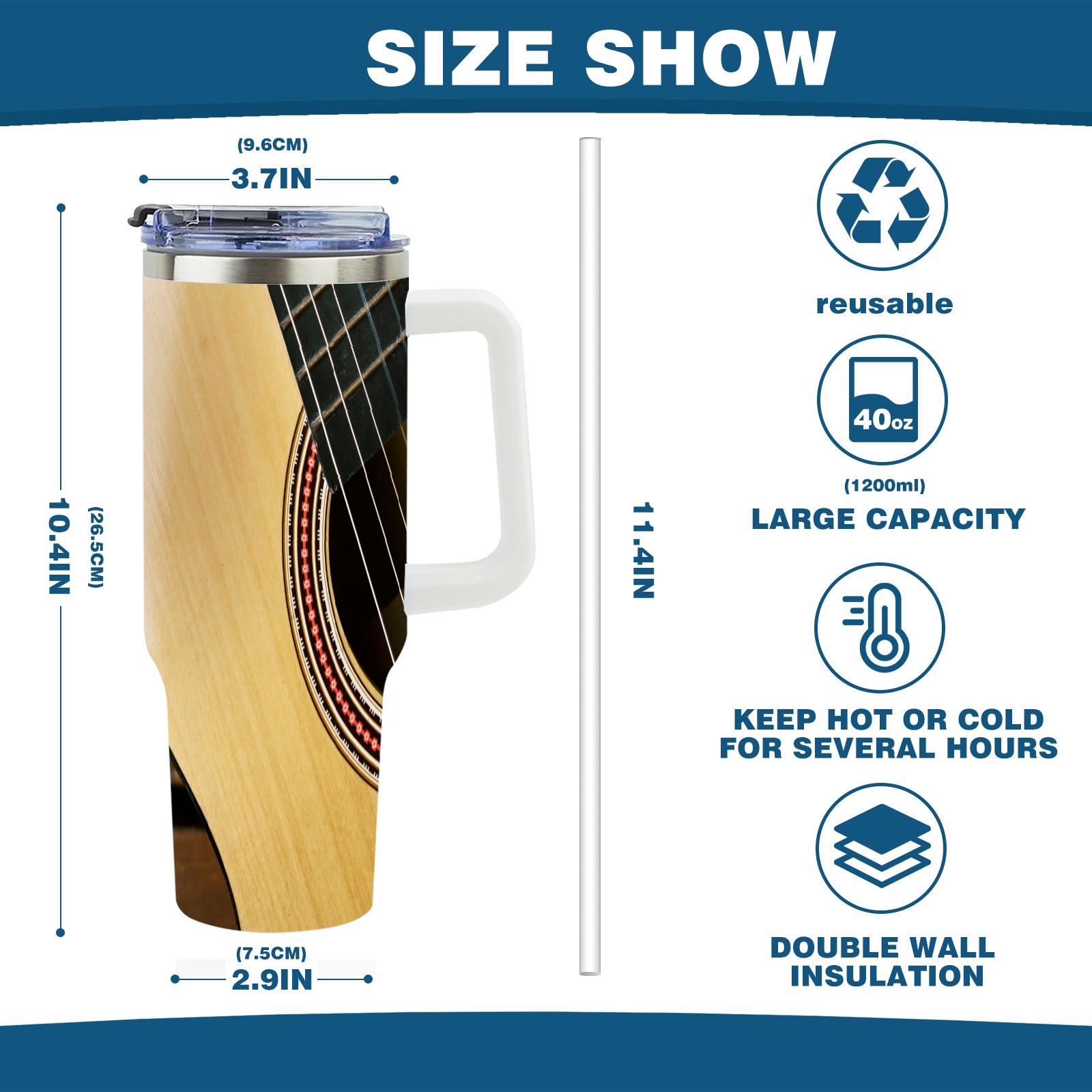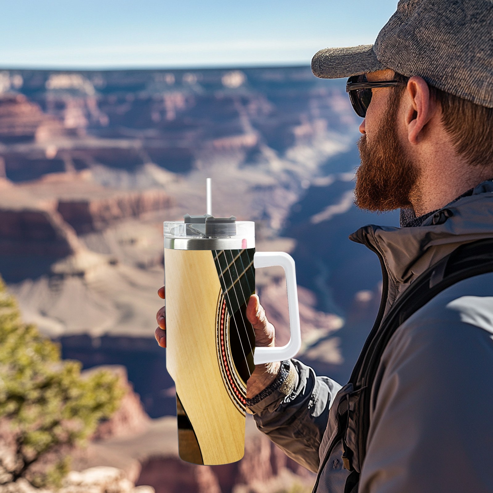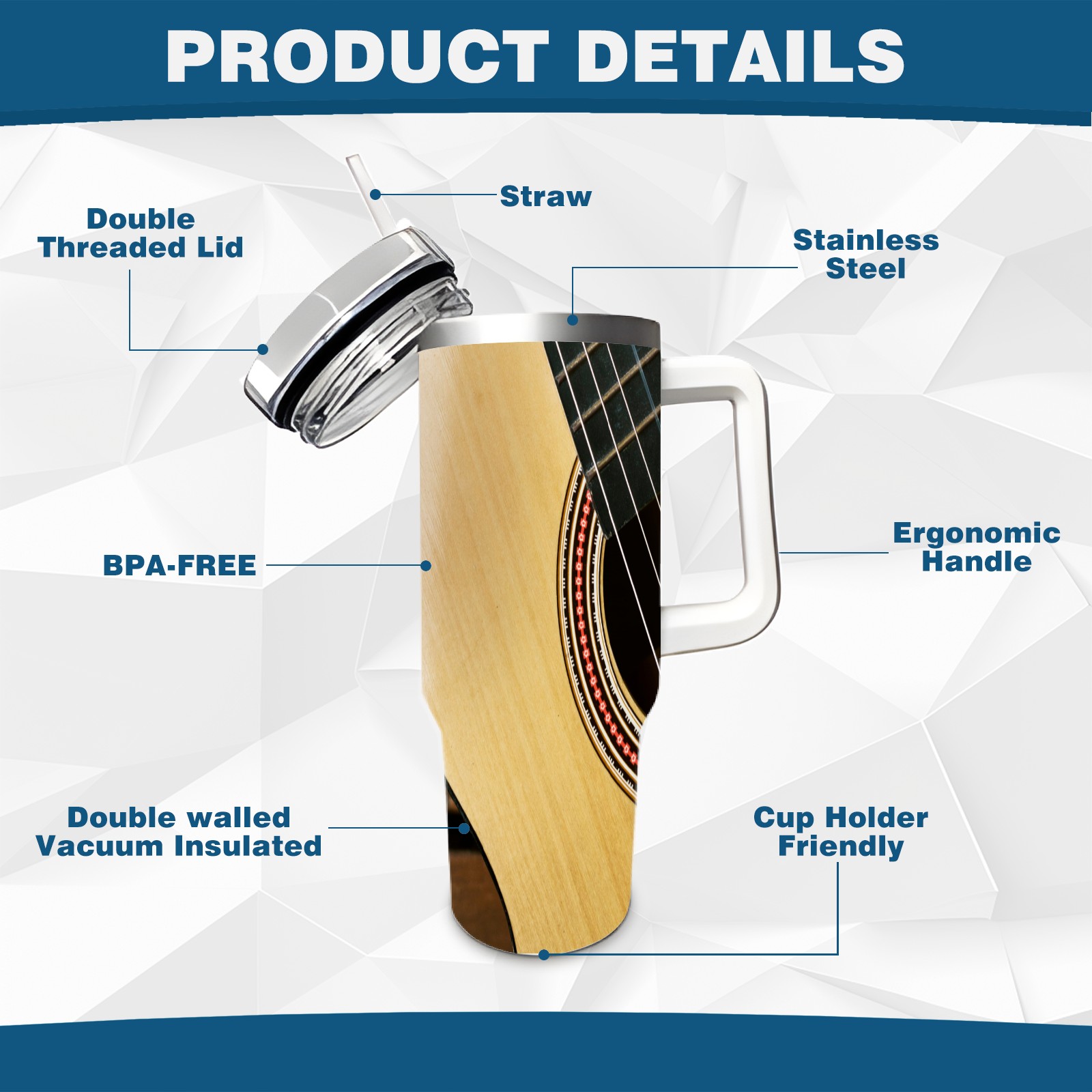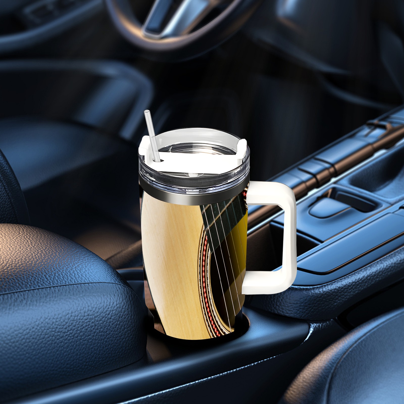 40 унций полностью напечатанный автомобильный стакан Retro Brown Guitar