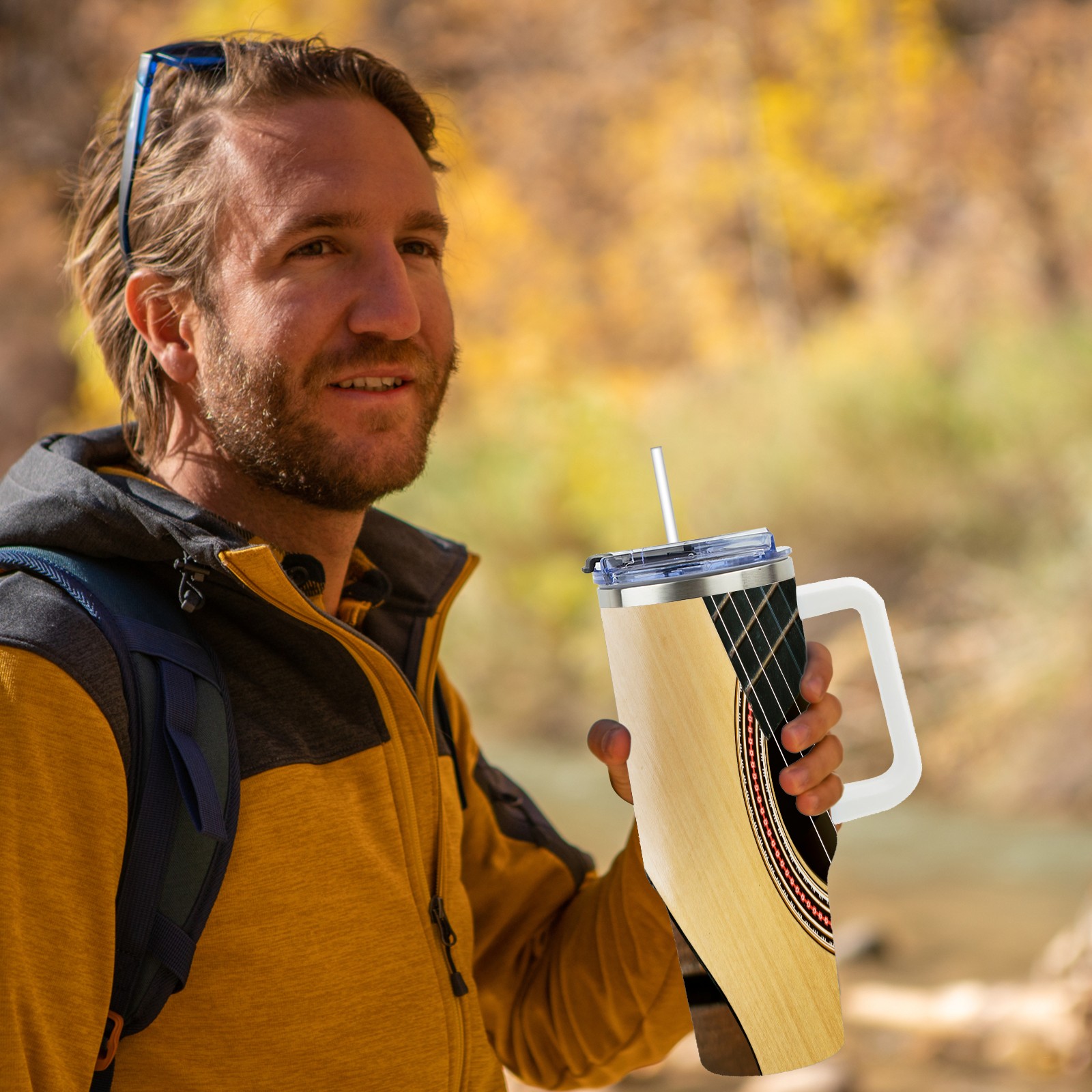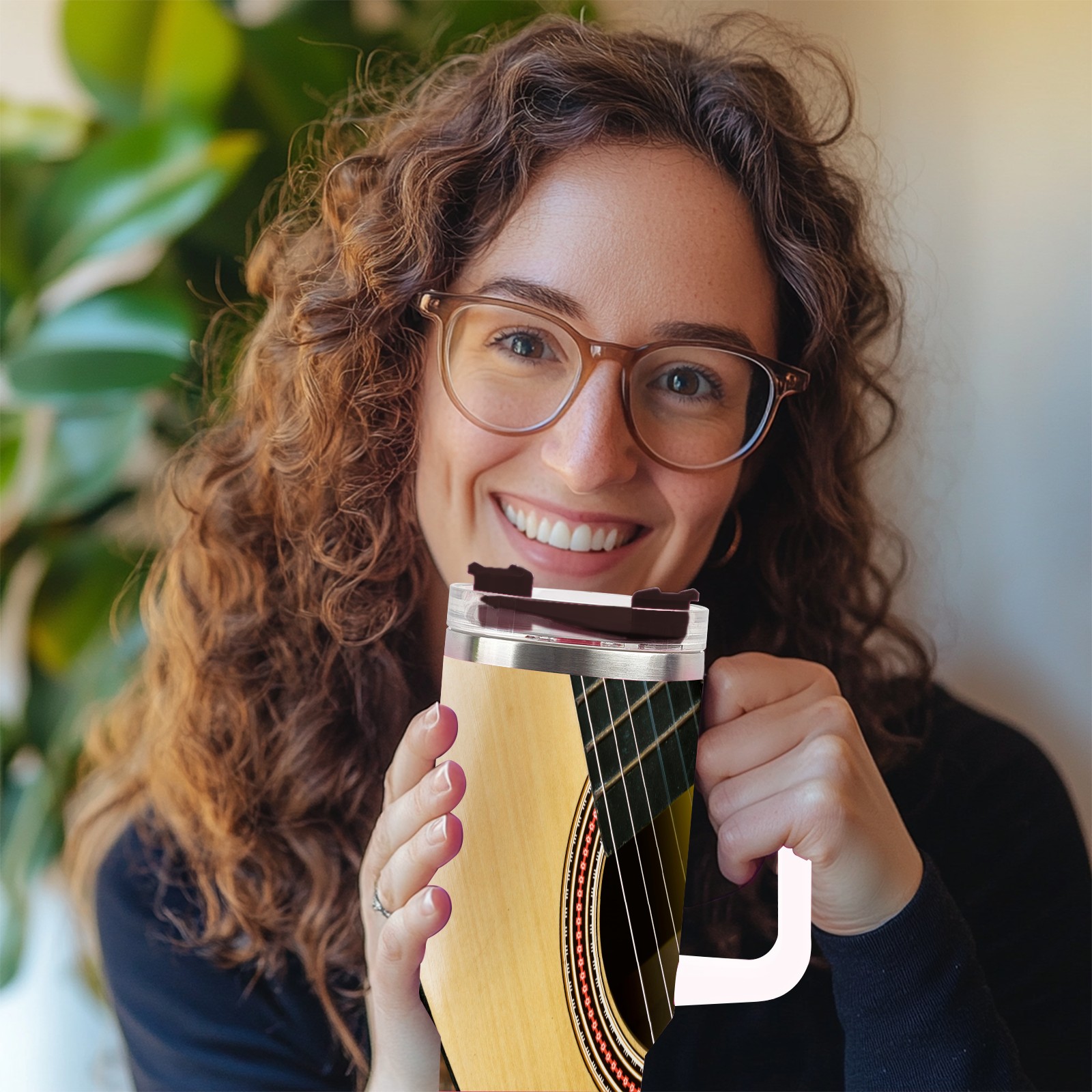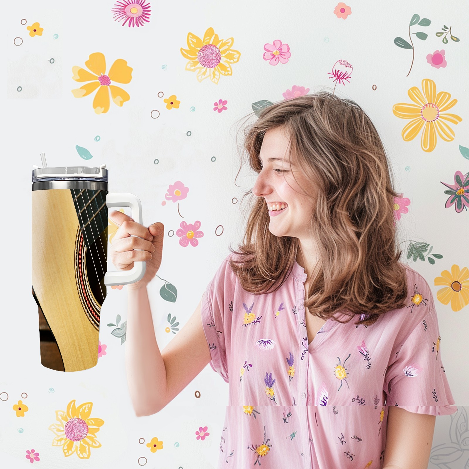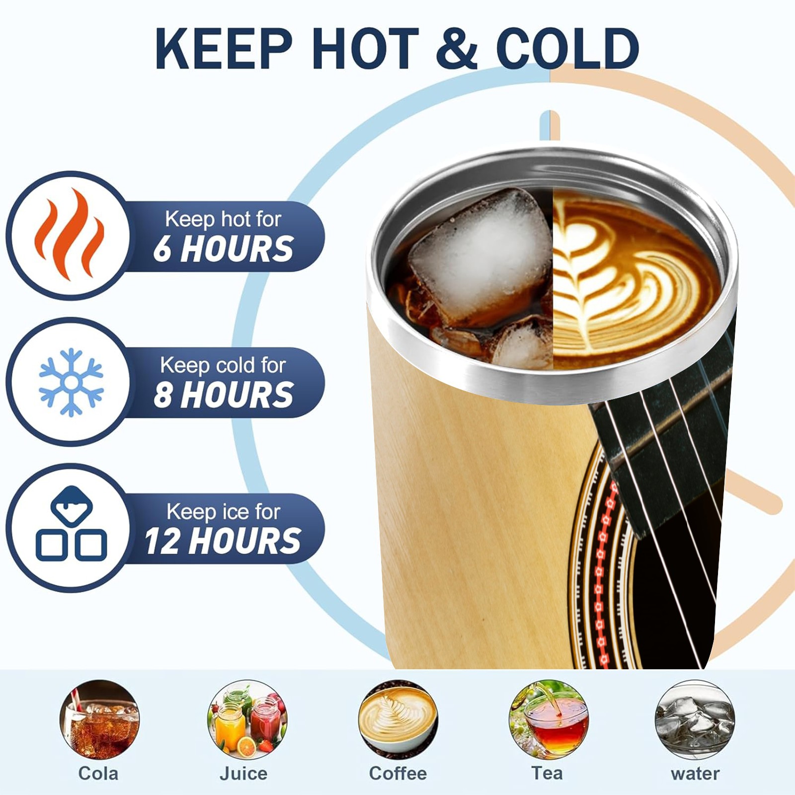 40 унций полностью напечатанный автомобильный стакан Retro Brown Guitar