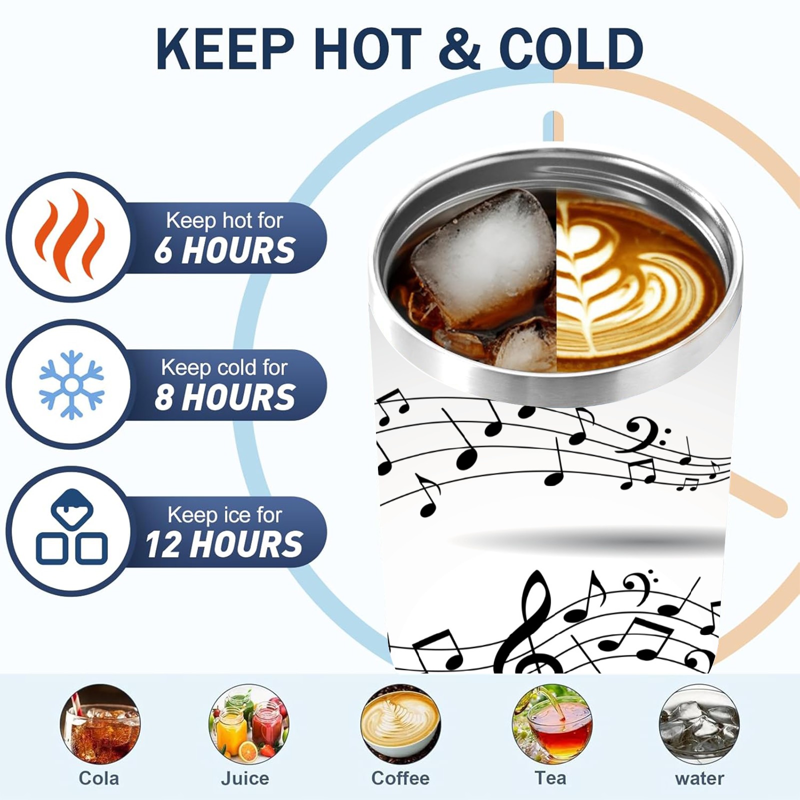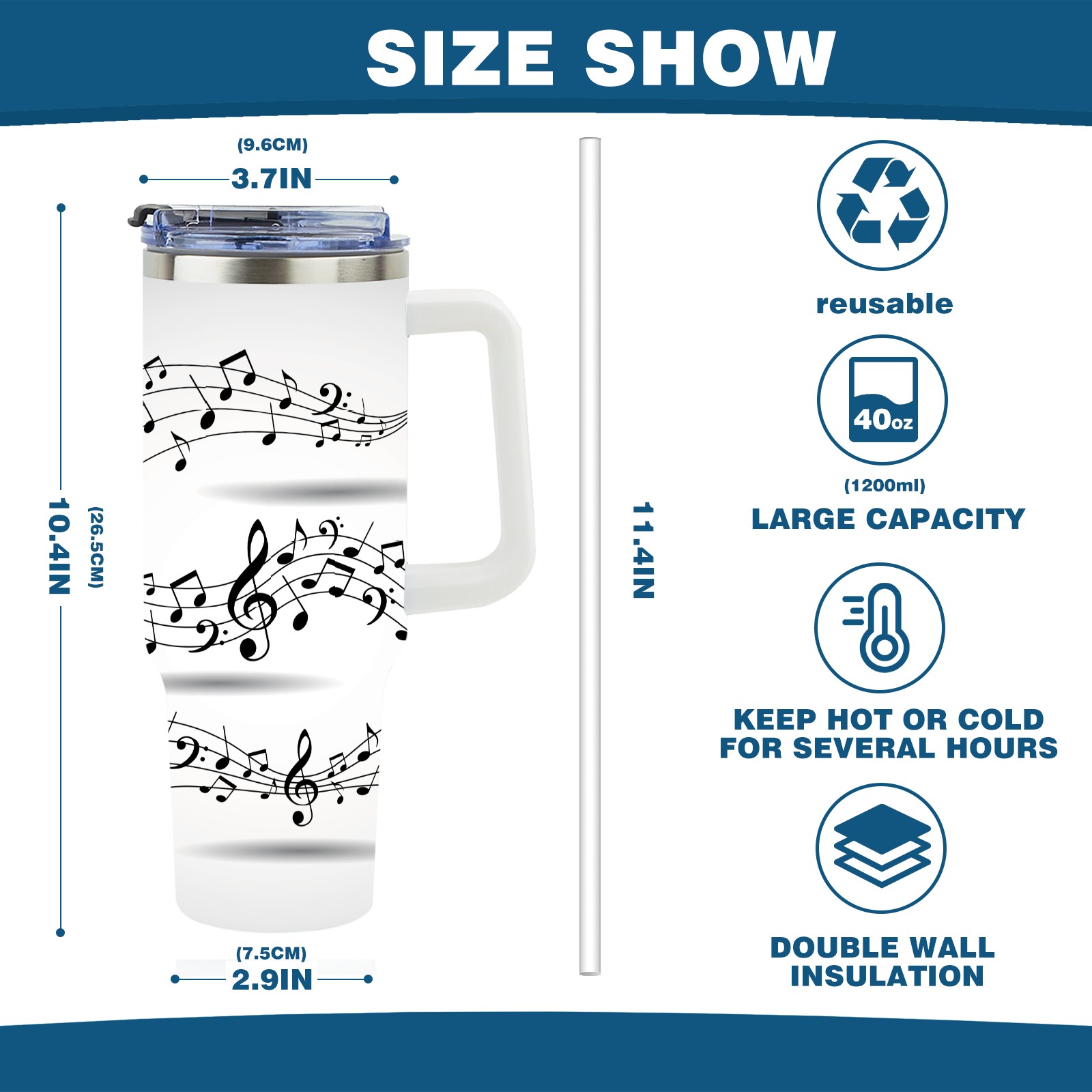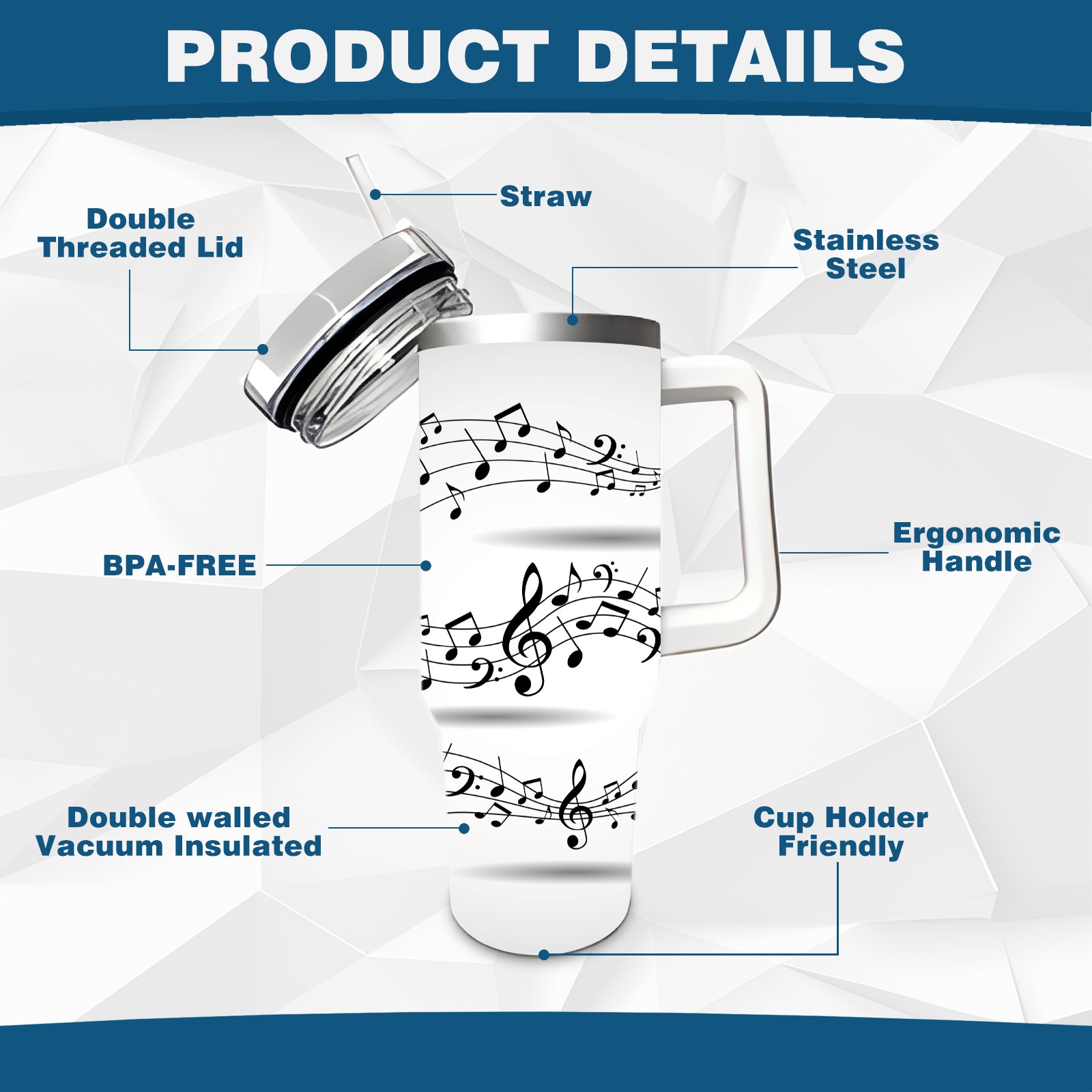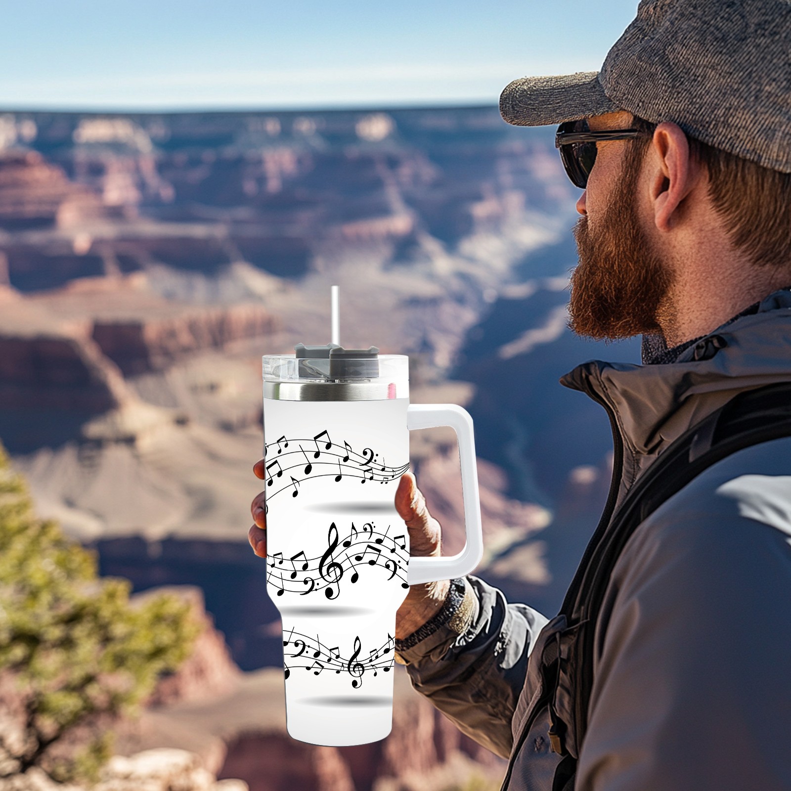 40 унций полностью напечатанный автомобильный стакан Pentagrams Musical Notes Staff