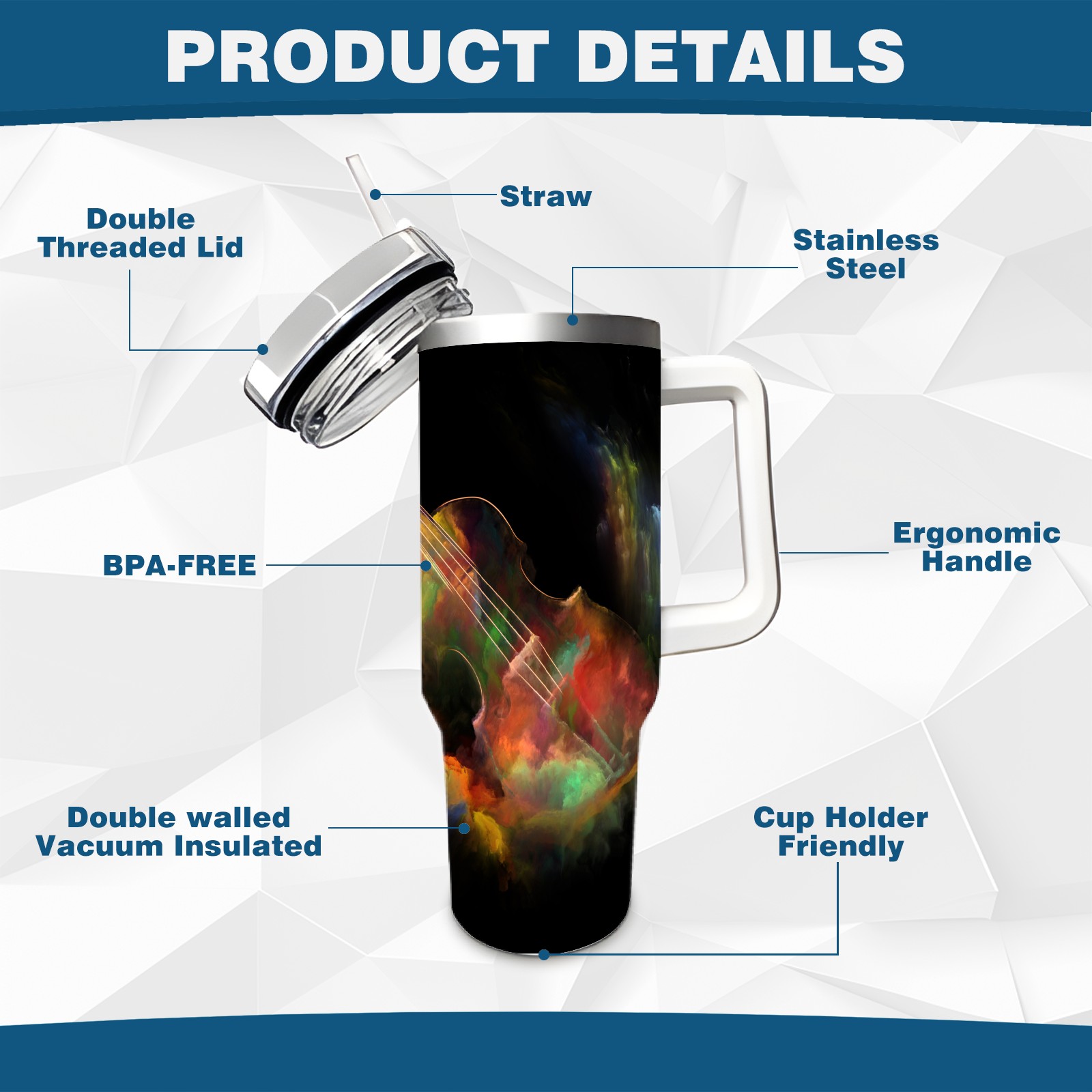 40 унций полностью напечатанный автомобильный стакан Colorful Guitar Black
