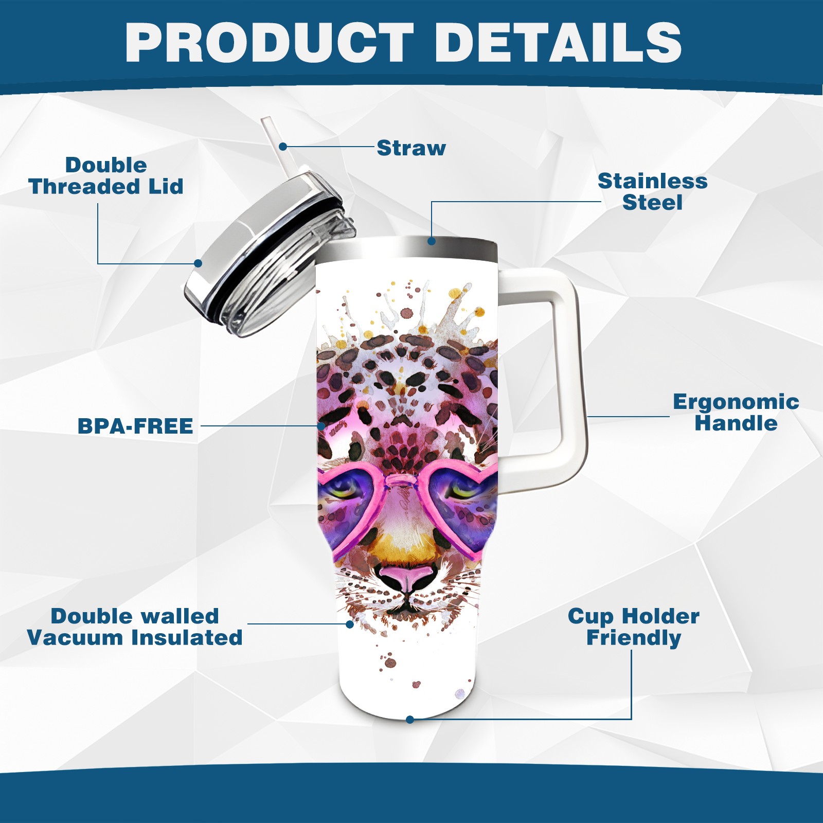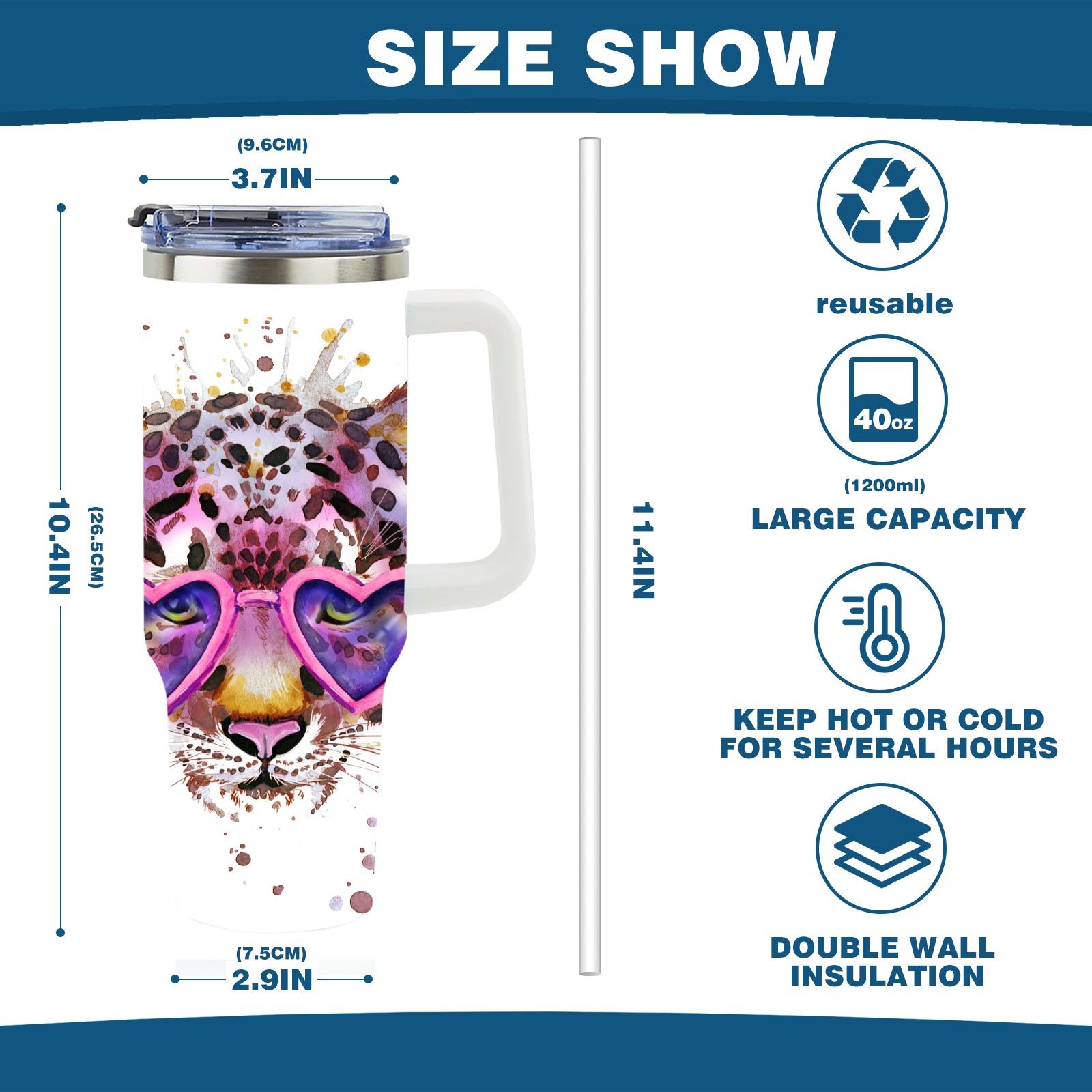 • С большой емкостью 40 унций, он обеспечивает вас гидратацией в течение всего дня, идеально подходит для воды, кофе, сока или других напитков. Эргономичный дизайн идеально вписывается в автомобильные держатели для бутылок, а прочный, герметичный колпачок предотвращает утечки во время передвижения. Путешествие. Антискользящее основание обеспечивает устойчивость, а гладкие поверхности делают уборку легкой — просто мойте вручную или кладите в посудомоечную машину (рекомендуется верхний поддон).