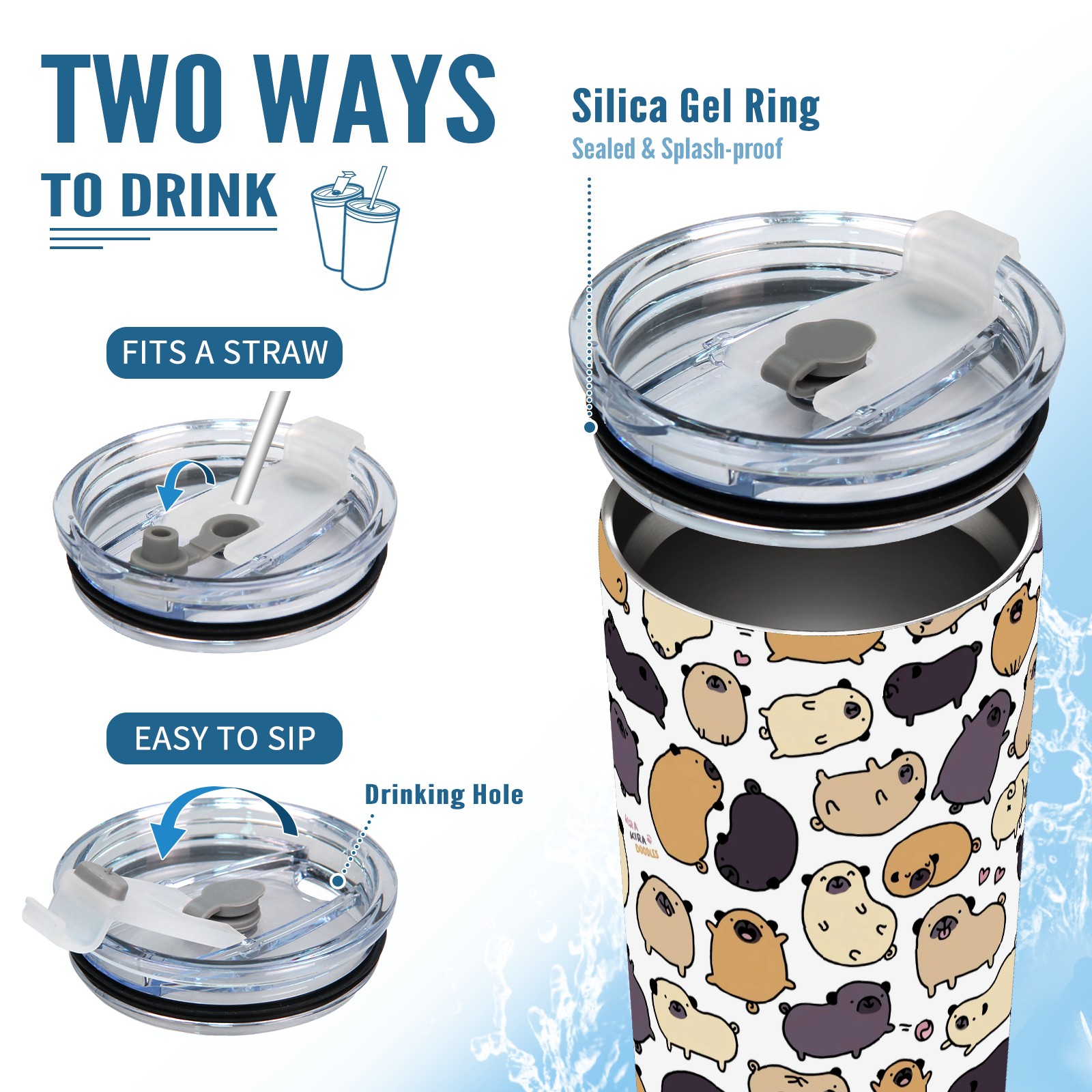 <p>20 Ounce Stainless Steel Vacuum Insulated Tumbler Travel Cup</p> <p>Our stainless steel tumbler uses vacuum insulation technology, effectively keeping your beverages hot or cold for hours</p> <p>The travel tumbler is made from food-grade 304 stainless steel, with a smooth interior that is easy to clean</p> <p>The insulated tumbler features a leak-proof design, ensuring no spills even on bumpy roads, and is suitable for various car cup holders</p> <p>The travel mugs tumblers suitable for all occasions, at home, parties, school, office, travel, beach, or outdoor activities</p>