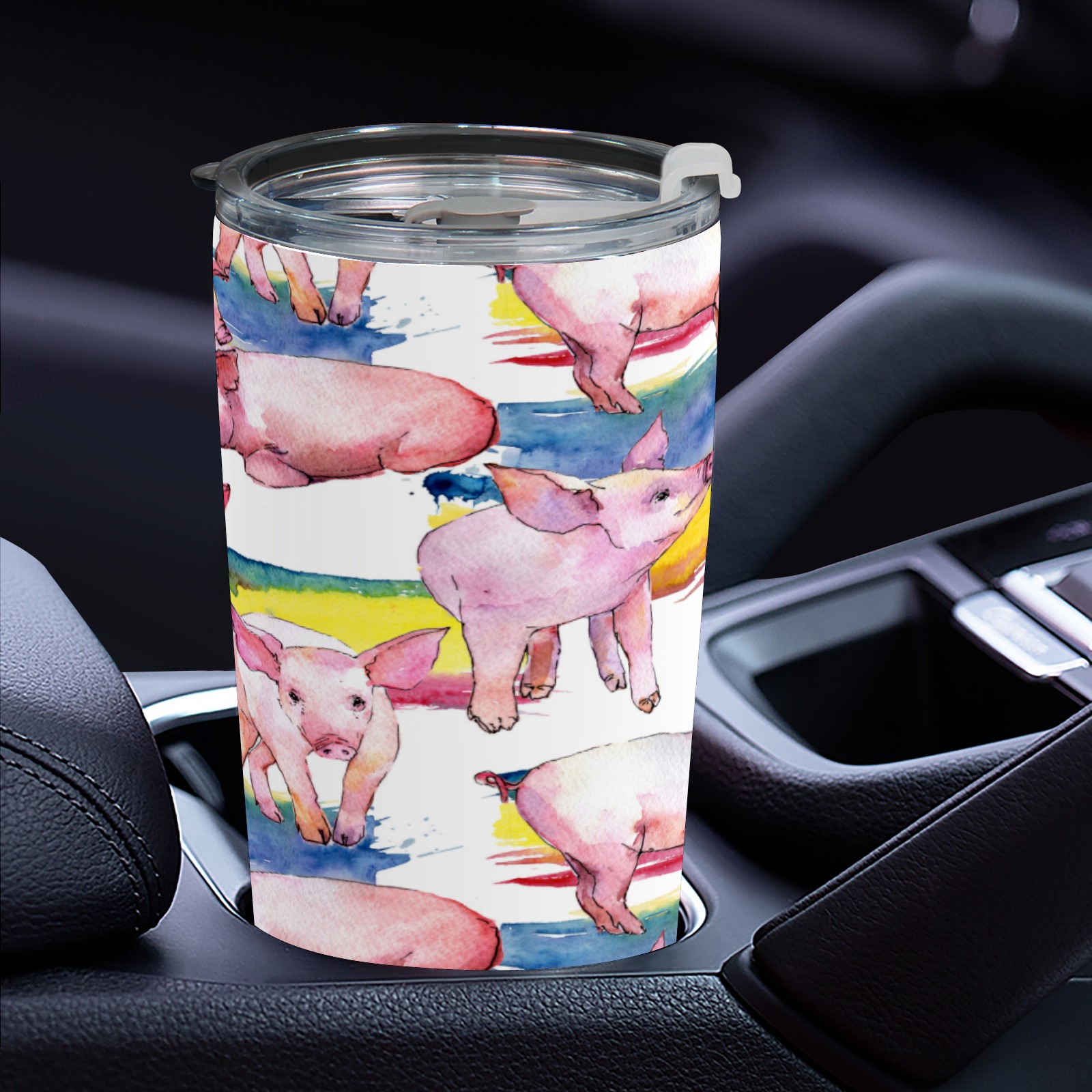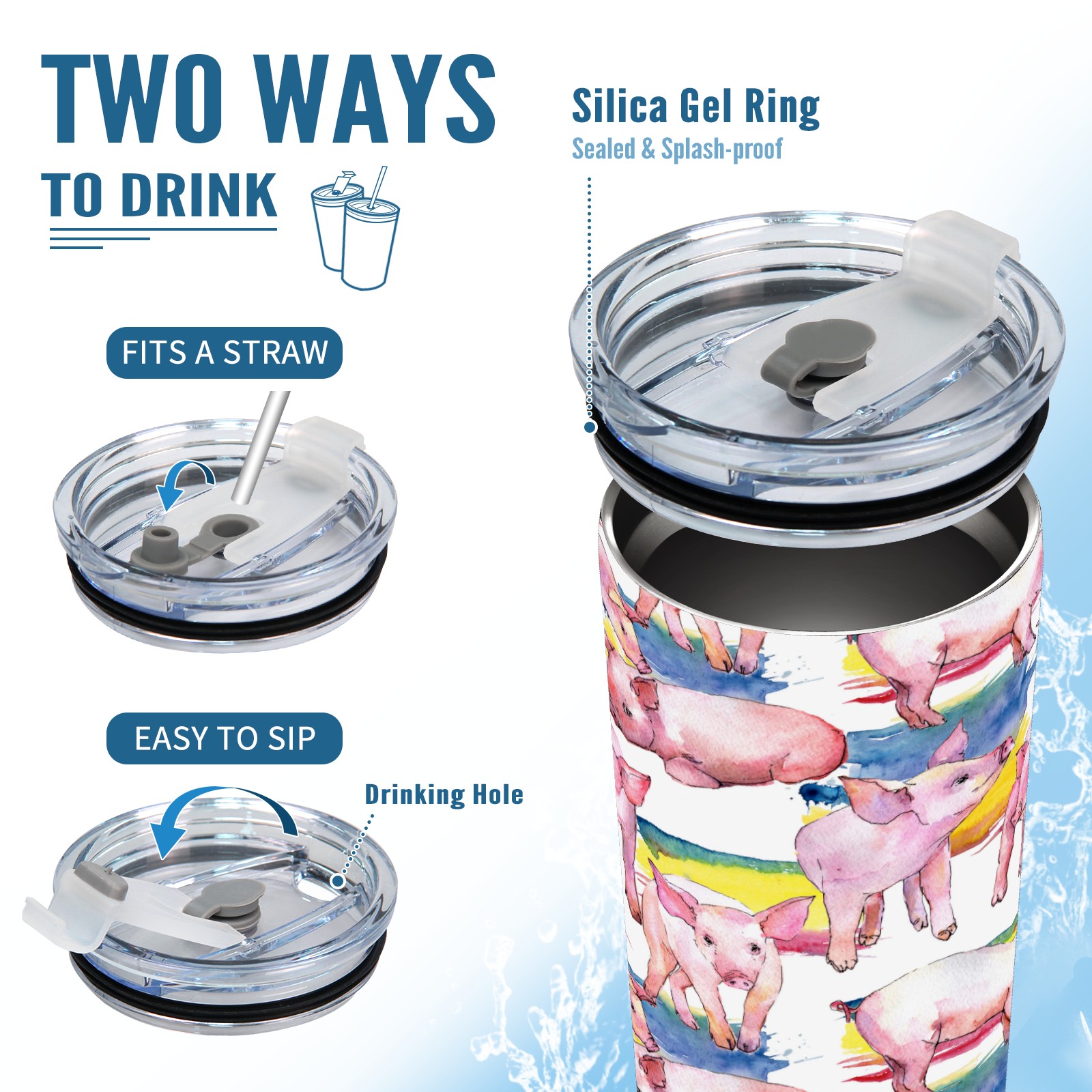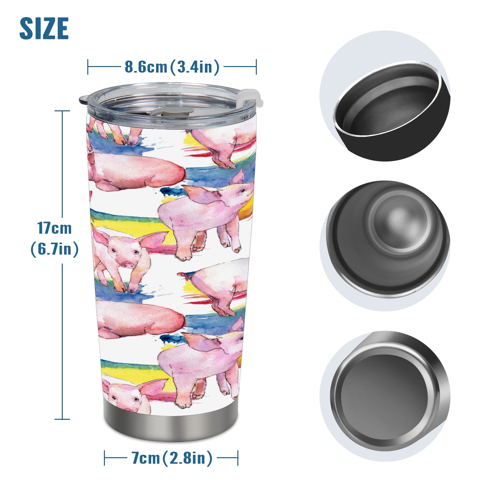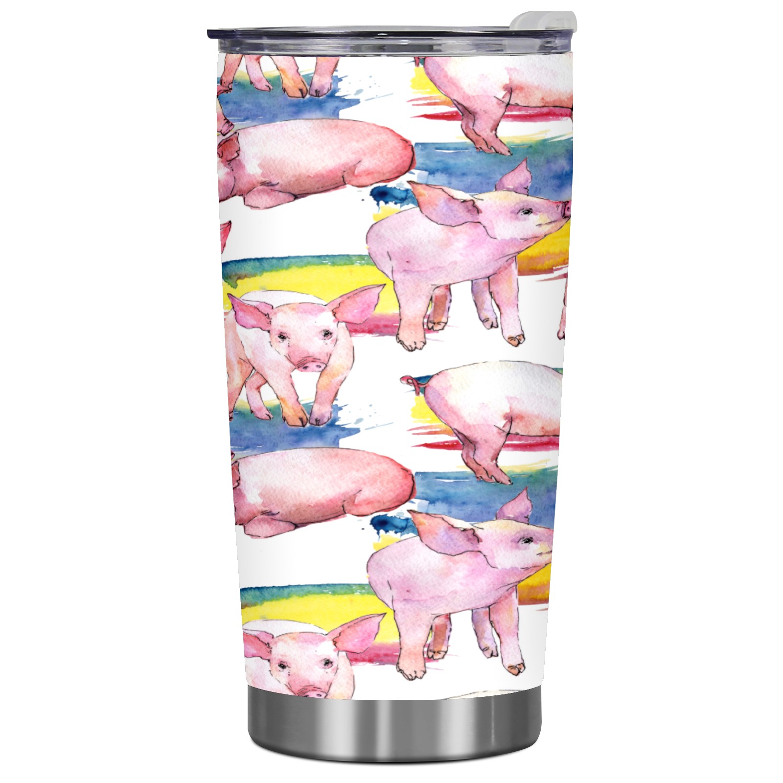 20 oz Tumbler Watercolor Farm Pink Little Pigs Pattern Stainless Steel Insulated Tumbler with Lid Double Wall Vacuum Insulated Travel Mug Cup for Coffee Ice Hot Drinks