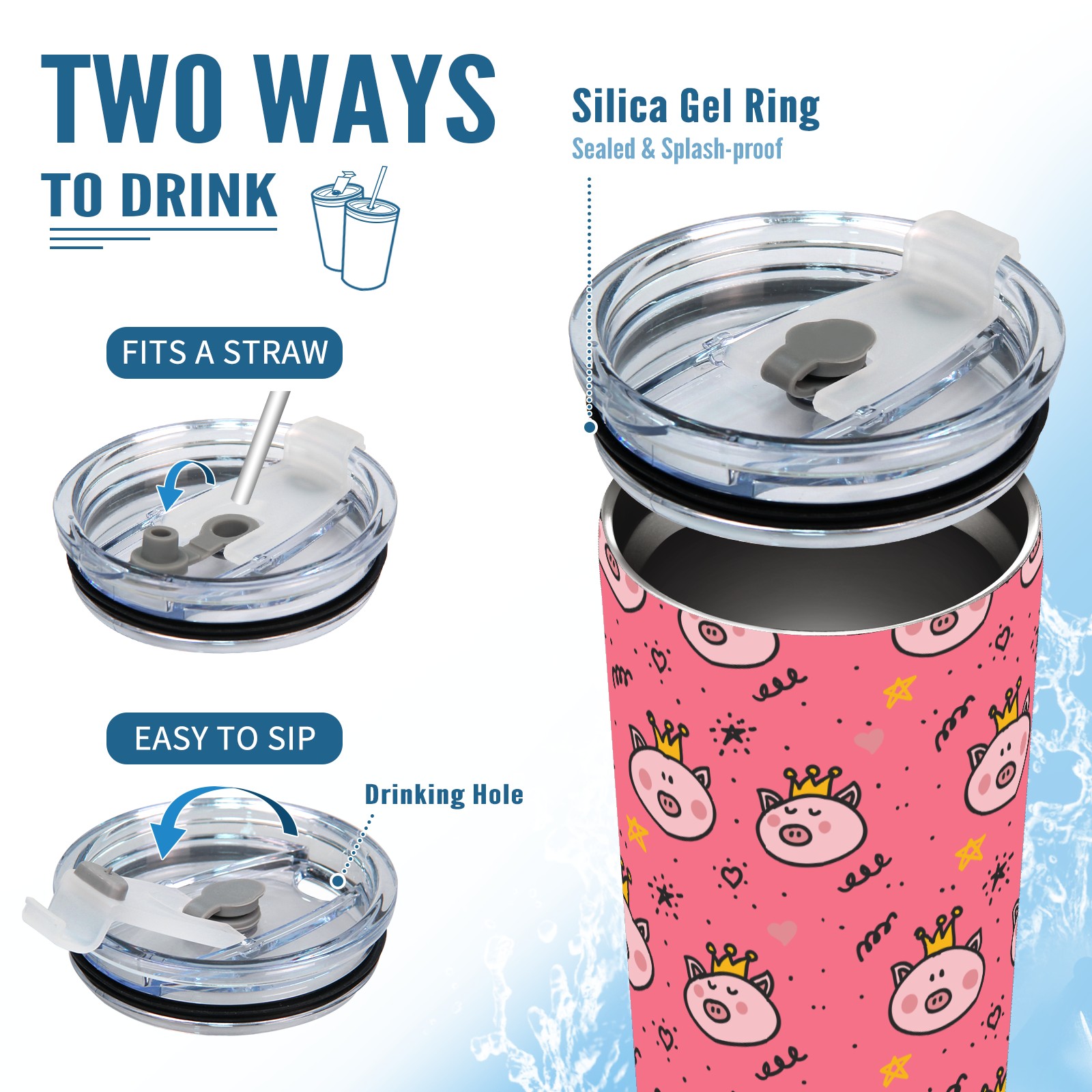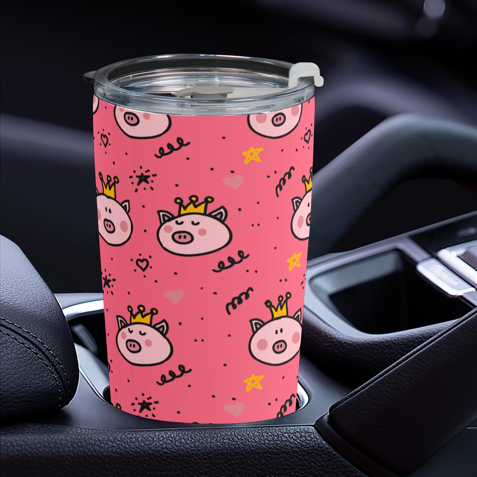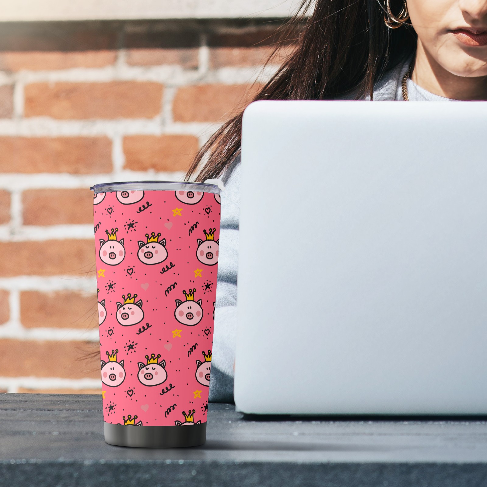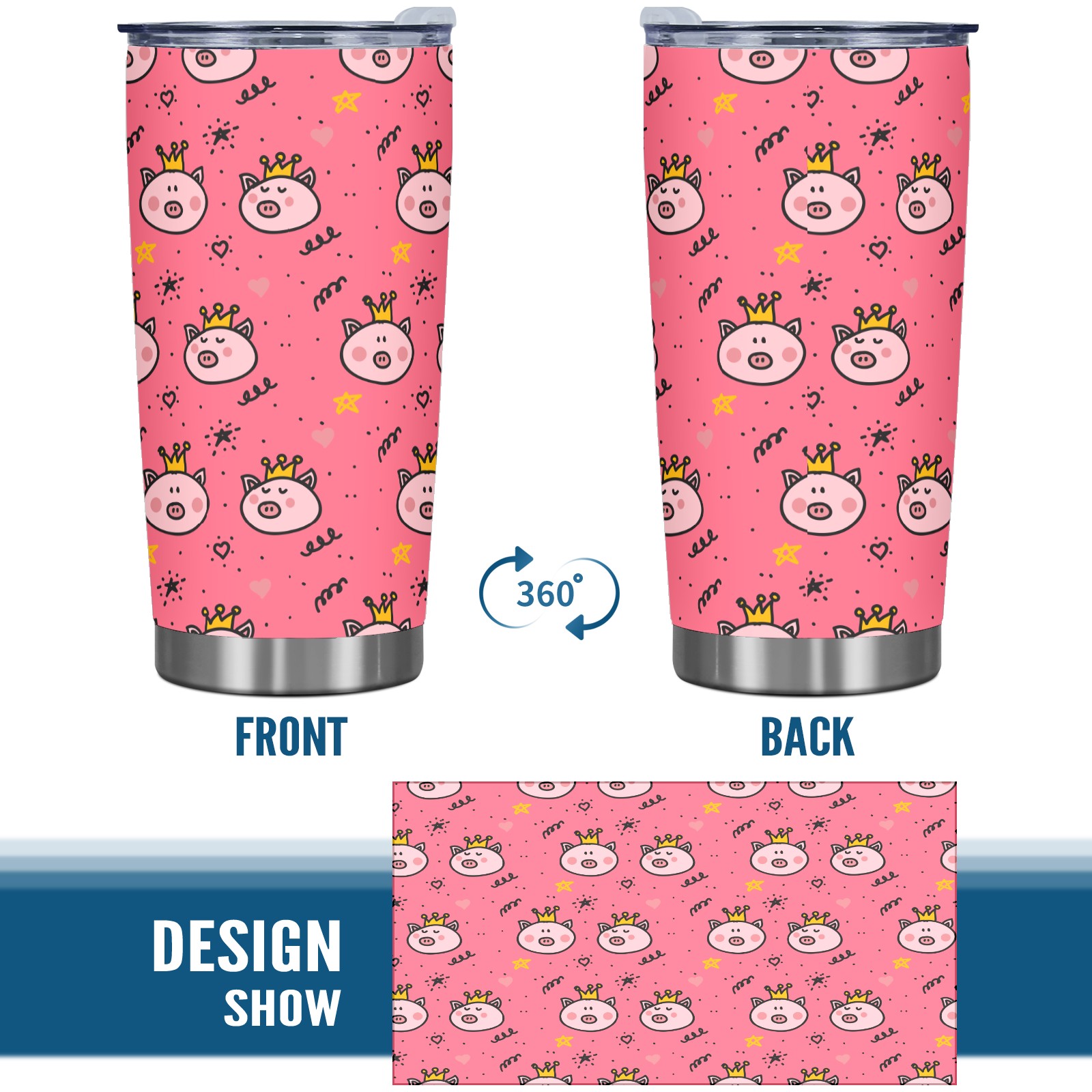 20 oz Tumbler Pink Crown Pig Stainless Steel Insulated Tumbler with Lid Double Wall Vacuum Insulated Travel Mug Cup for Coffee Ice Hot Drinks