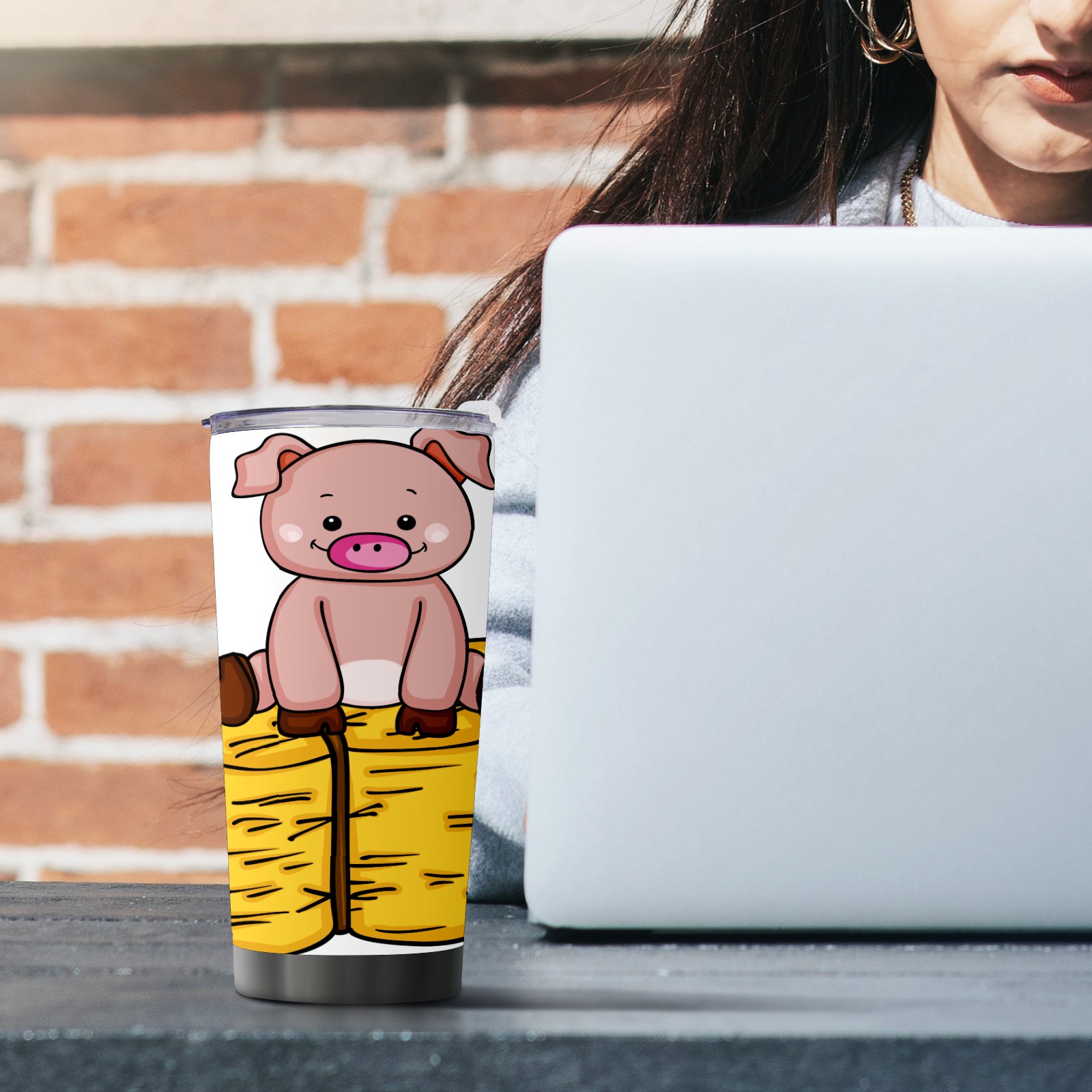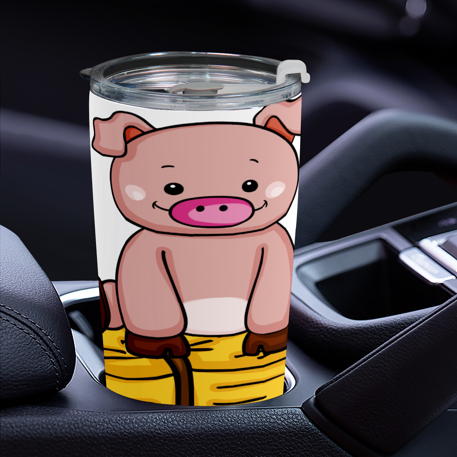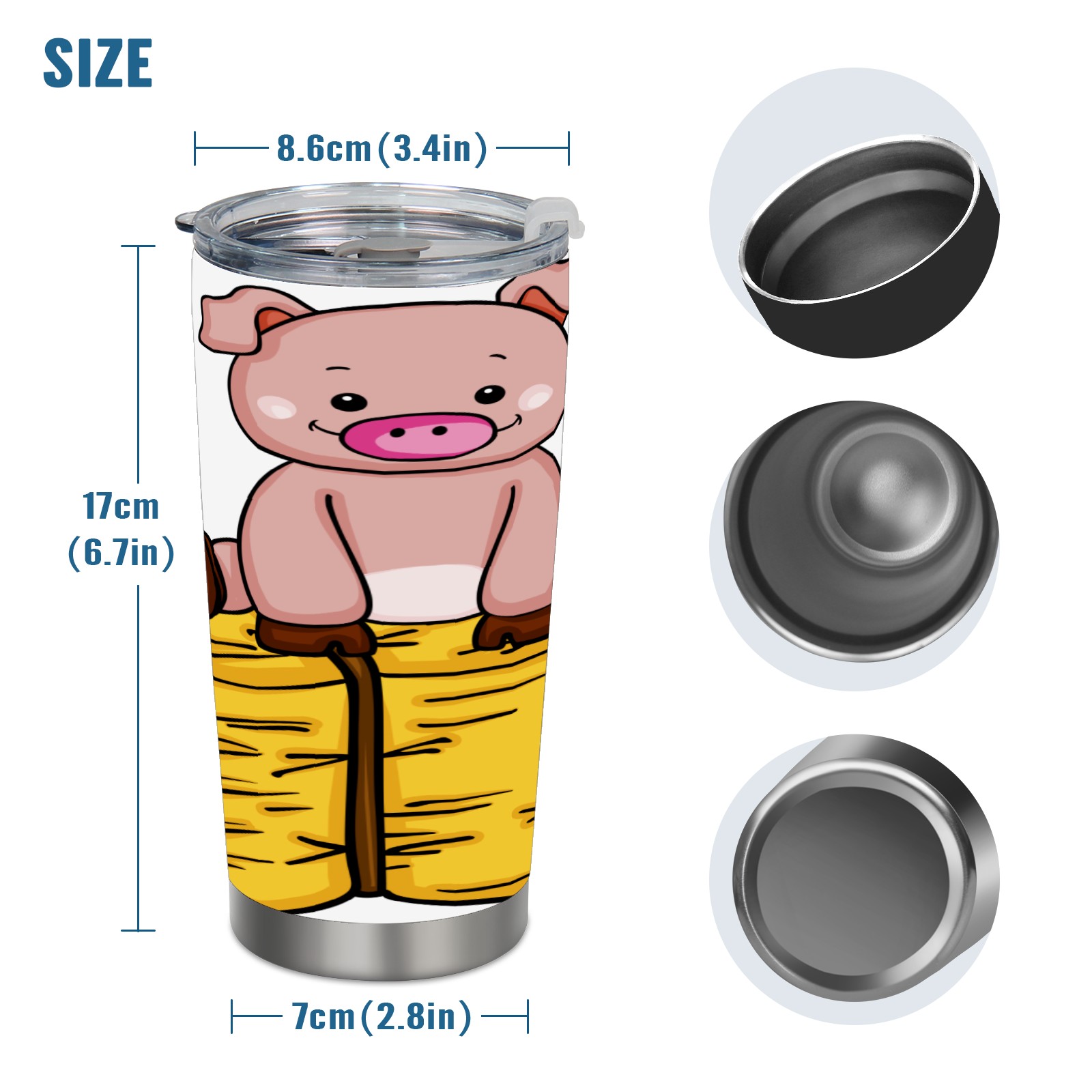 20 oz Tumbler Pig Sit On Straw Stainless Steel Insulated Tumbler with Lid Double Wall Vacuum Insulated Travel Mug Cup for Coffee Ice Hot Drinks