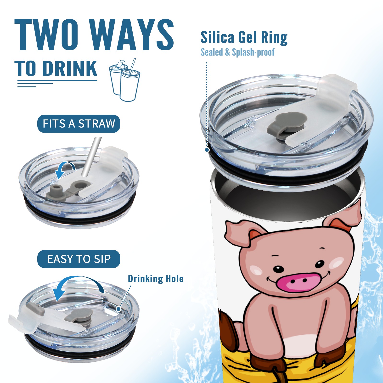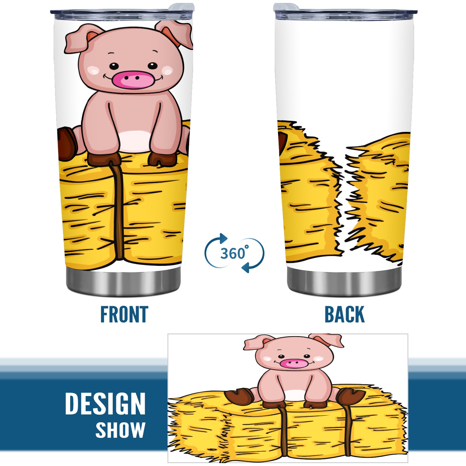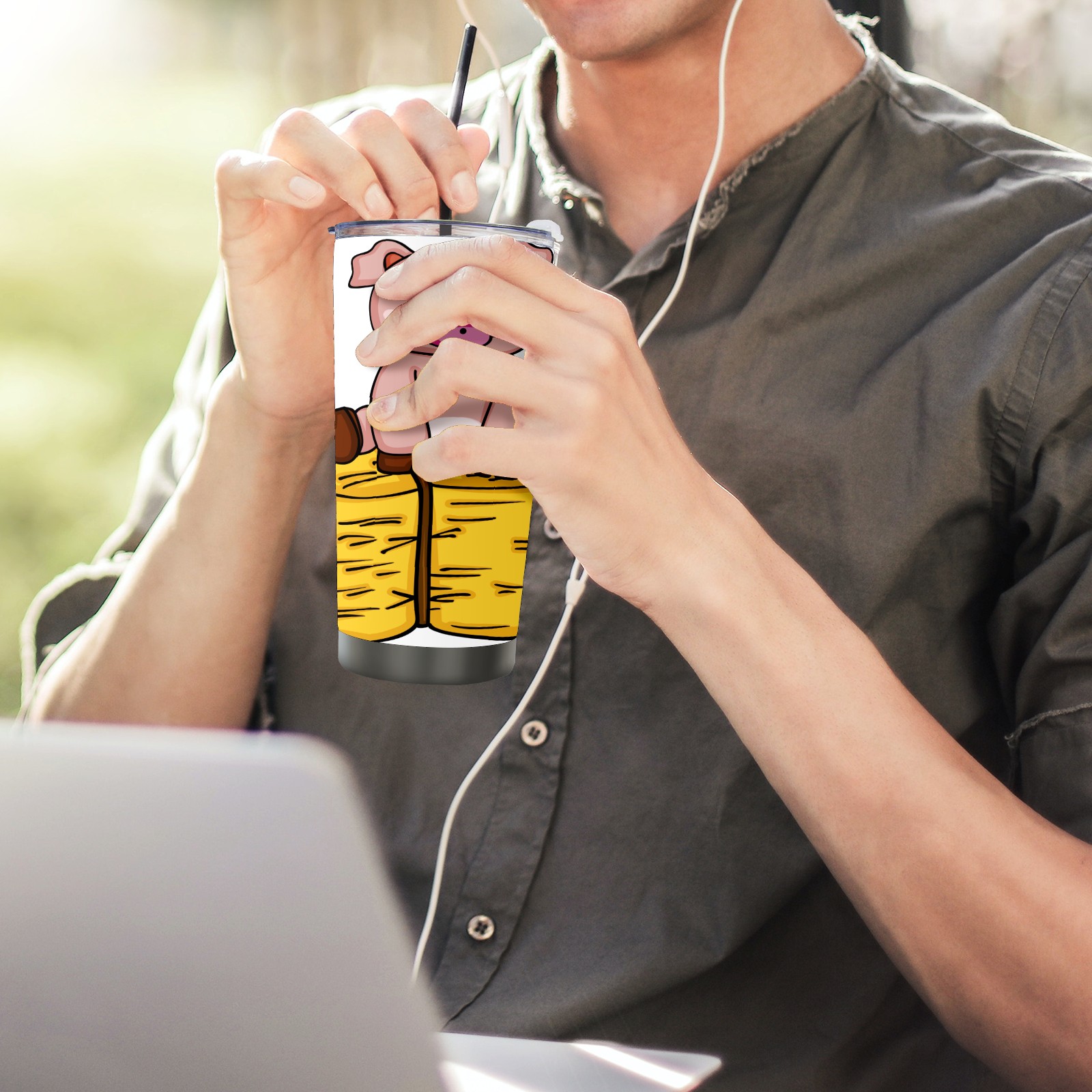 20 oz Tumbler Pig Sit On Straw Stainless Steel Insulated Tumbler with Lid Double Wall Vacuum Insulated Travel Mug Cup for Coffee Ice Hot Drinks