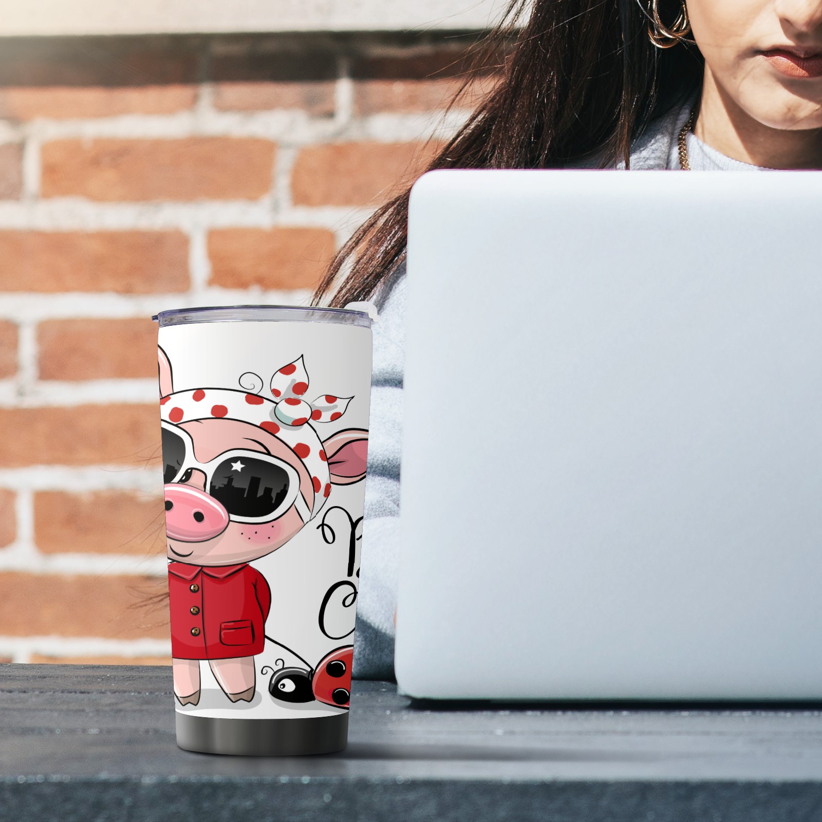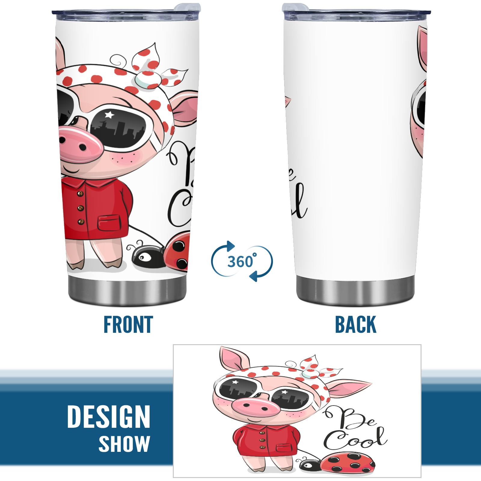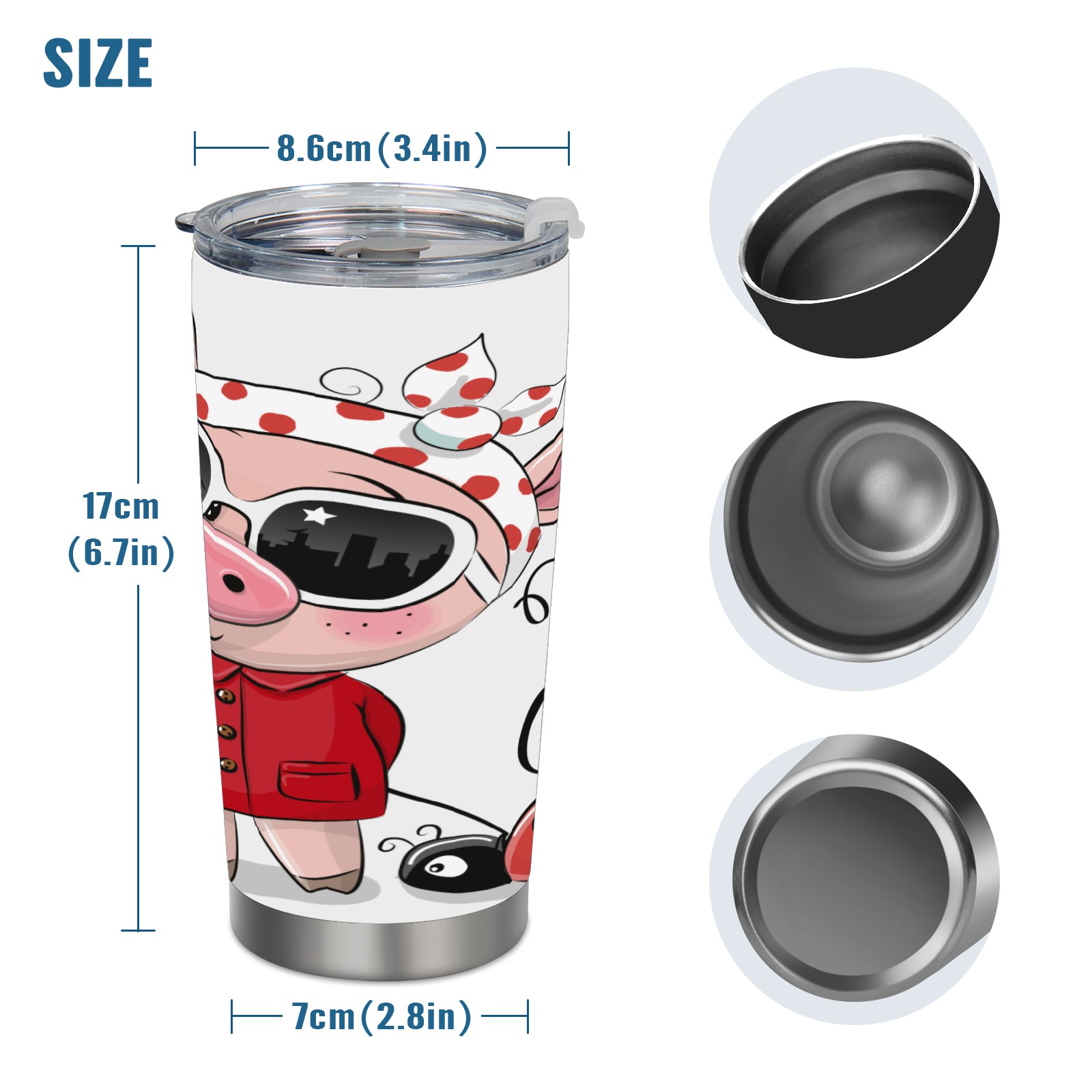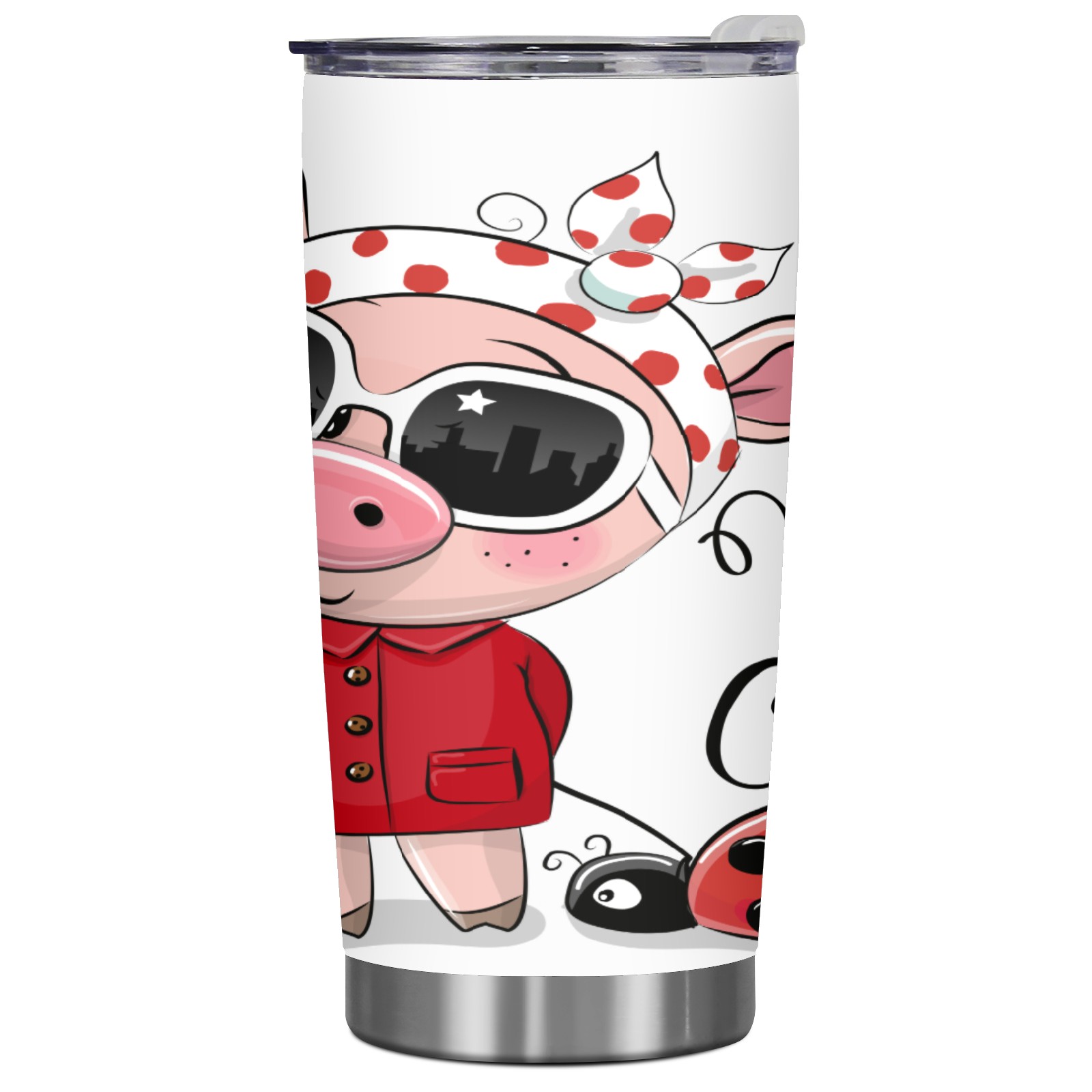 20 oz Tumbler Fashion Pig And Beetle Stainless Steel Insulated Tumbler with Lid Double Wall Vacuum Insulated Travel Mug Cup for Coffee Ice Hot Drinks