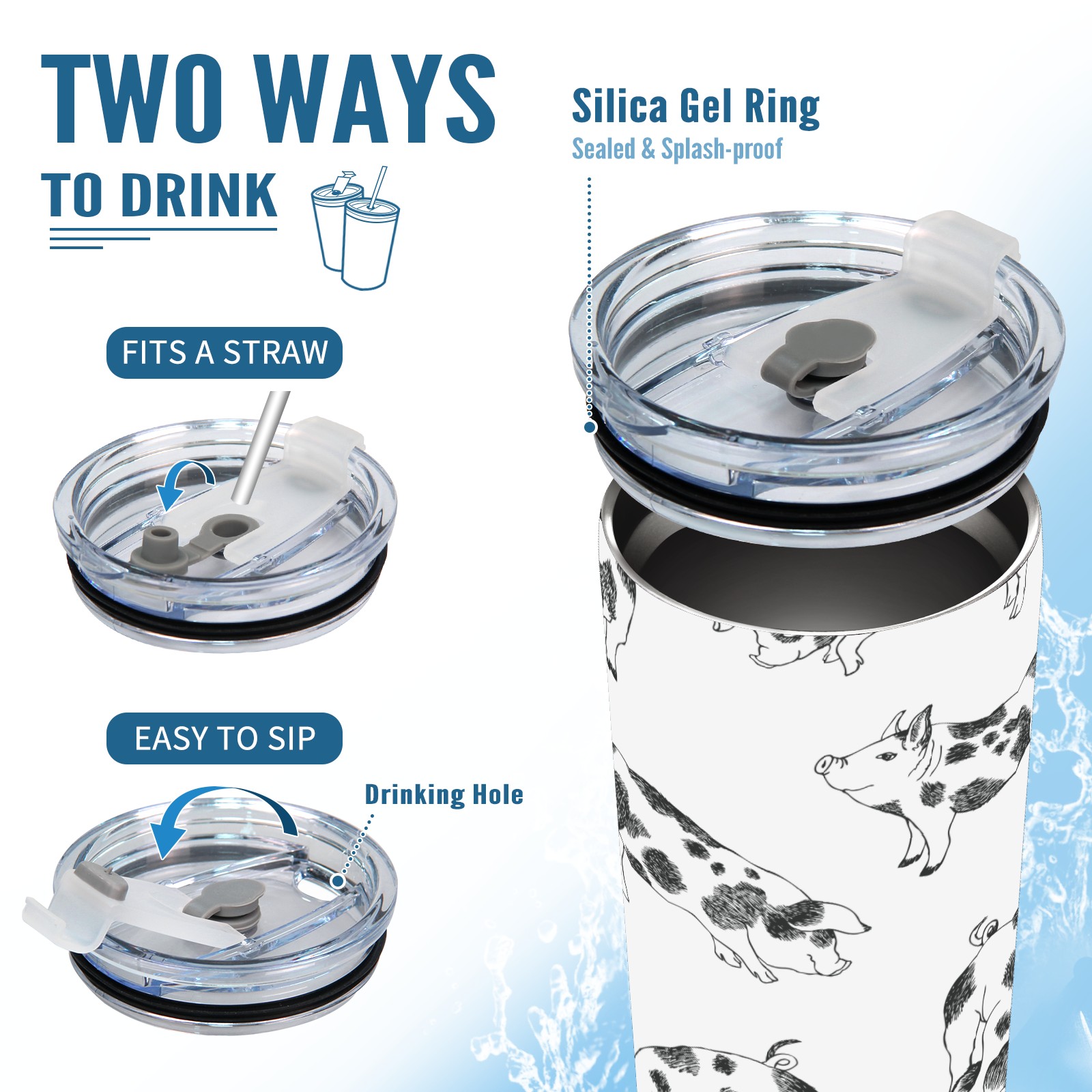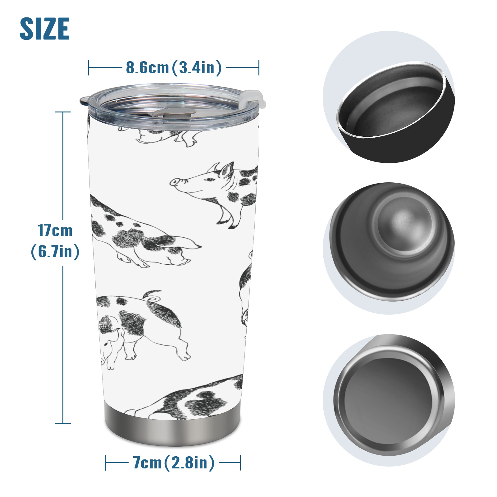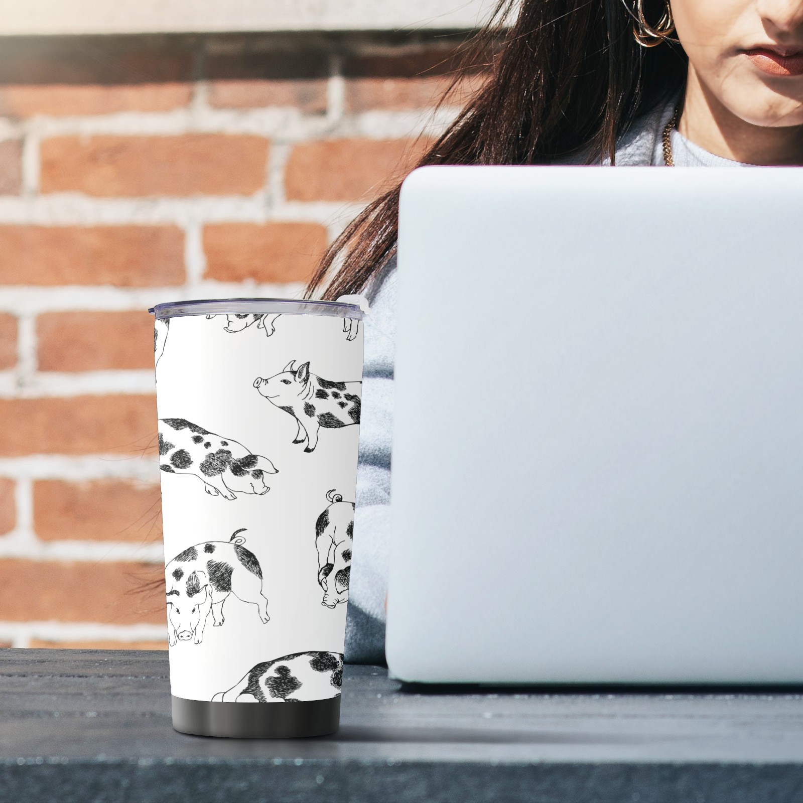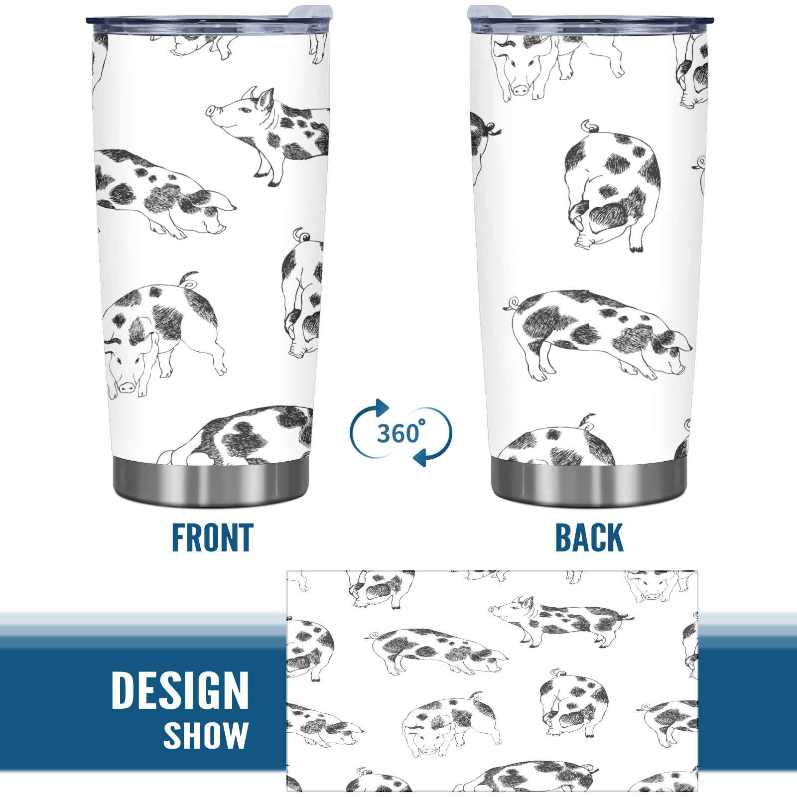 20 oz Tumbler Cute Little Pigs Background Sketch Stainless Steel Insulated Tumbler with Lid Double Wall Vacuum Insulated Travel Mug Cup for Coffee Ice Hot Drinks