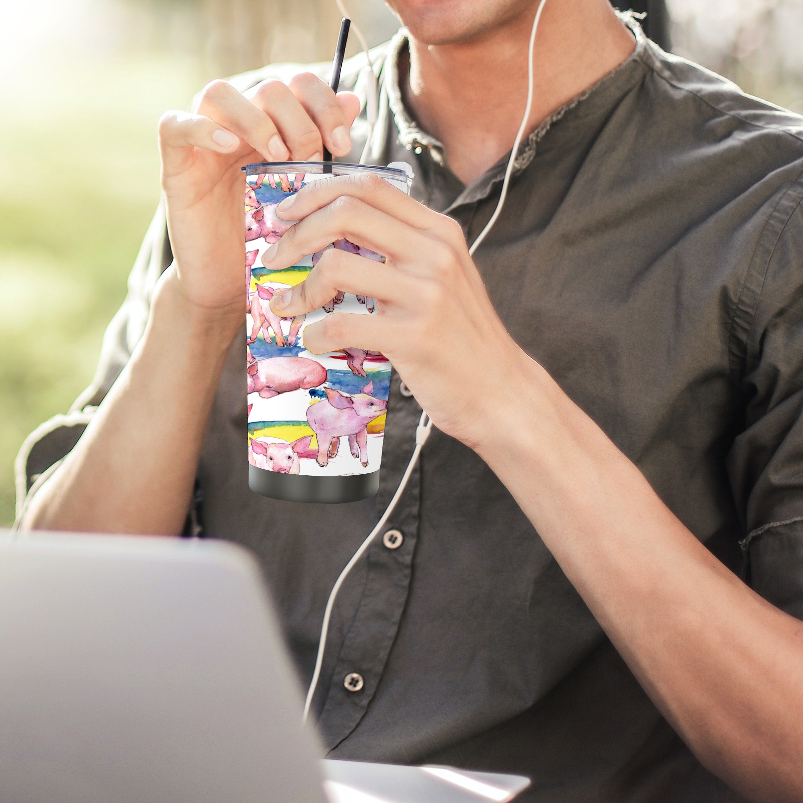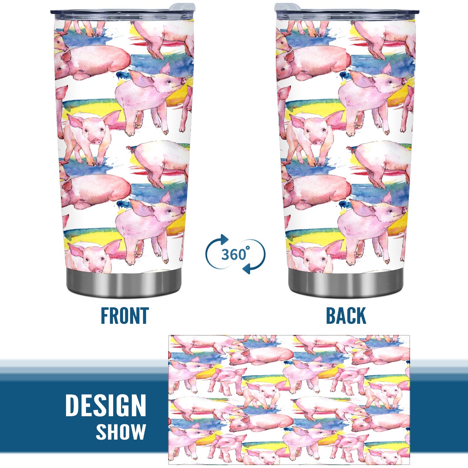 20 oz Tumbler Pink Pig Cartoon Cute Stainless Steel Insulated Tumbler with Lid Double Wall Vacuum Insulated Travel Mug Cup for Coffee Ice Hot Drinks