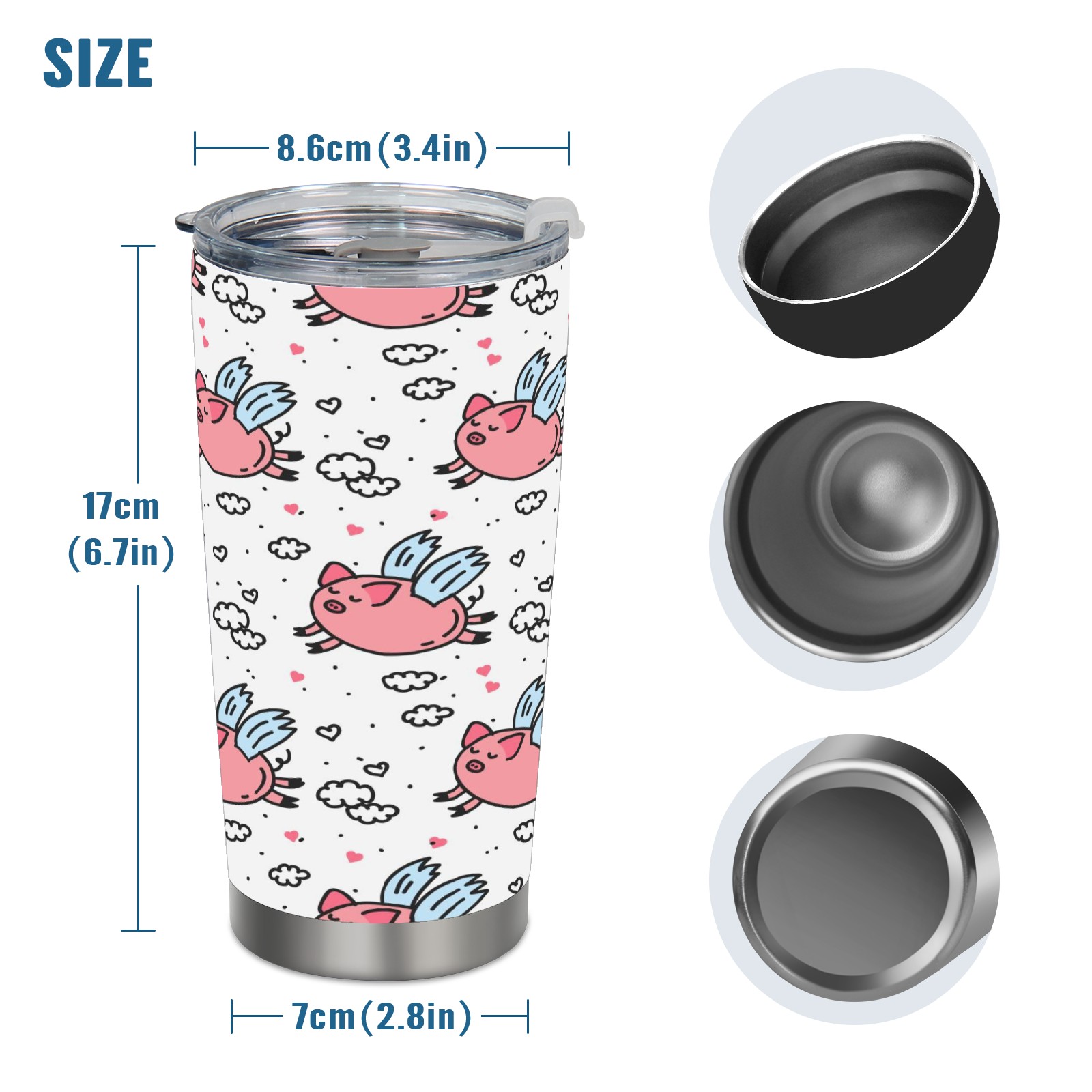 20 oz Tumbler Flying Pig Love Stainless Steel Insulated Tumbler with Lid Double Wall Vacuum Insulated Travel Mug Cup for Coffee Ice Hot Drinks
