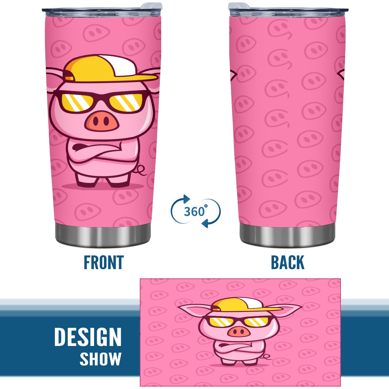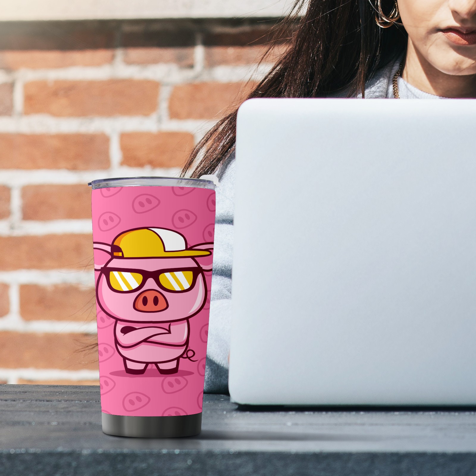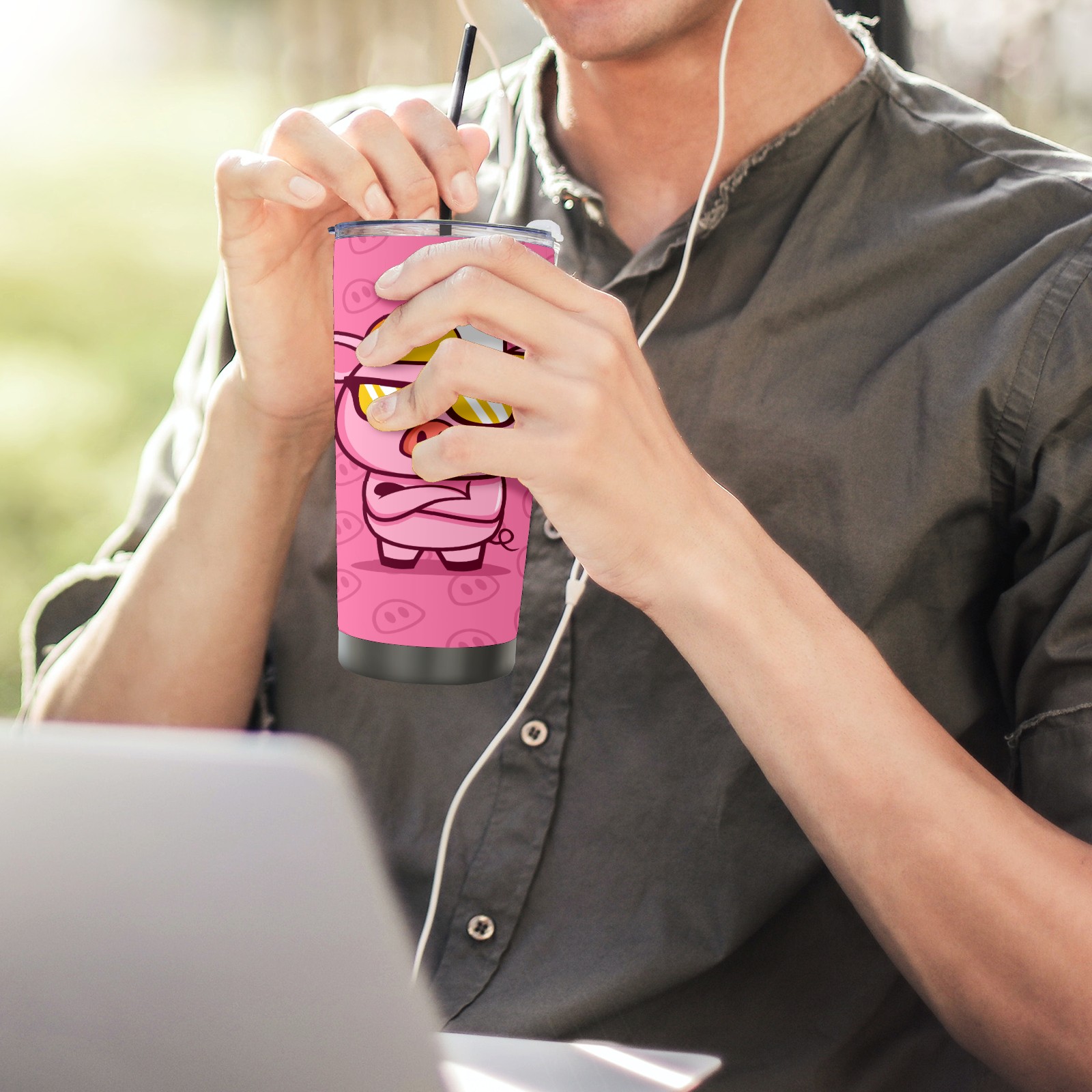 20 oz Tumbler Cool Boss Pig Wears Eyeglasses Stainless Steel Insulated Tumbler with Lid Double Wall Vacuum Insulated Travel Mug Cup for Coffee Ice Hot Drinks
