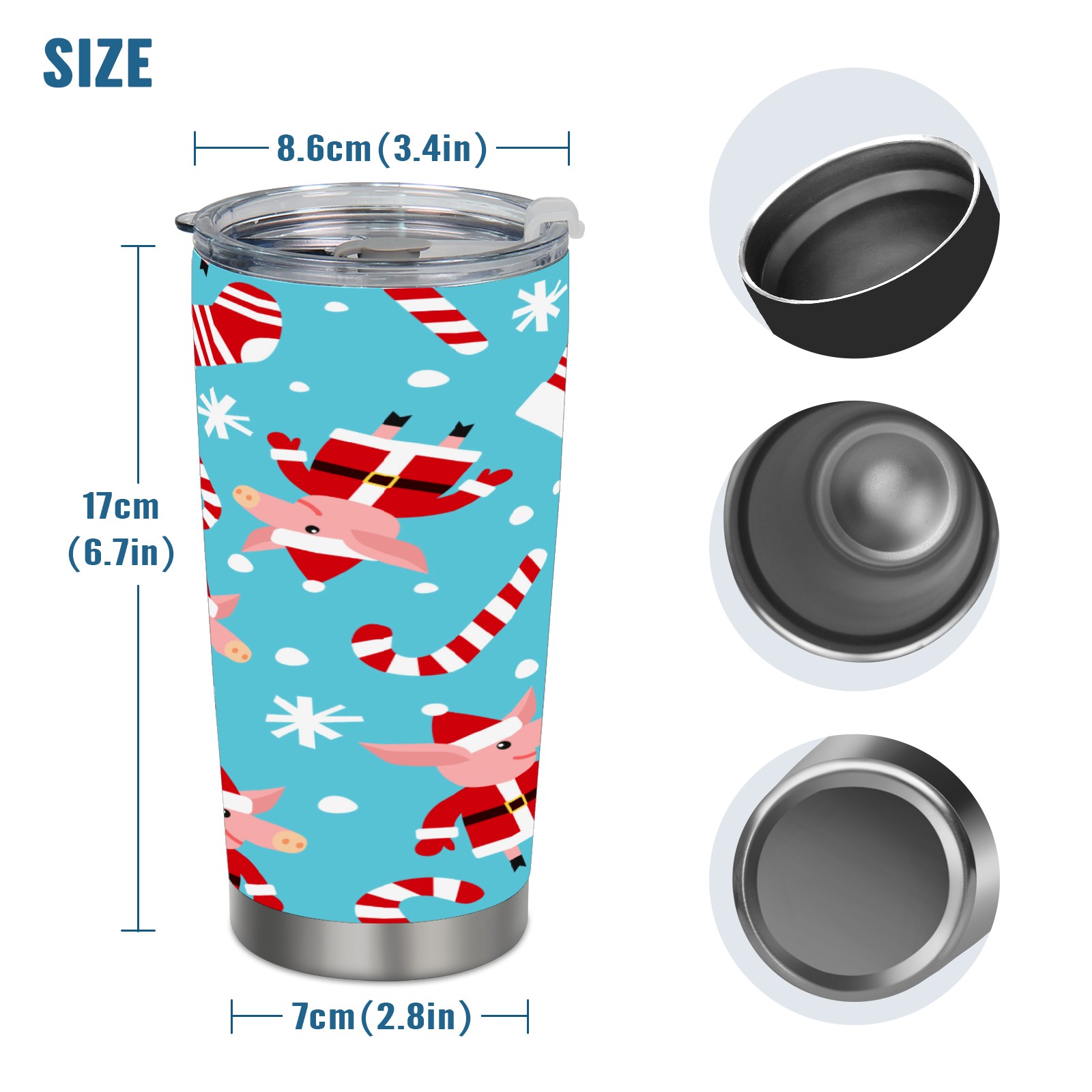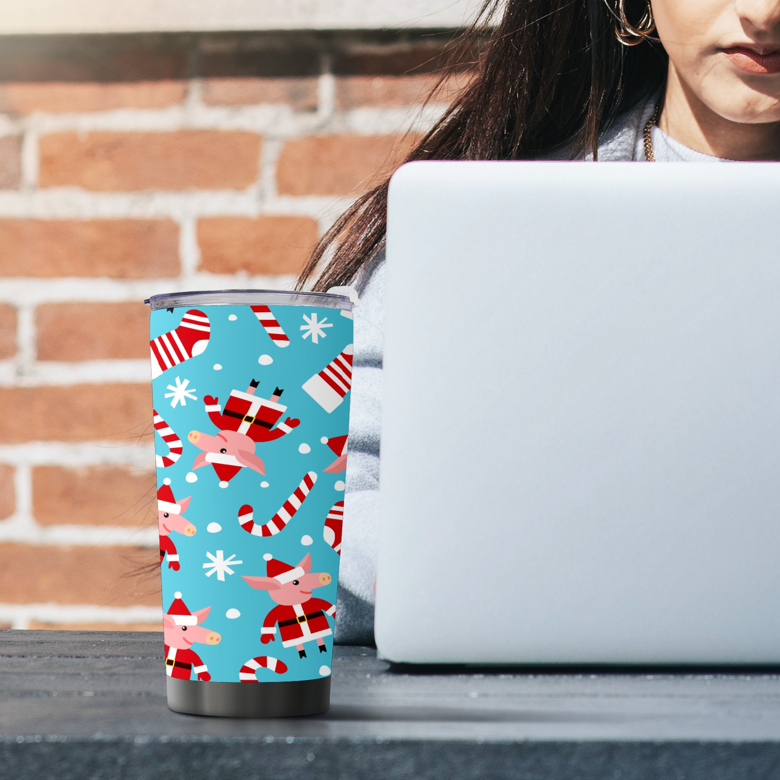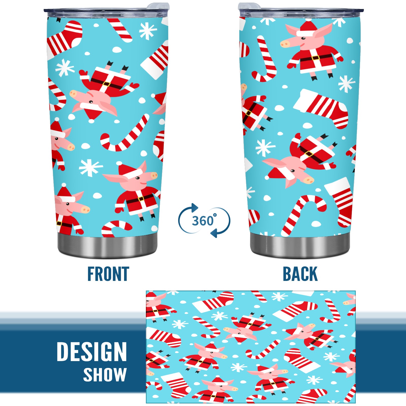 20 oz Tumbler Christmas Pig Snowflake Stainless Steel Insulated Tumbler with Lid Double Wall Vacuum Insulated Travel Mug Cup for Coffee Ice Hot Drinks