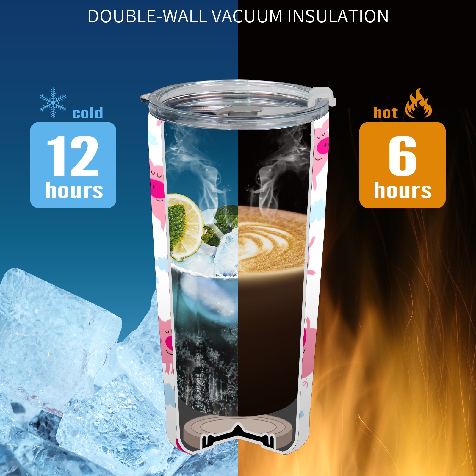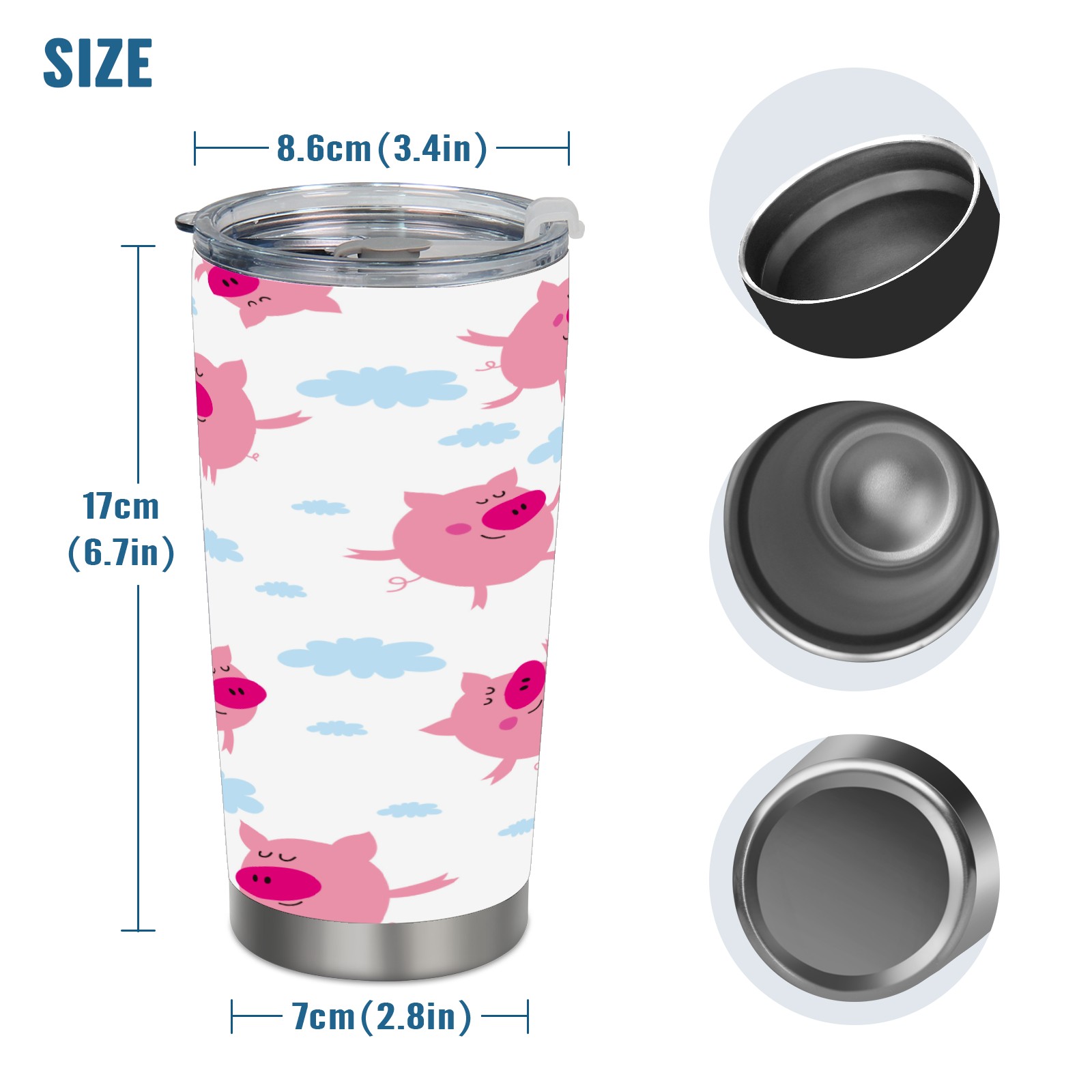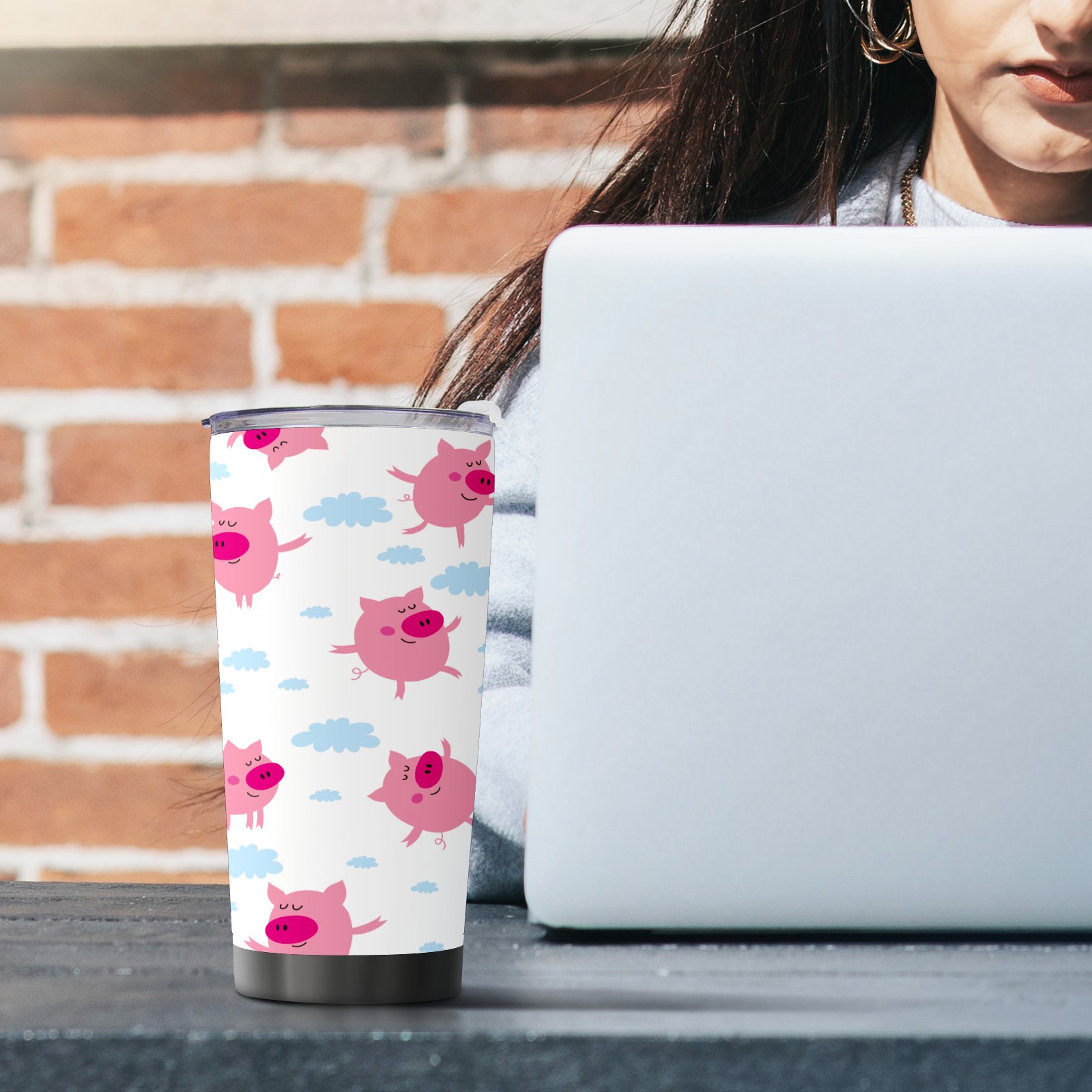 20 oz Tumbler Red Pig Cartoon Cute Stainless Steel Insulated Tumbler with Lid Double Wall Vacuum Insulated Travel Mug Cup for Coffee Ice Hot Drinks