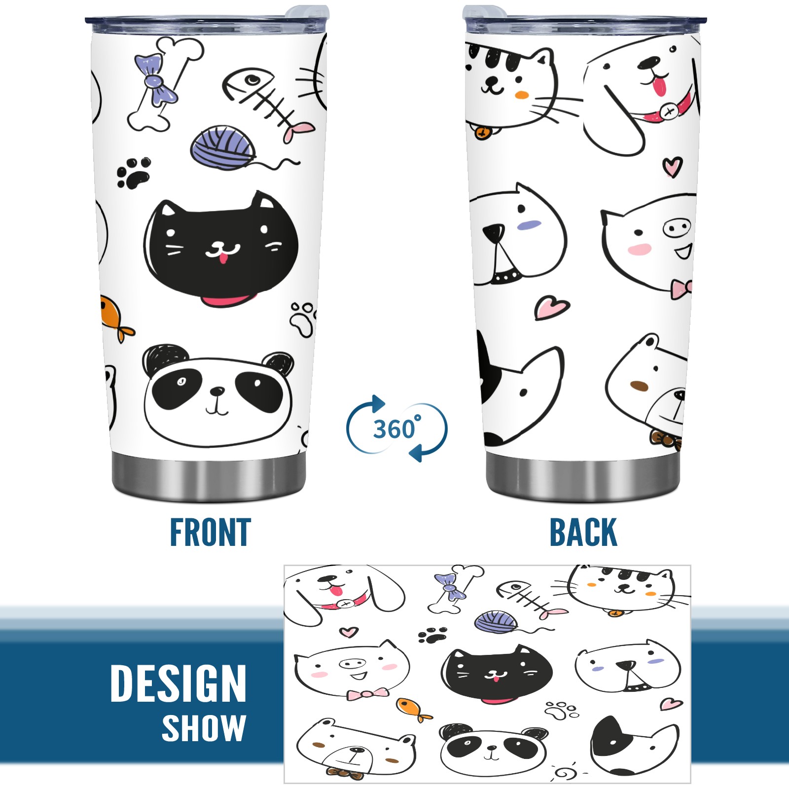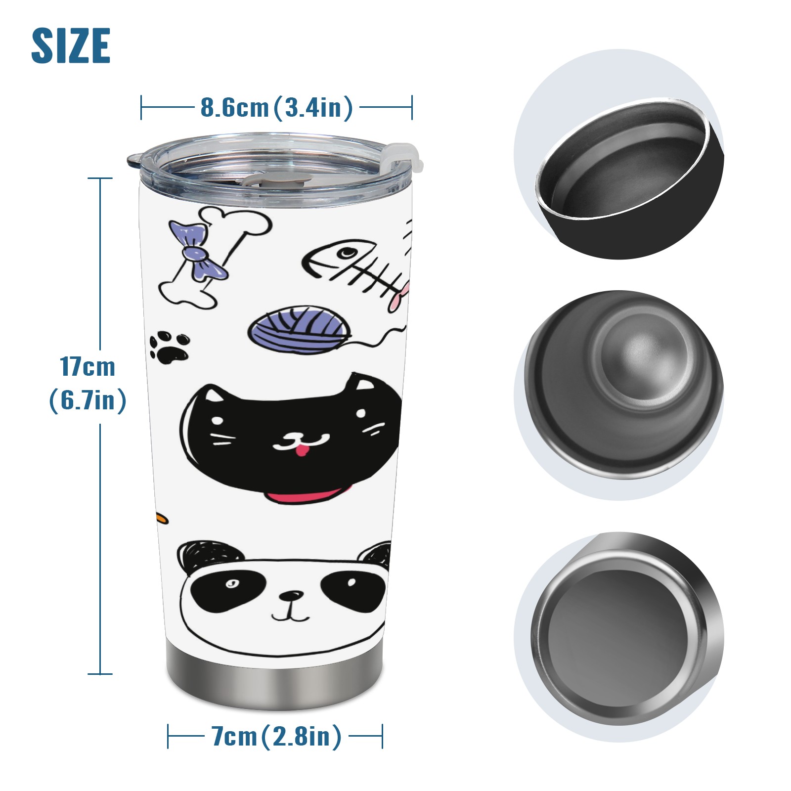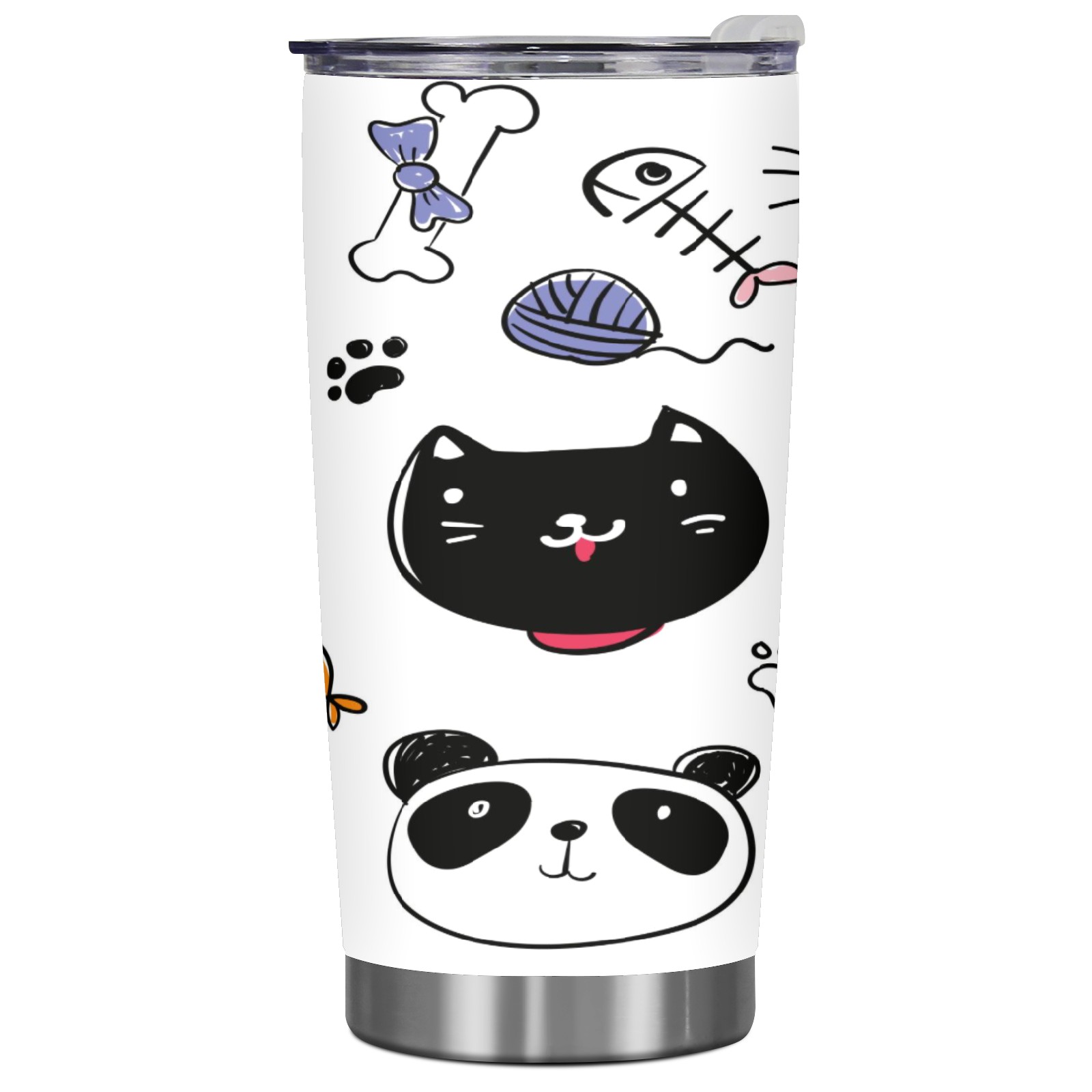 20 oz Tumbler Hand Drawn Cat Pig Stainless Steel Insulated Tumbler with Lid Double Wall Vacuum Insulated Travel Mug Cup for Coffee Ice Hot Drinks