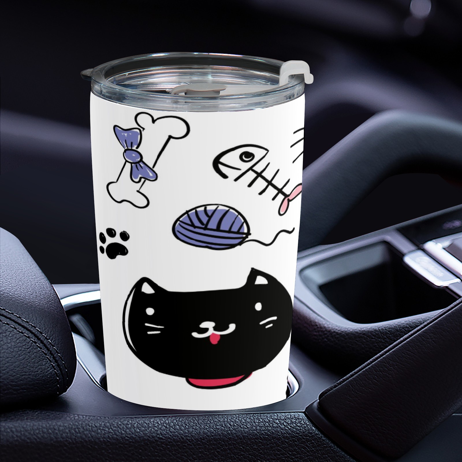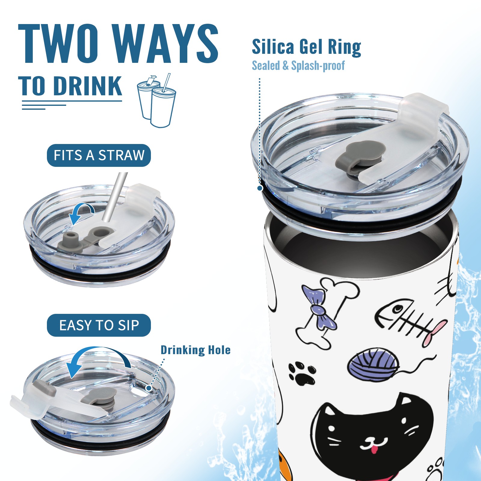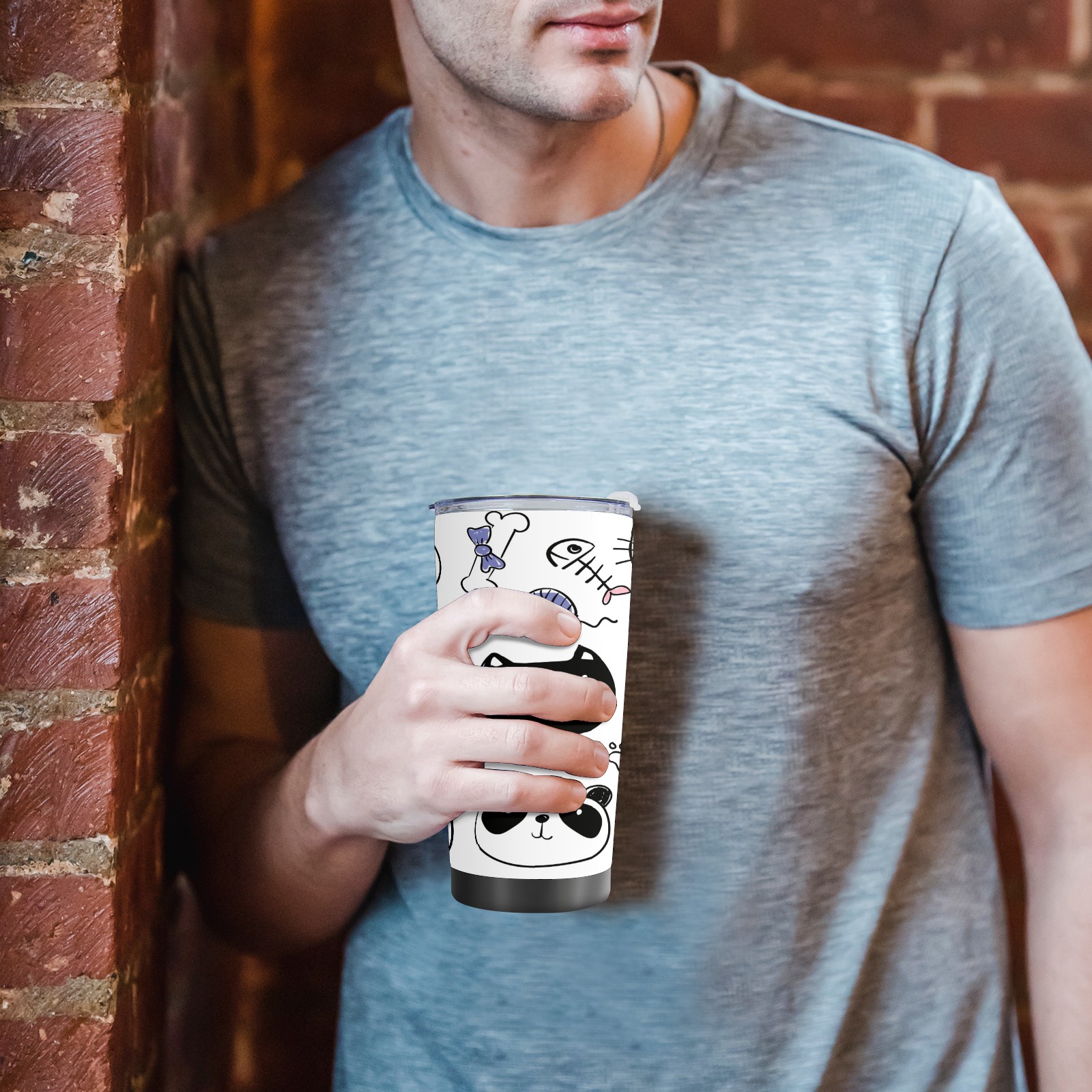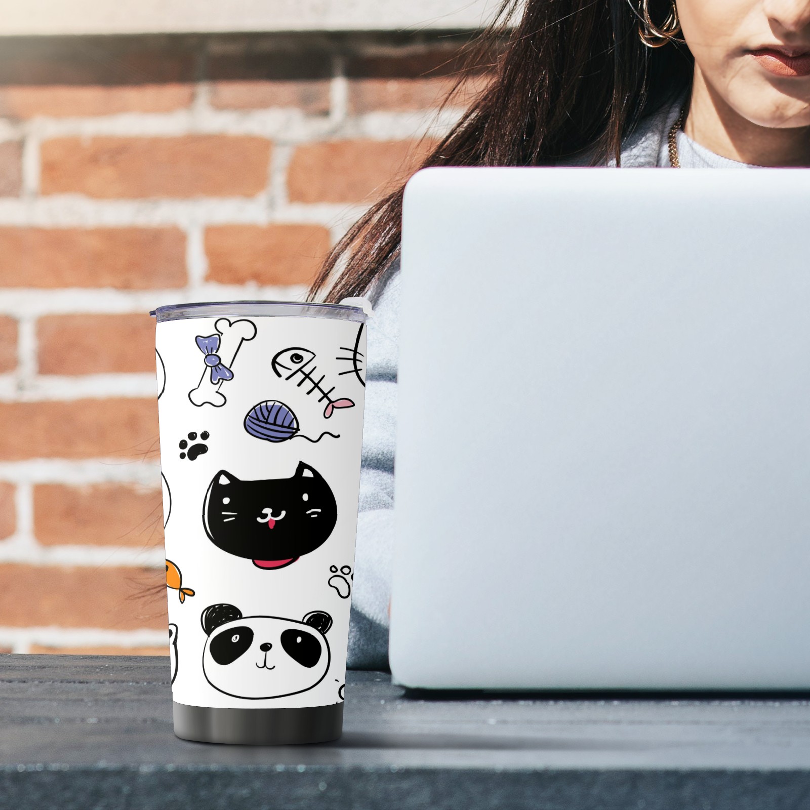 20 oz Tumbler Hand Drawn Cat Pig Stainless Steel Insulated Tumbler with Lid Double Wall Vacuum Insulated Travel Mug Cup for Coffee Ice Hot Drinks