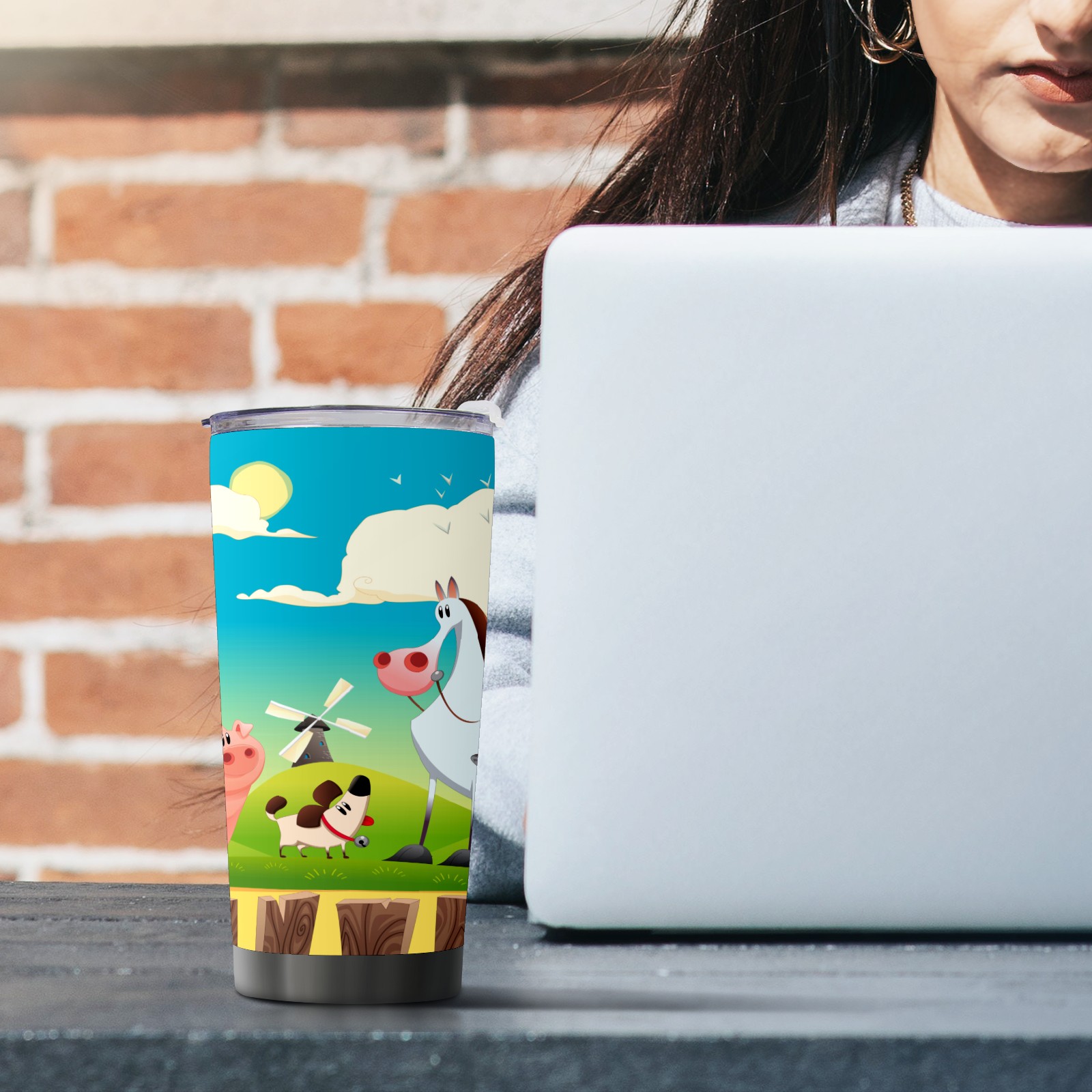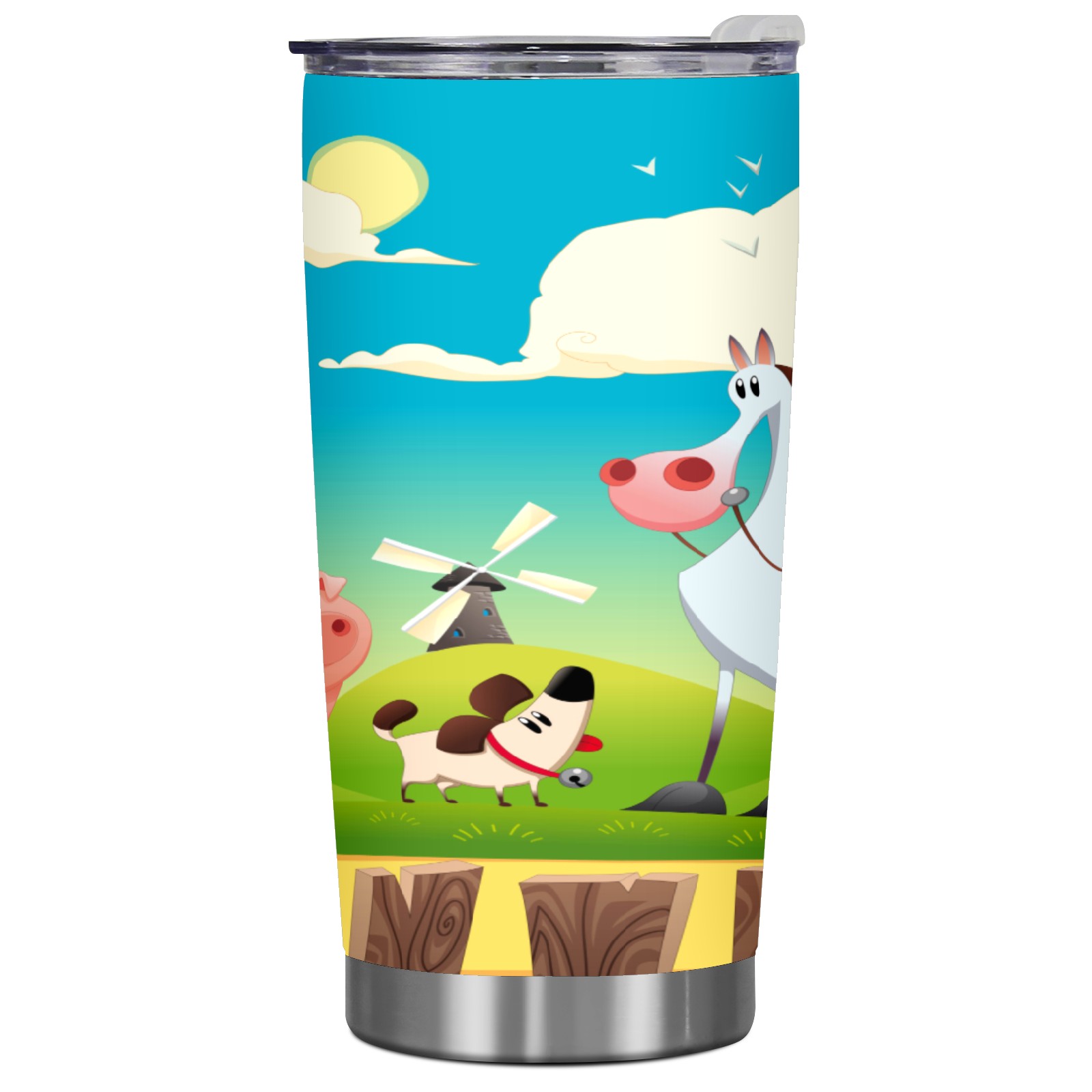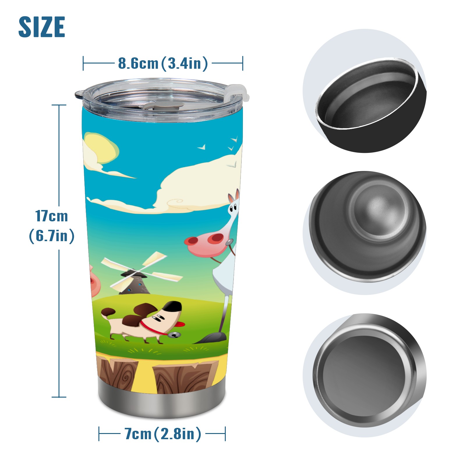 20 oz Tumbler Cartoon Pig Horse Dog Farm Rooster Stainless Steel Insulated Tumbler with Lid Double Wall Vacuum Insulated Travel Mug Cup for Coffee Ice Hot Drinks