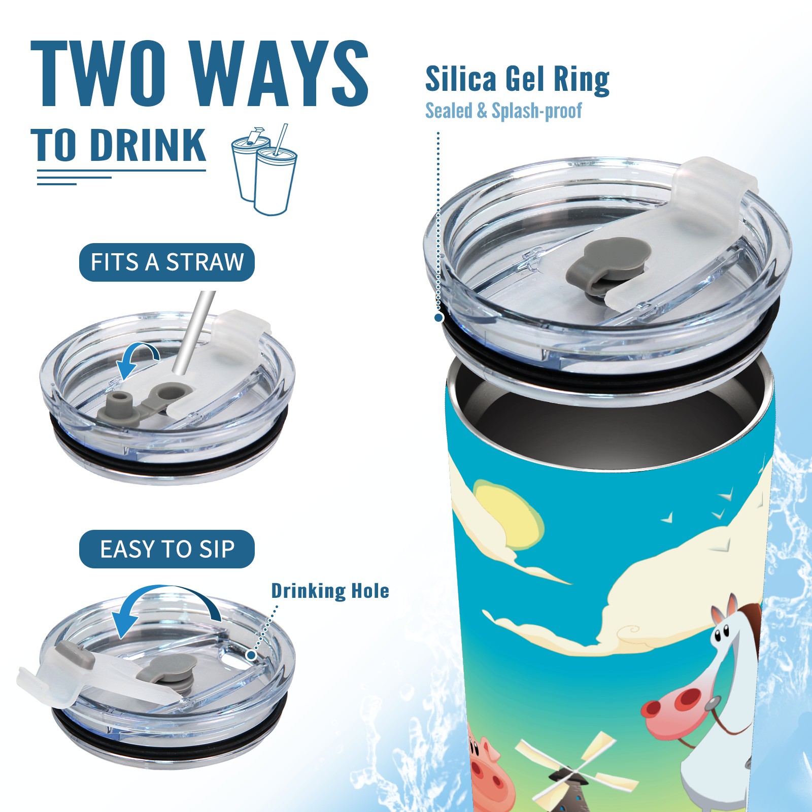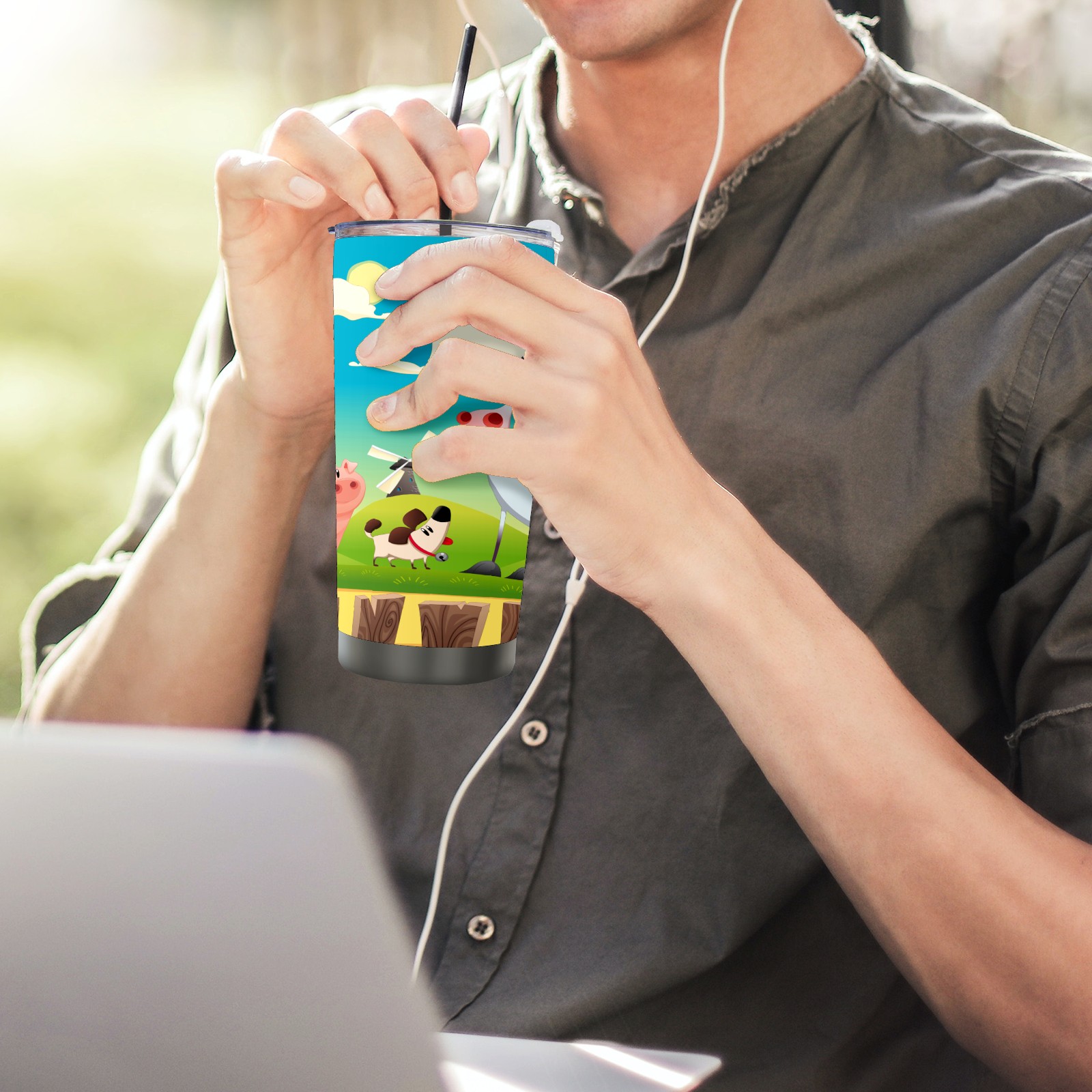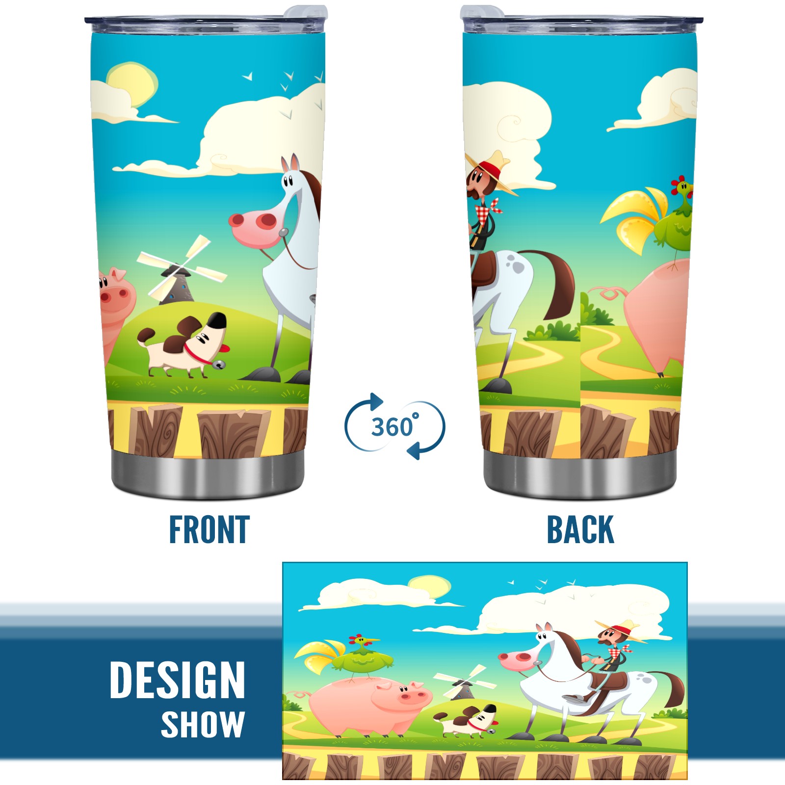 20 oz Tumbler Cartoon Pig Horse Dog Farm Rooster Stainless Steel Insulated Tumbler with Lid Double Wall Vacuum Insulated Travel Mug Cup for Coffee Ice Hot Drinks