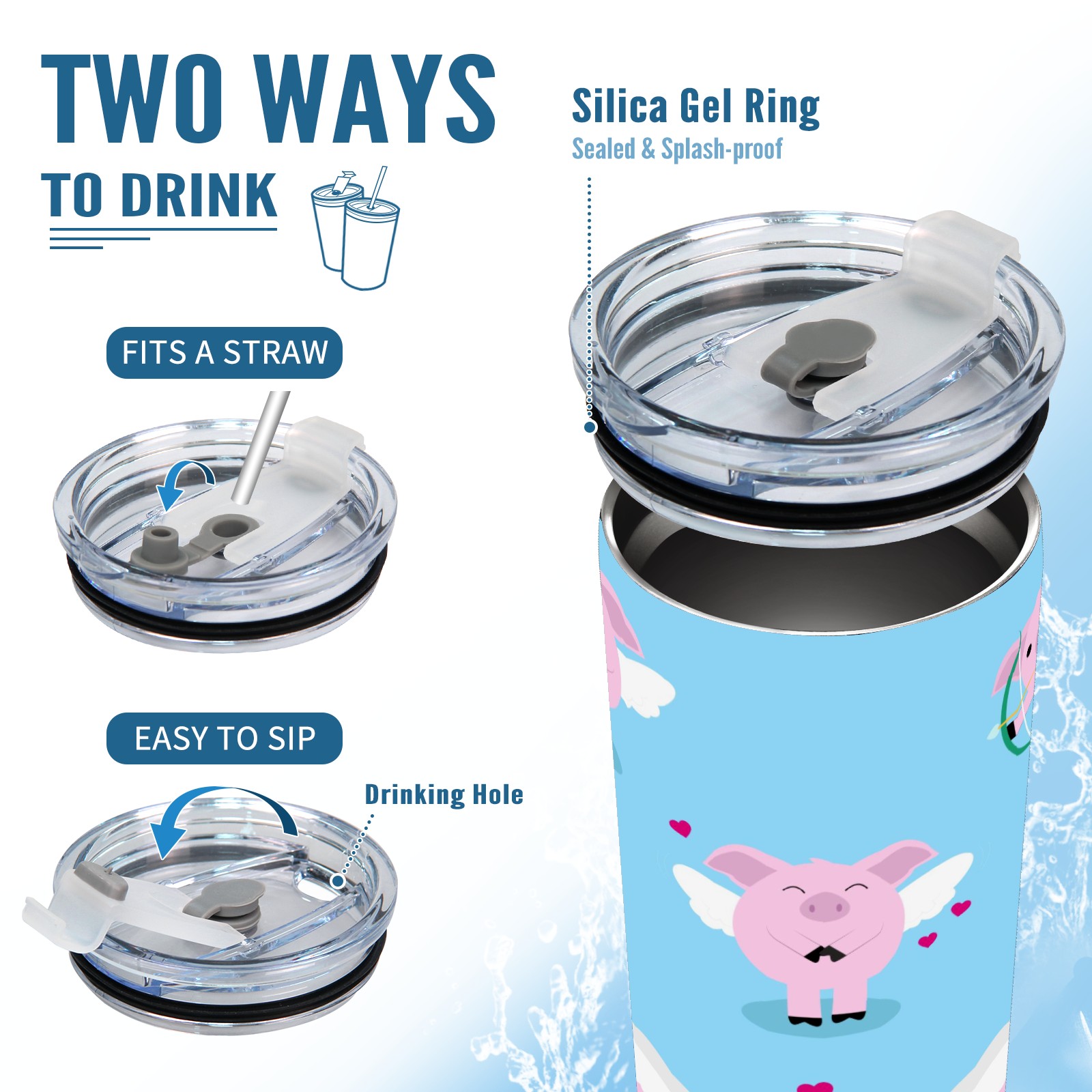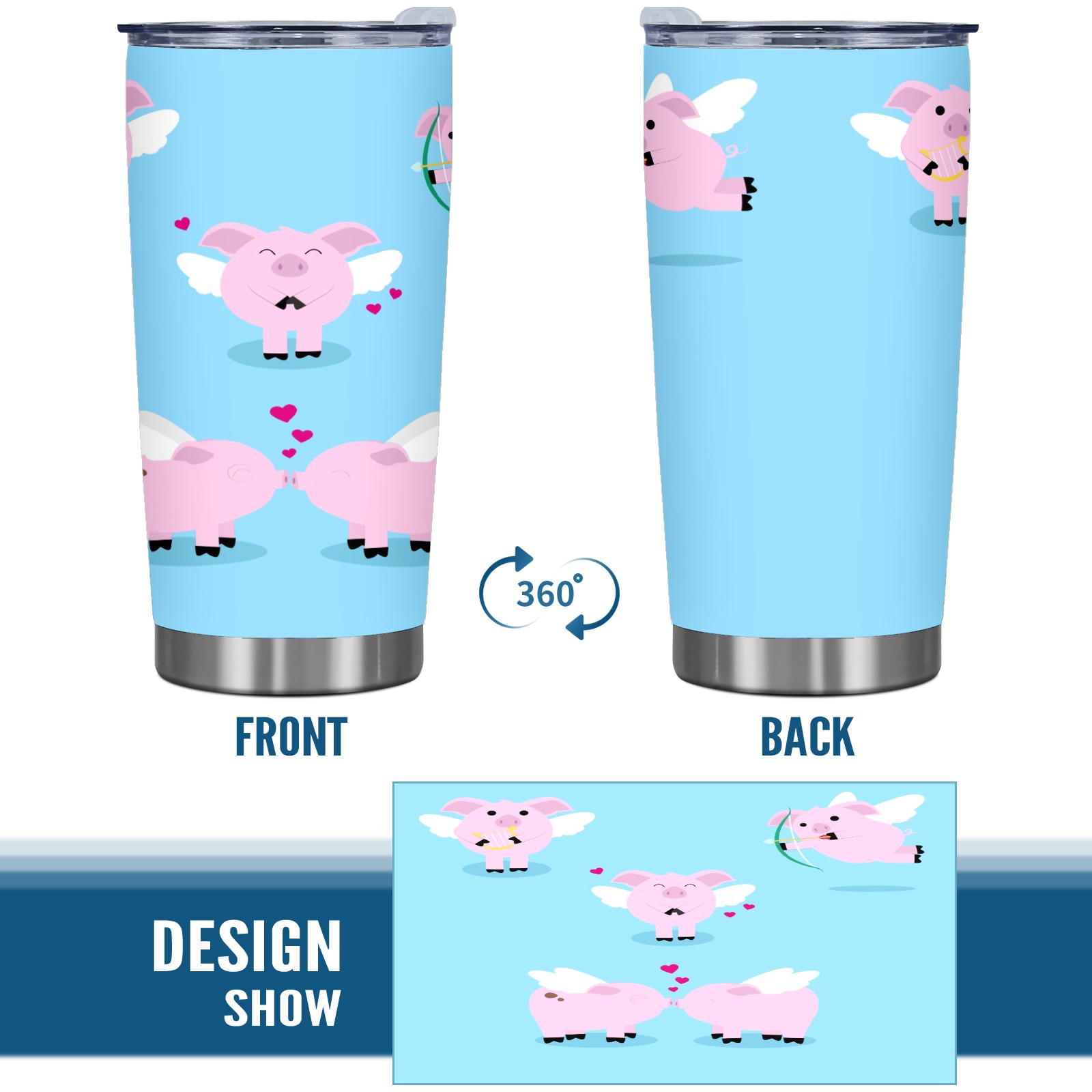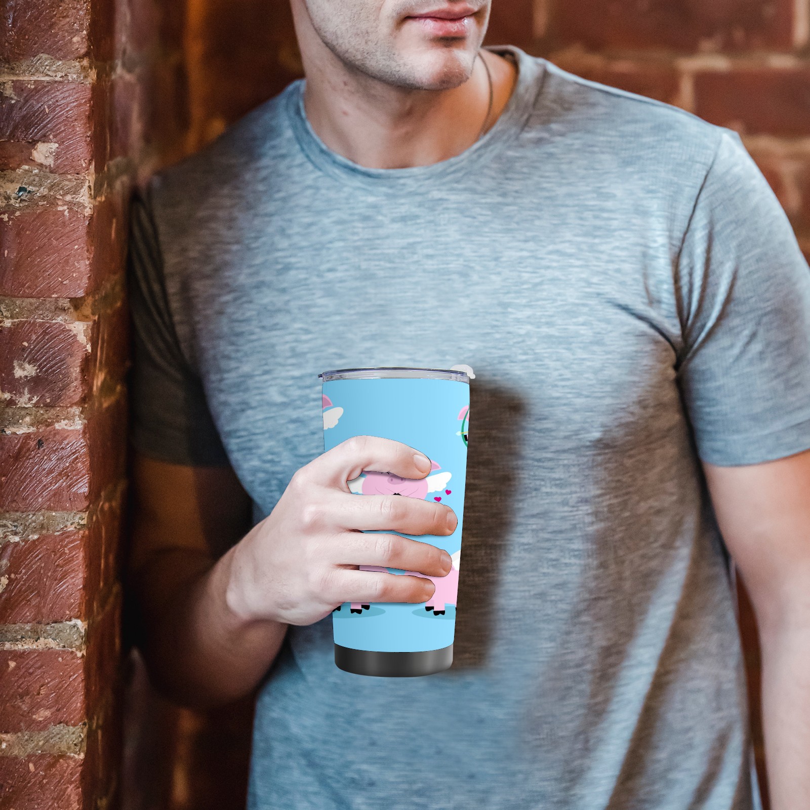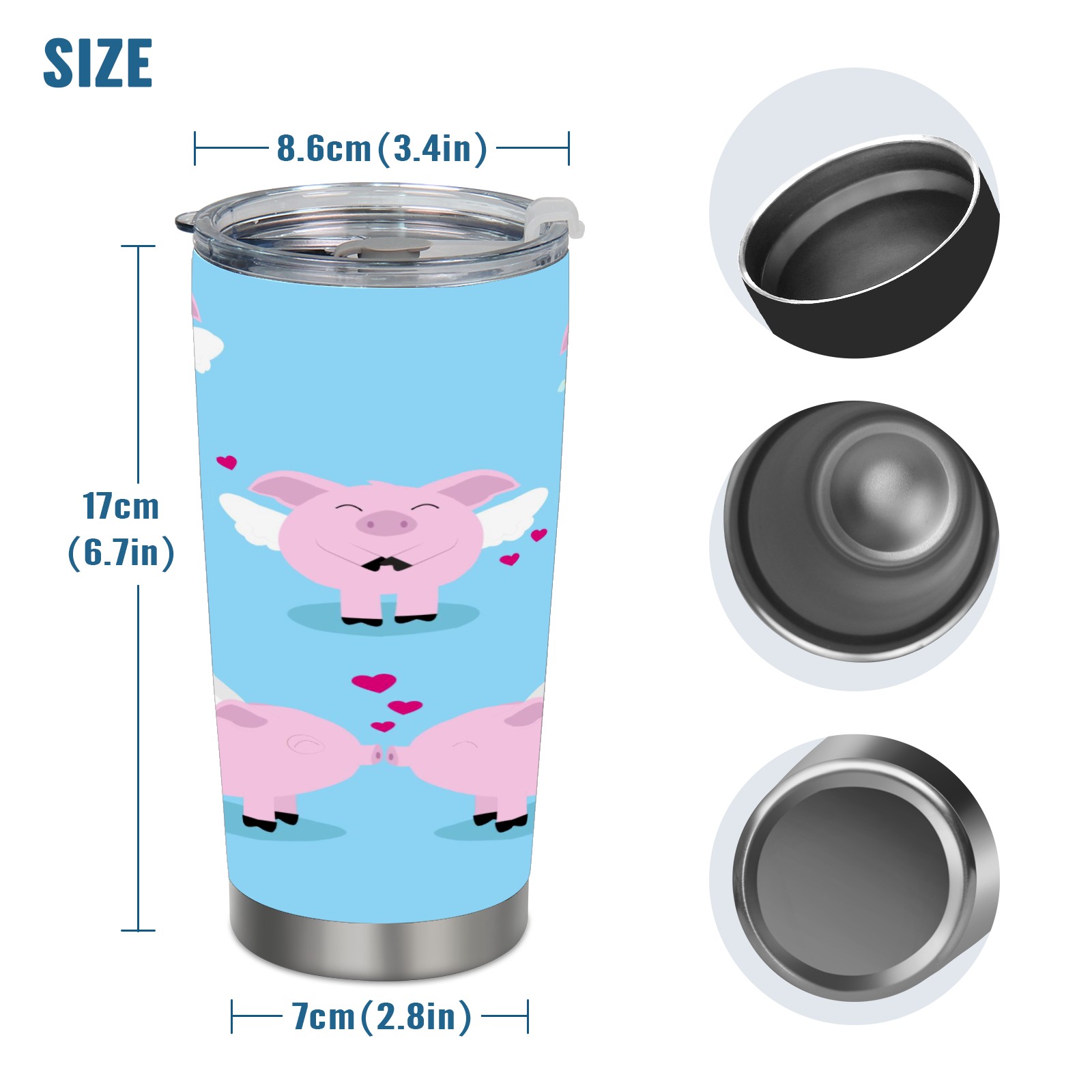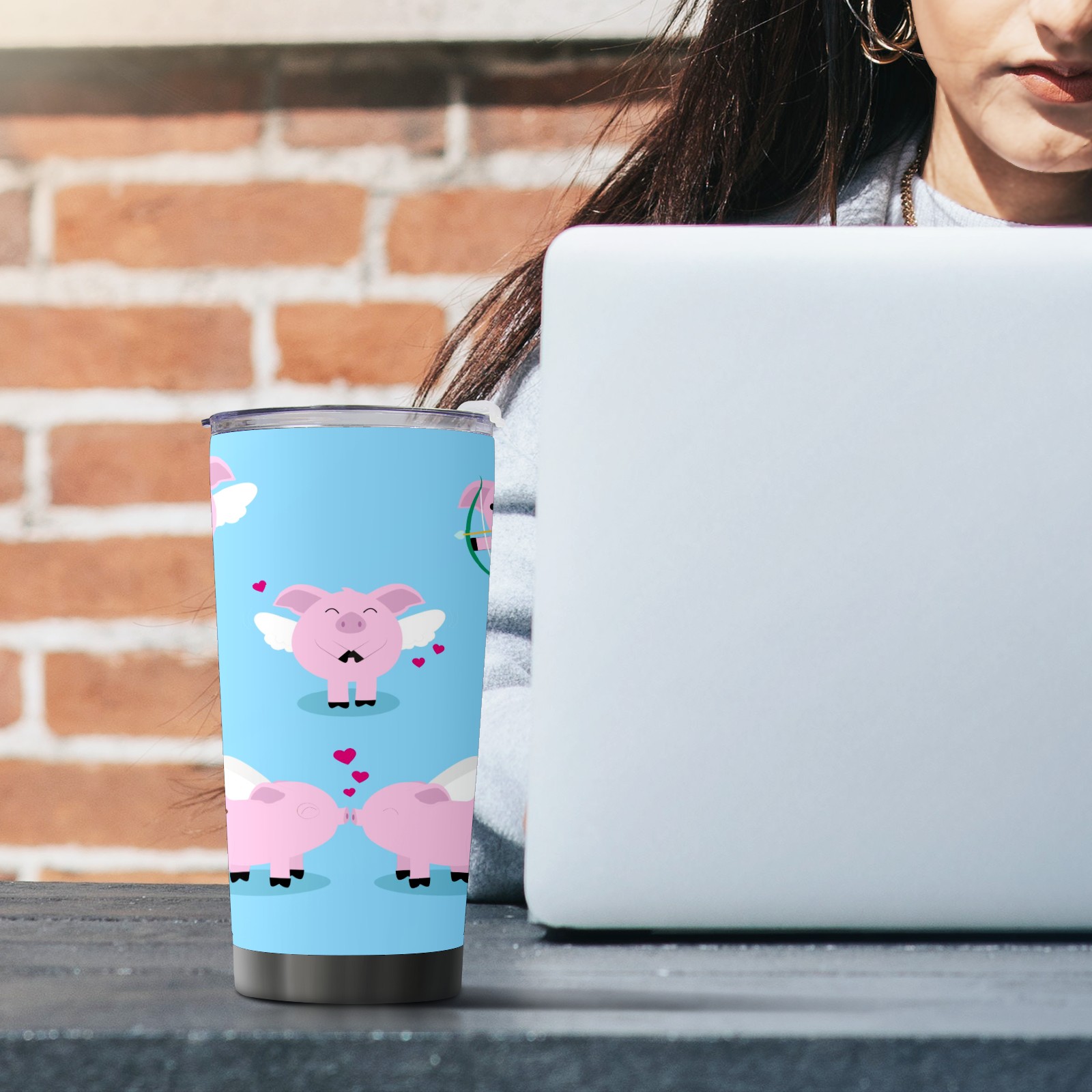 20 oz Tumbler Cute Angel Pig Piggy Stainless Steel Insulated Tumbler with Lid Double Wall Vacuum Insulated Travel Mug Cup for Coffee Ice Hot Drinks