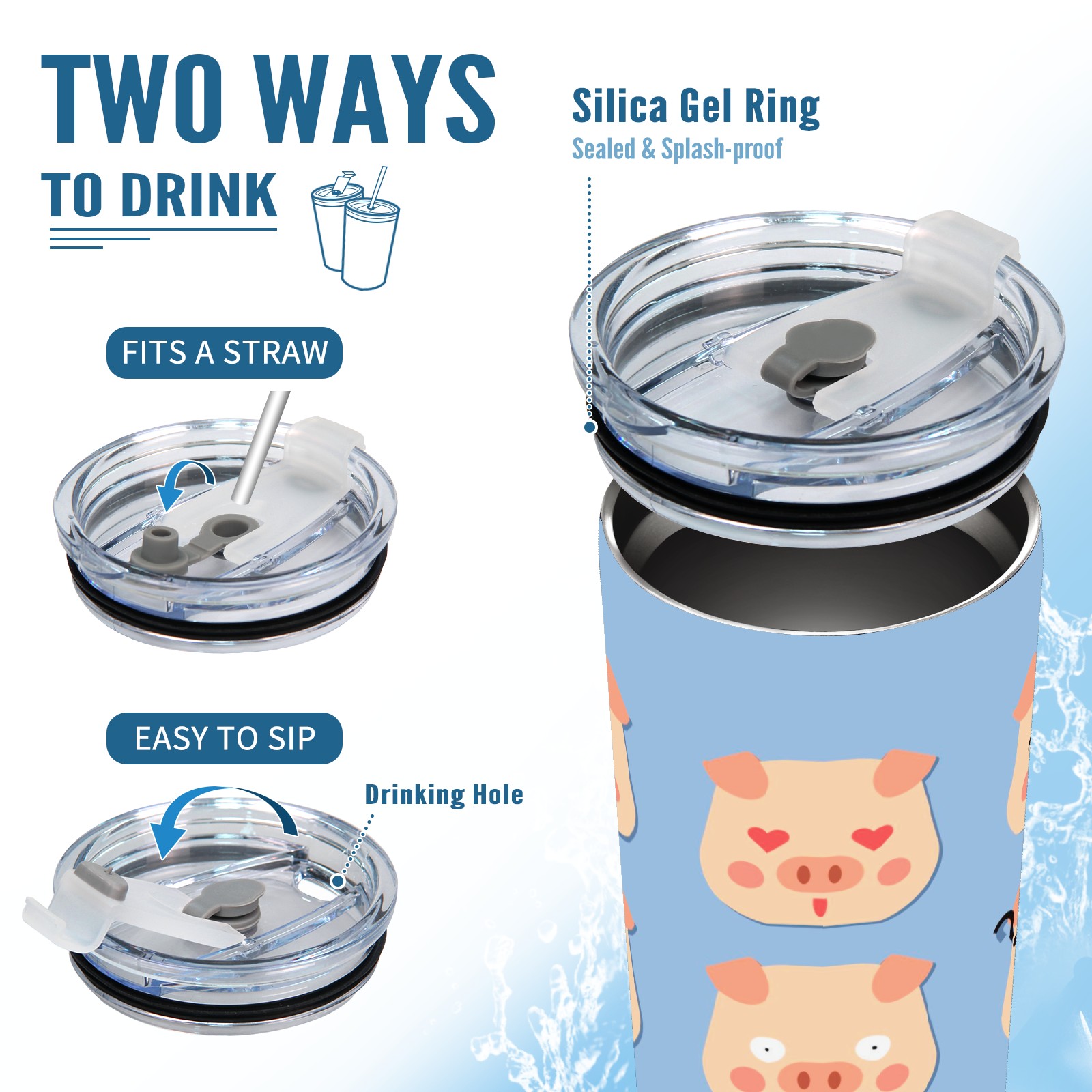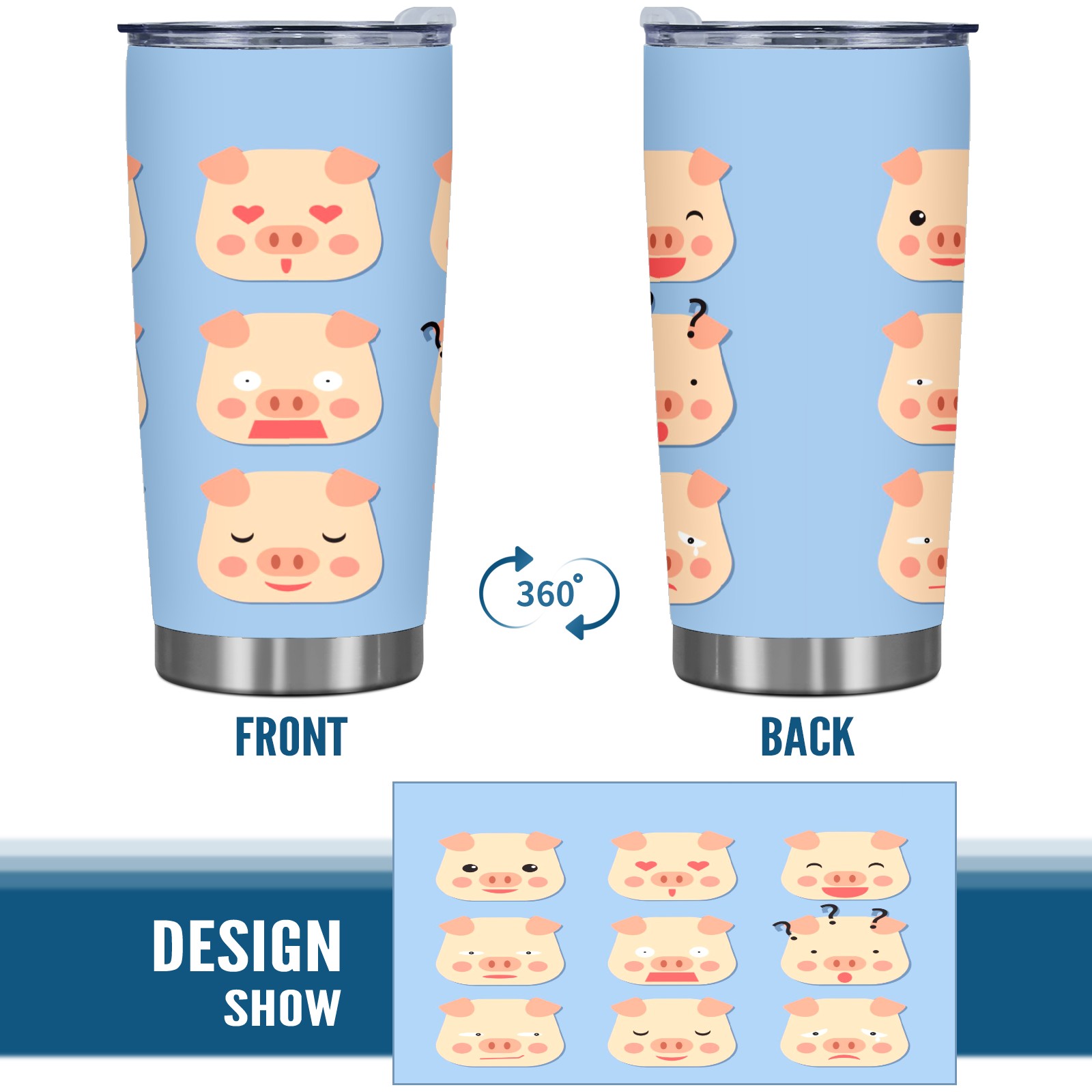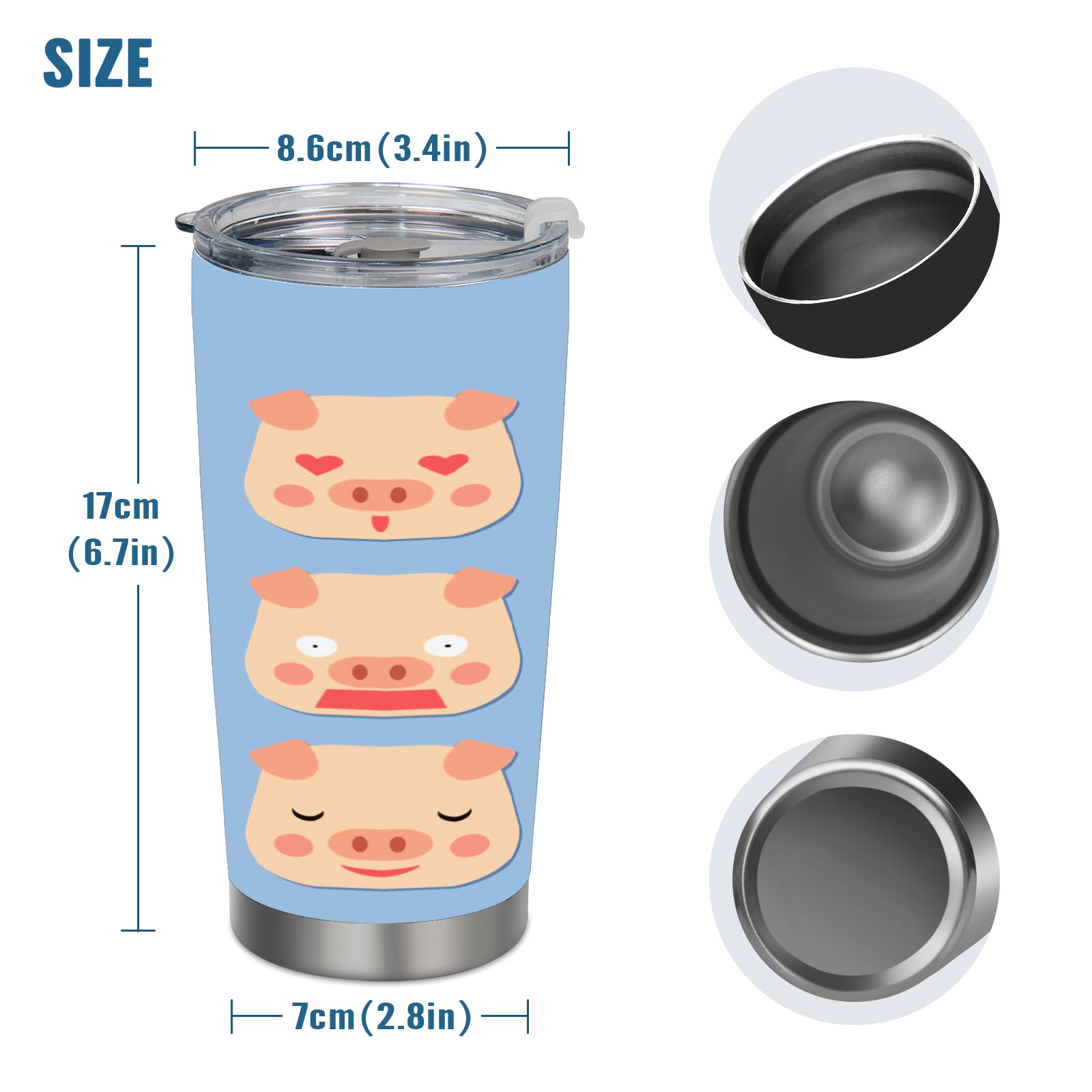 20 oz Tumbler Pig Face Stainless Steel Insulated Tumbler with Lid Double Wall Vacuum Insulated Travel Mug Cup for Coffee Ice Hot Drinks