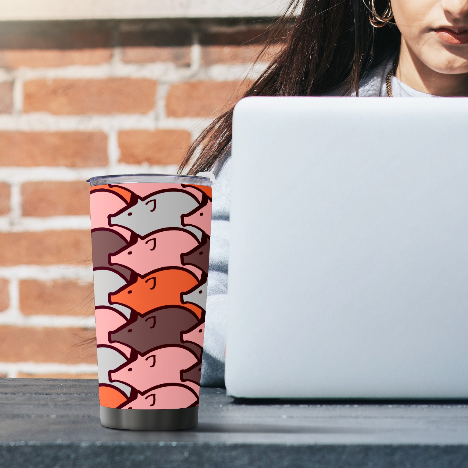 20 oz Tumbler Funny Cartoon Pig Pattern Stainless Steel Insulated Tumbler with Lid Double Wall Vacuum Insulated Travel Mug Cup for Coffee Ice Hot Drinks