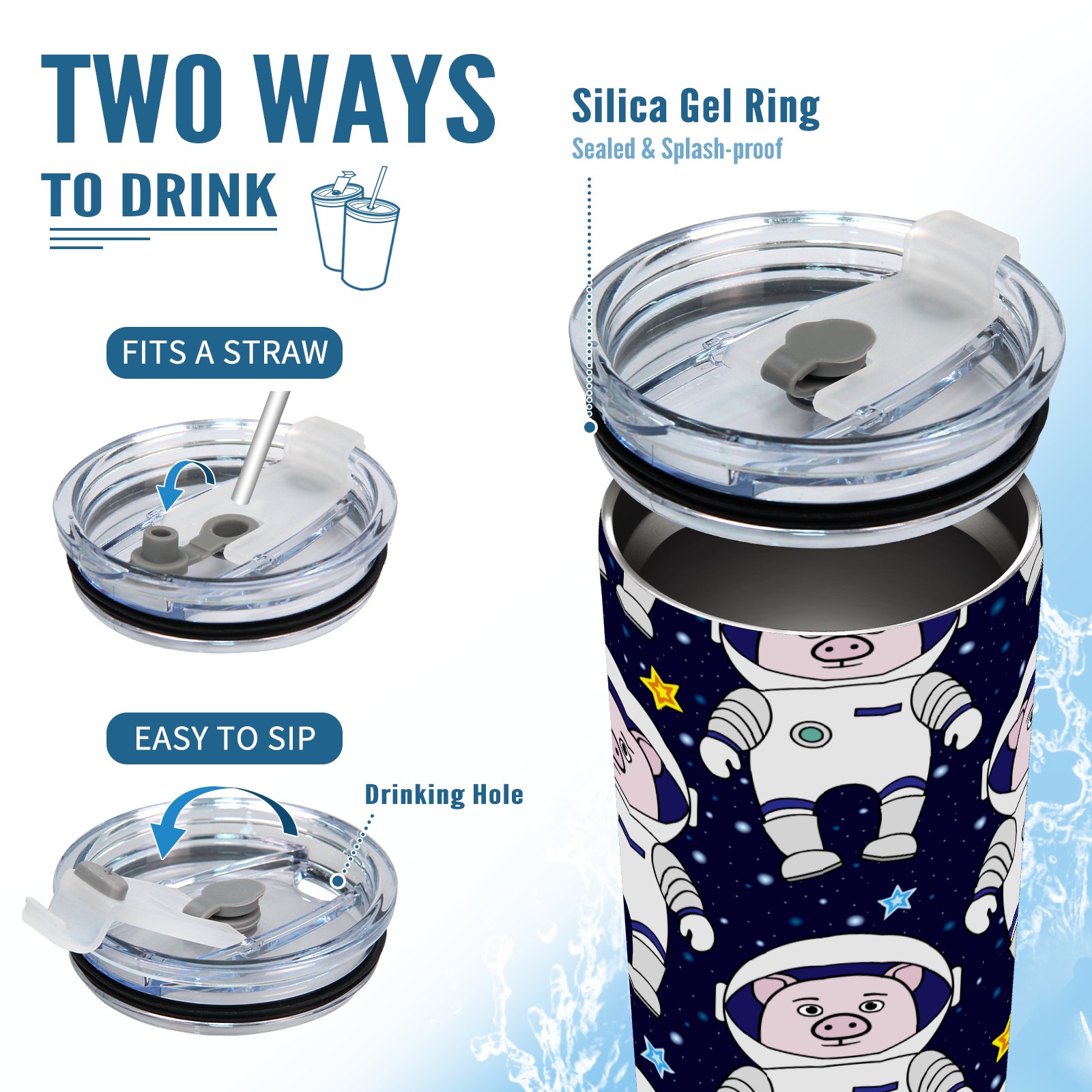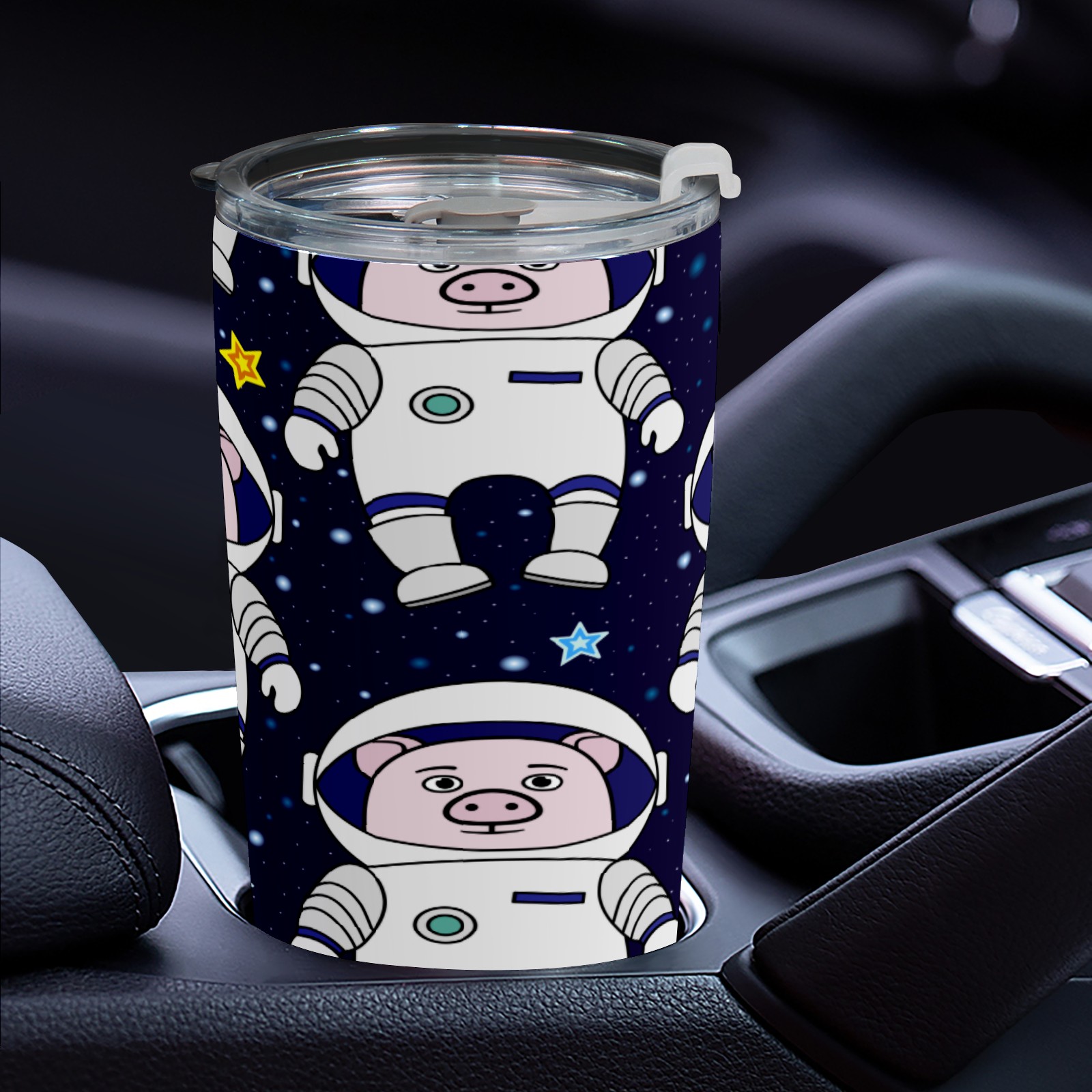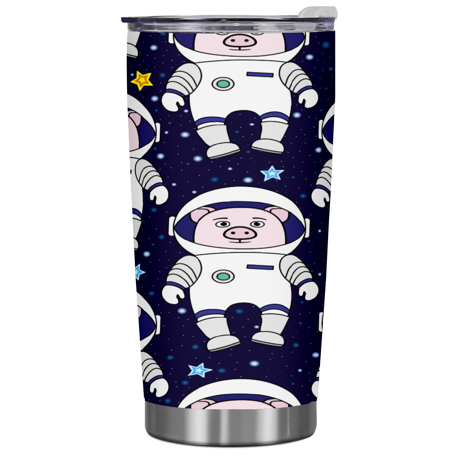 20 oz Tumbler Funny Cartoon Pig Astronaut Pattern Stainless Steel Insulated Tumbler with Lid Double Wall Vacuum Insulated Travel Mug Cup for Coffee Ice Hot Drinks