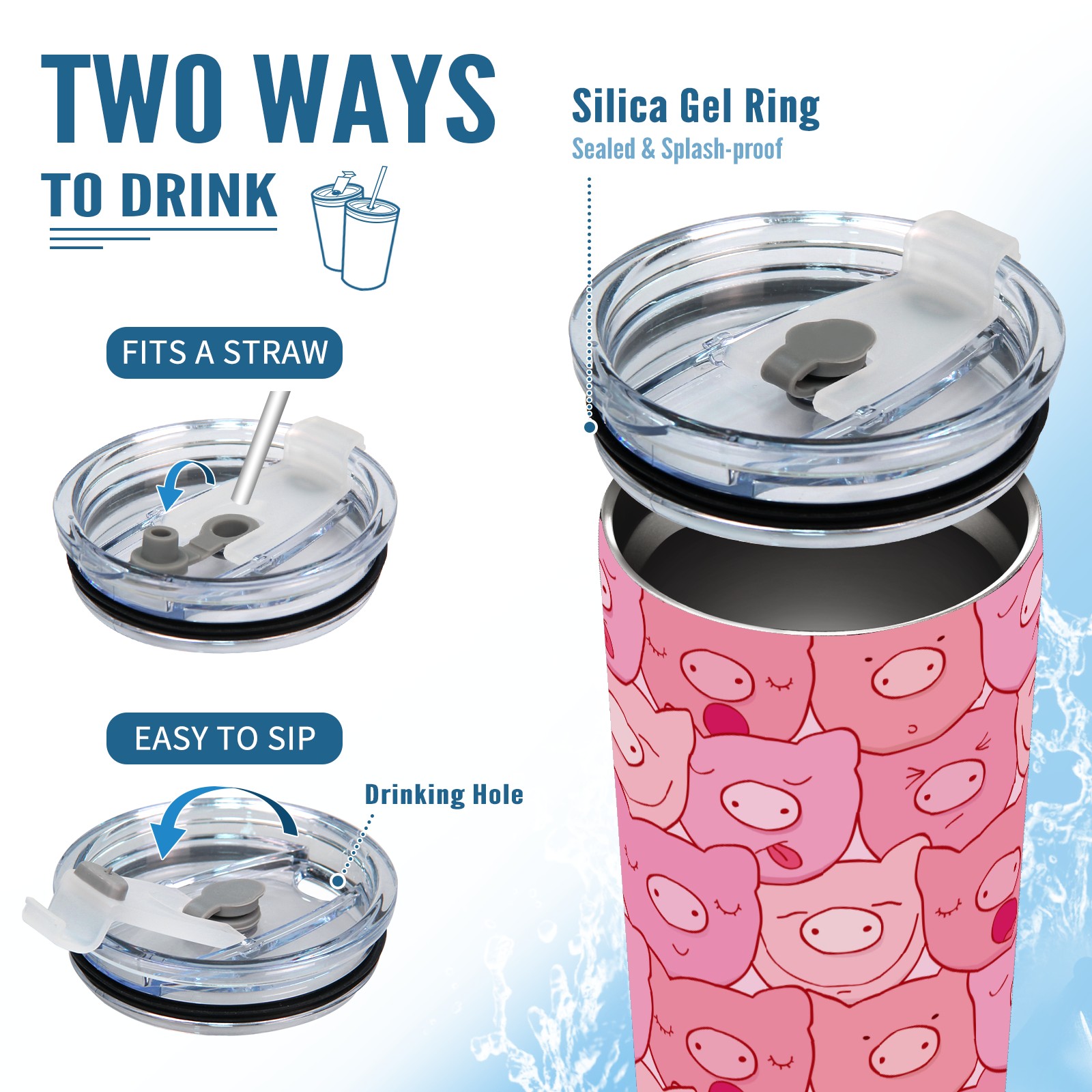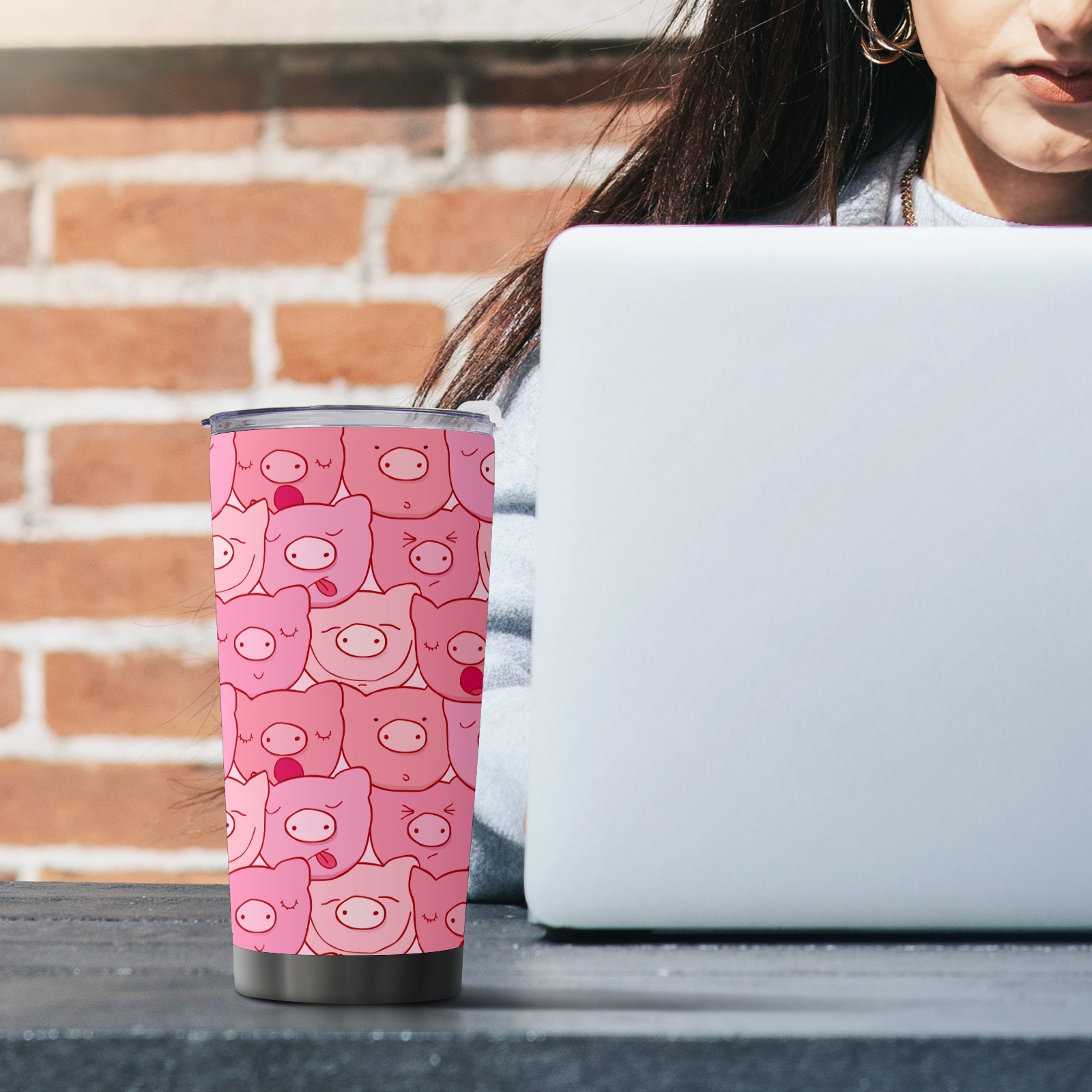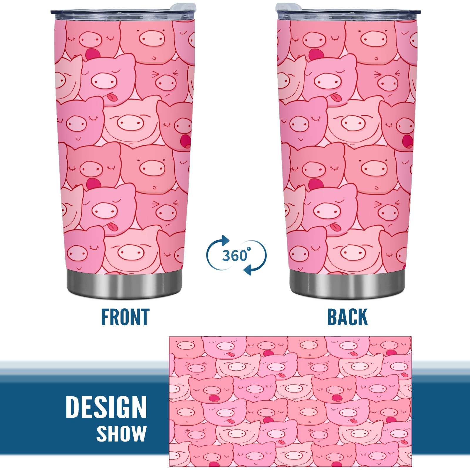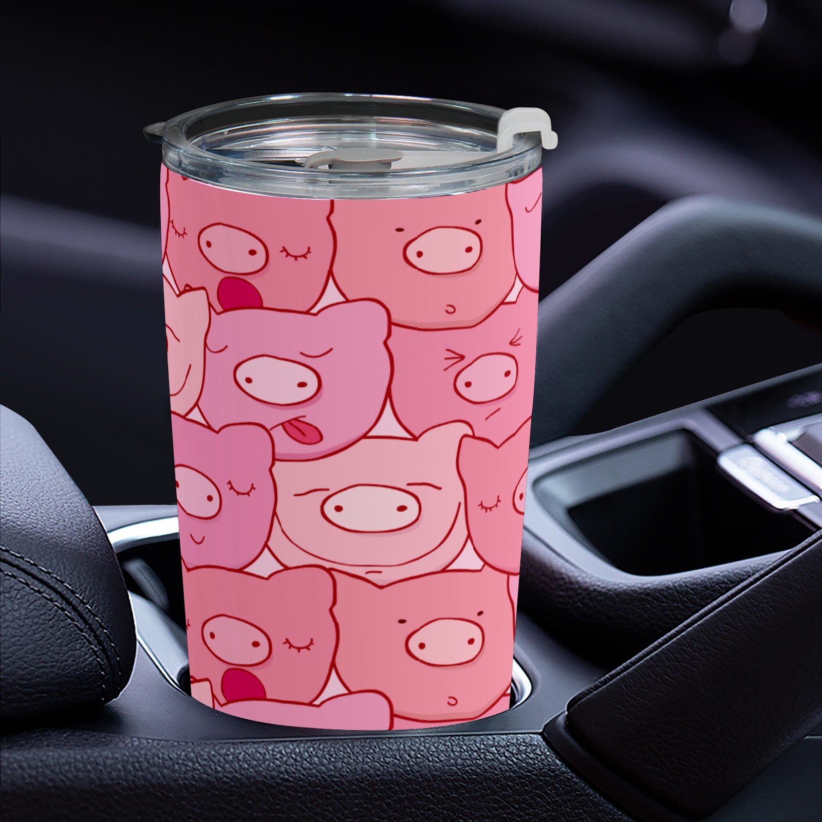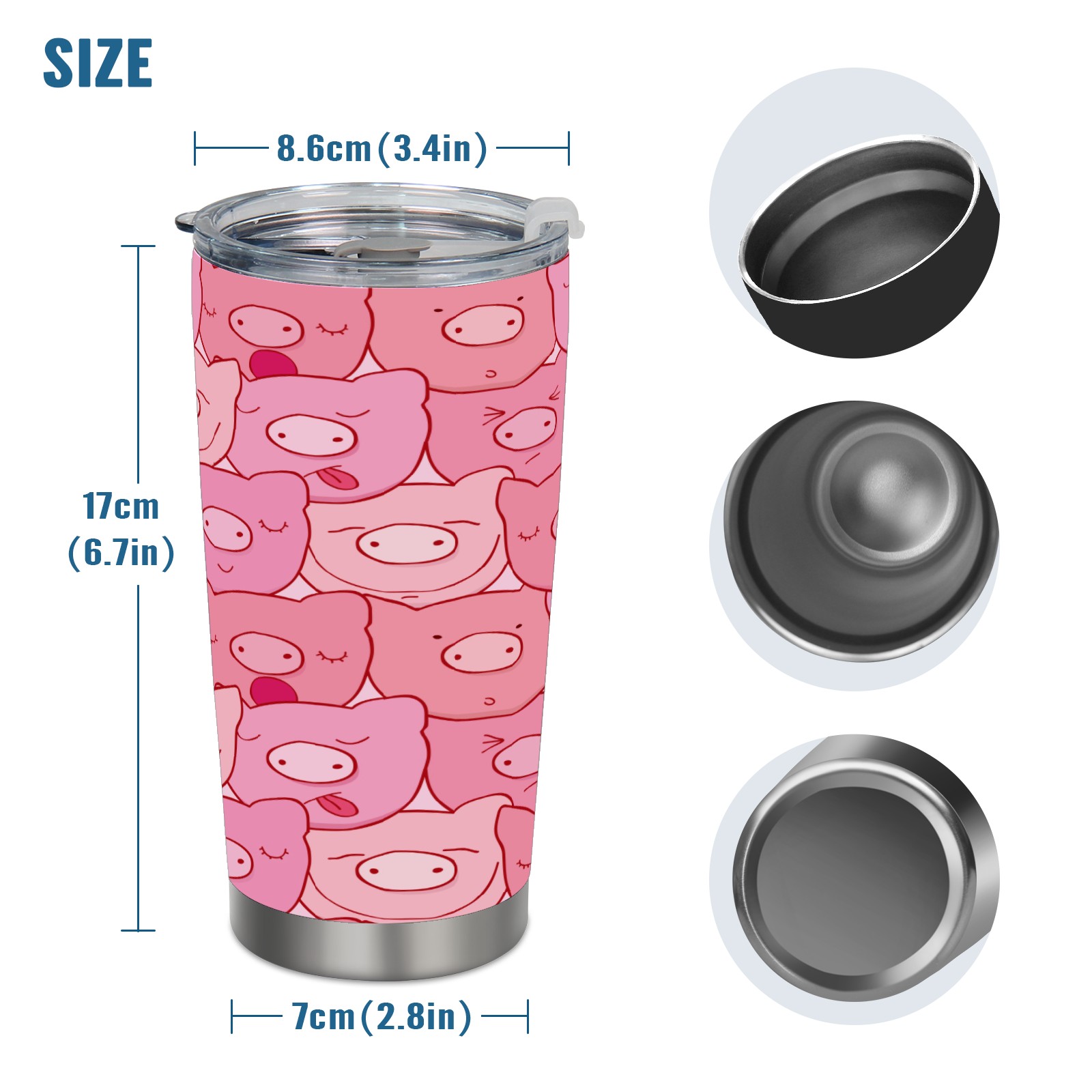 20 oz Tumbler Cute Pink Pig Head Pattern Stainless Steel Insulated Tumbler with Lid Double Wall Vacuum Insulated Travel Mug Cup for Coffee Ice Hot Drinks