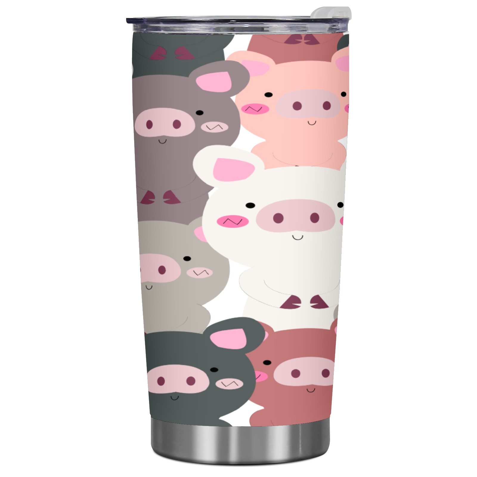 20 oz Tumbler Cute Cartoon Pig Pattern Stainless Steel Insulated Tumbler with Lid Double Wall Vacuum Insulated Travel Mug Cup for Coffee Ice Hot Drinks