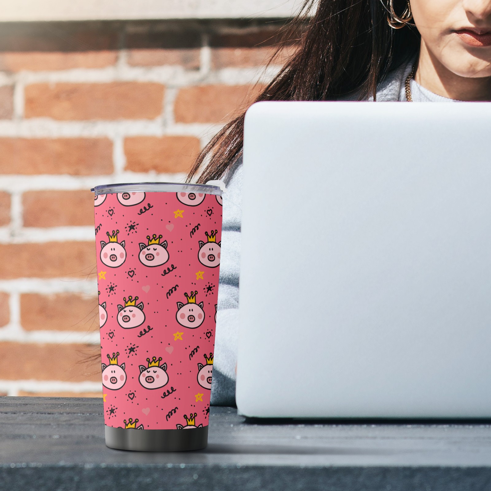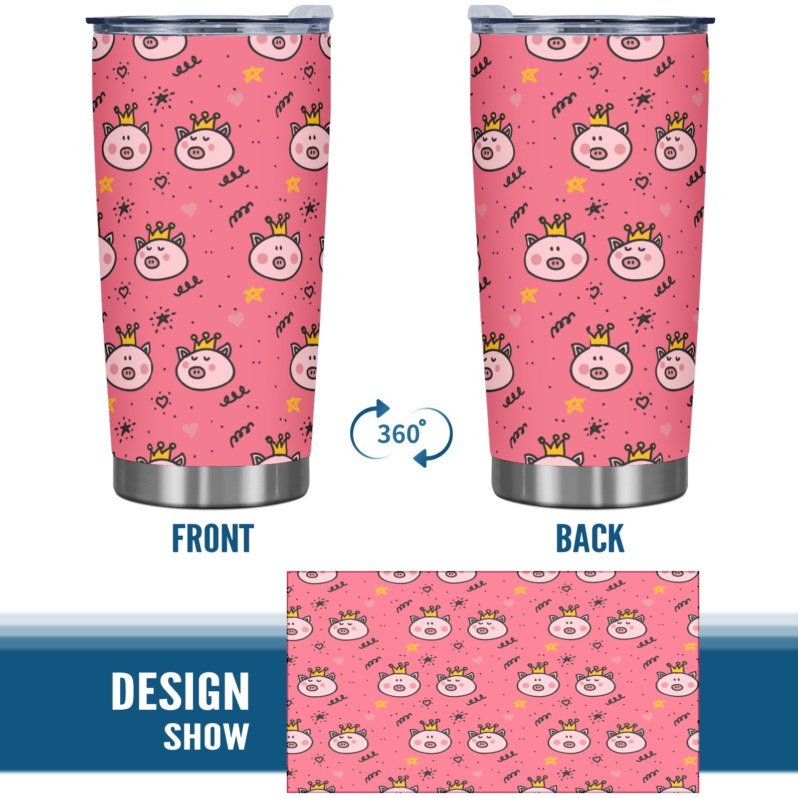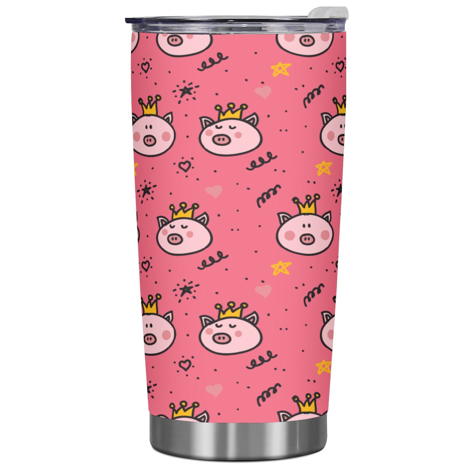 20 oz Tumbler Princess Pigs Pattern Stars Pink Stainless Steel Insulated Tumbler with Lid Double Wall Vacuum Insulated Travel Mug Cup for Coffee Ice Hot Drinks