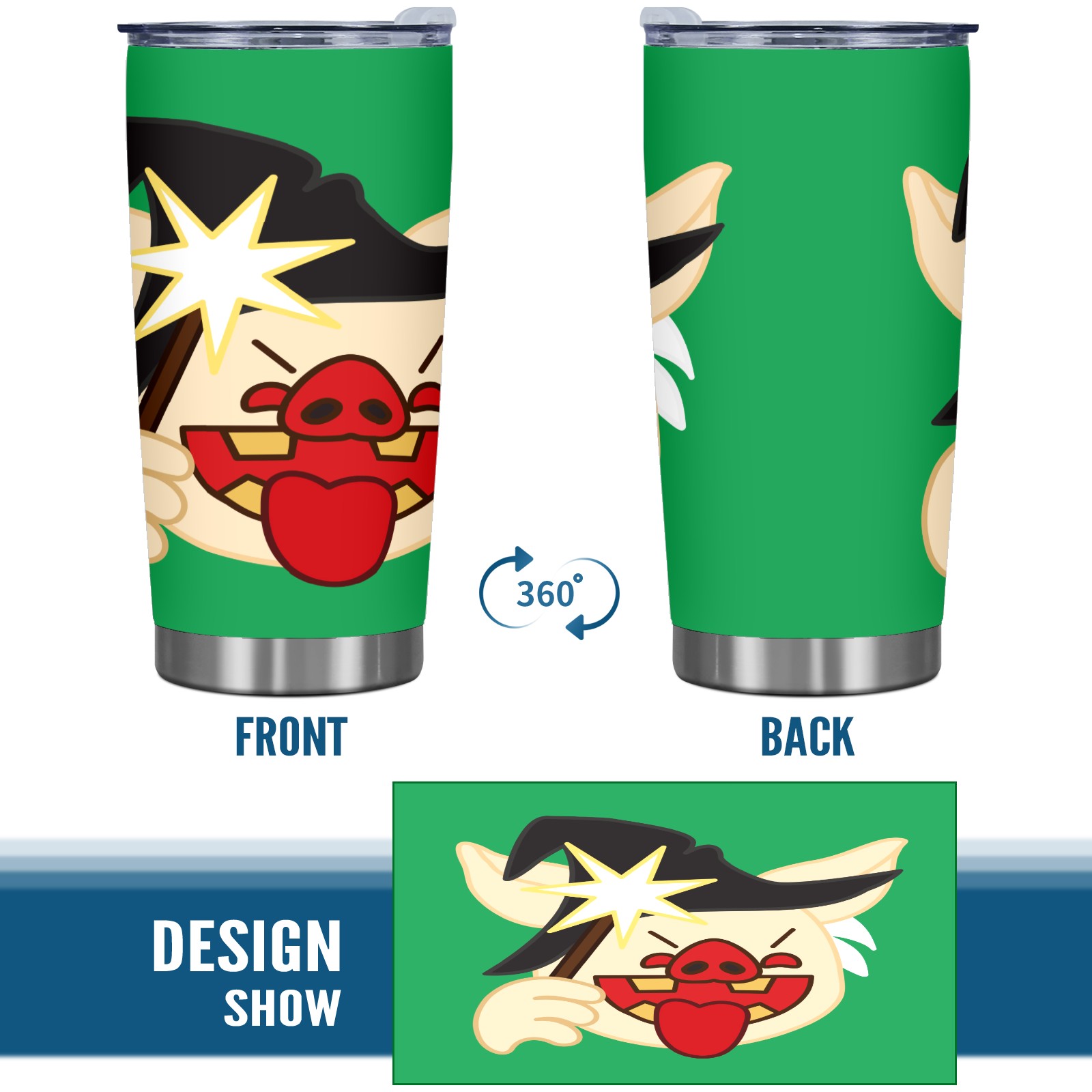 20 oz Tumbler Funny Magic Piggy Wizard Stainless Steel Insulated Tumbler with Lid Double Wall Vacuum Insulated Travel Mug Cup for Coffee Ice Hot Drinks