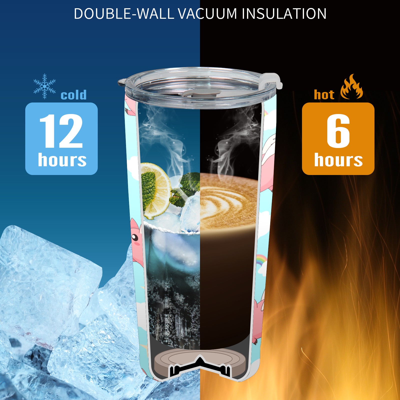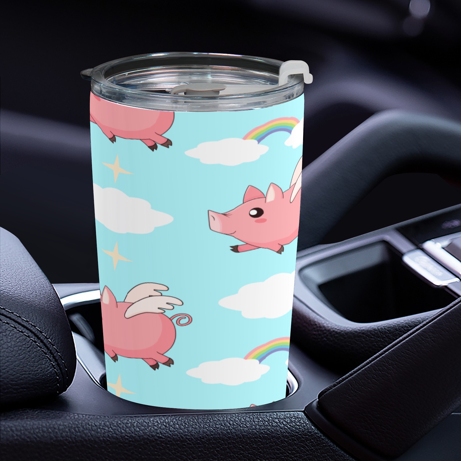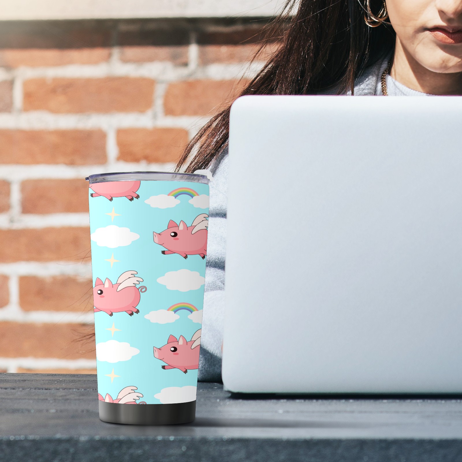 20 oz Tumbler Cute Pink Flying Piggy Clouds Stainless Steel Insulated Tumbler with Lid Double Wall Vacuum Insulated Travel Mug Cup for Coffee Ice Hot Drinks