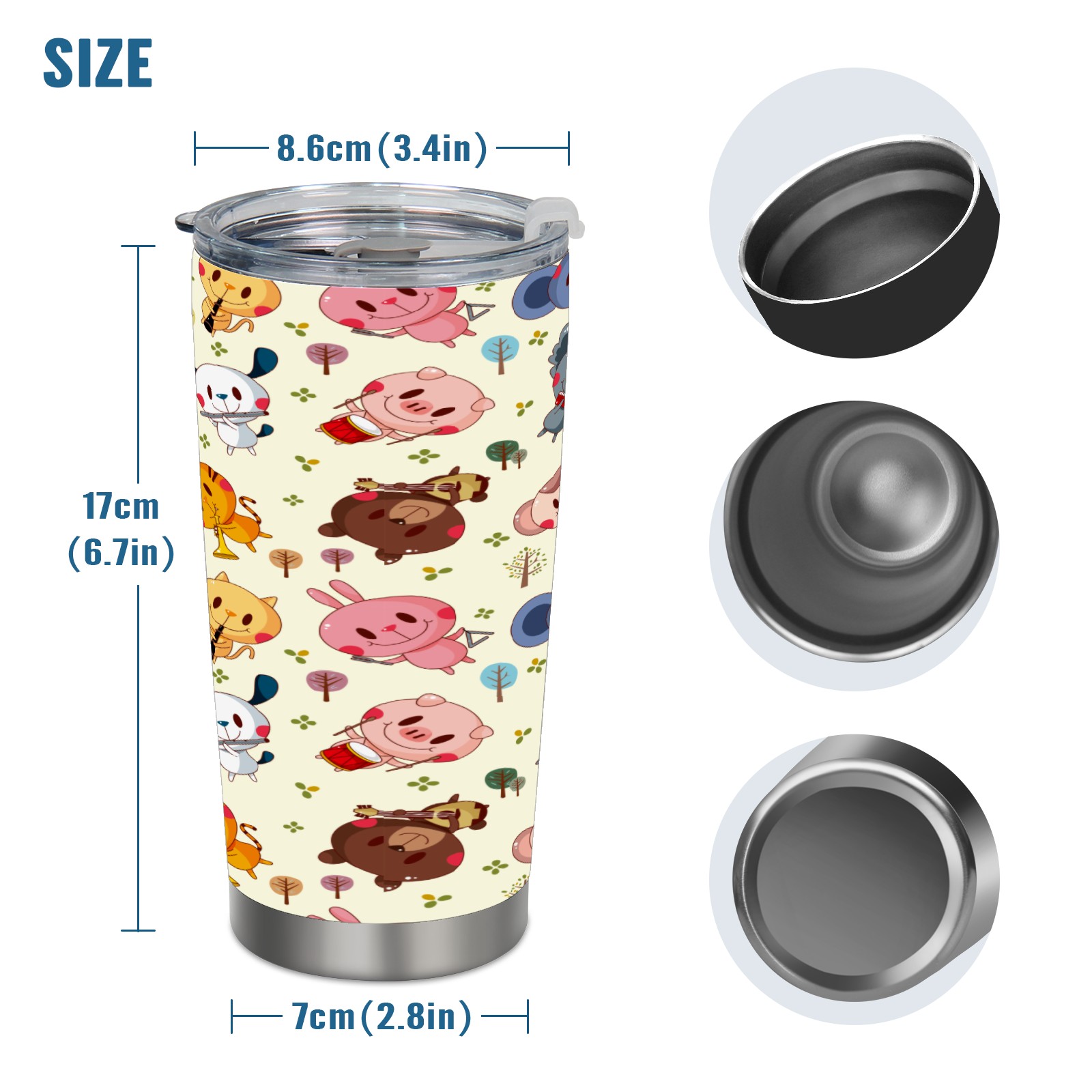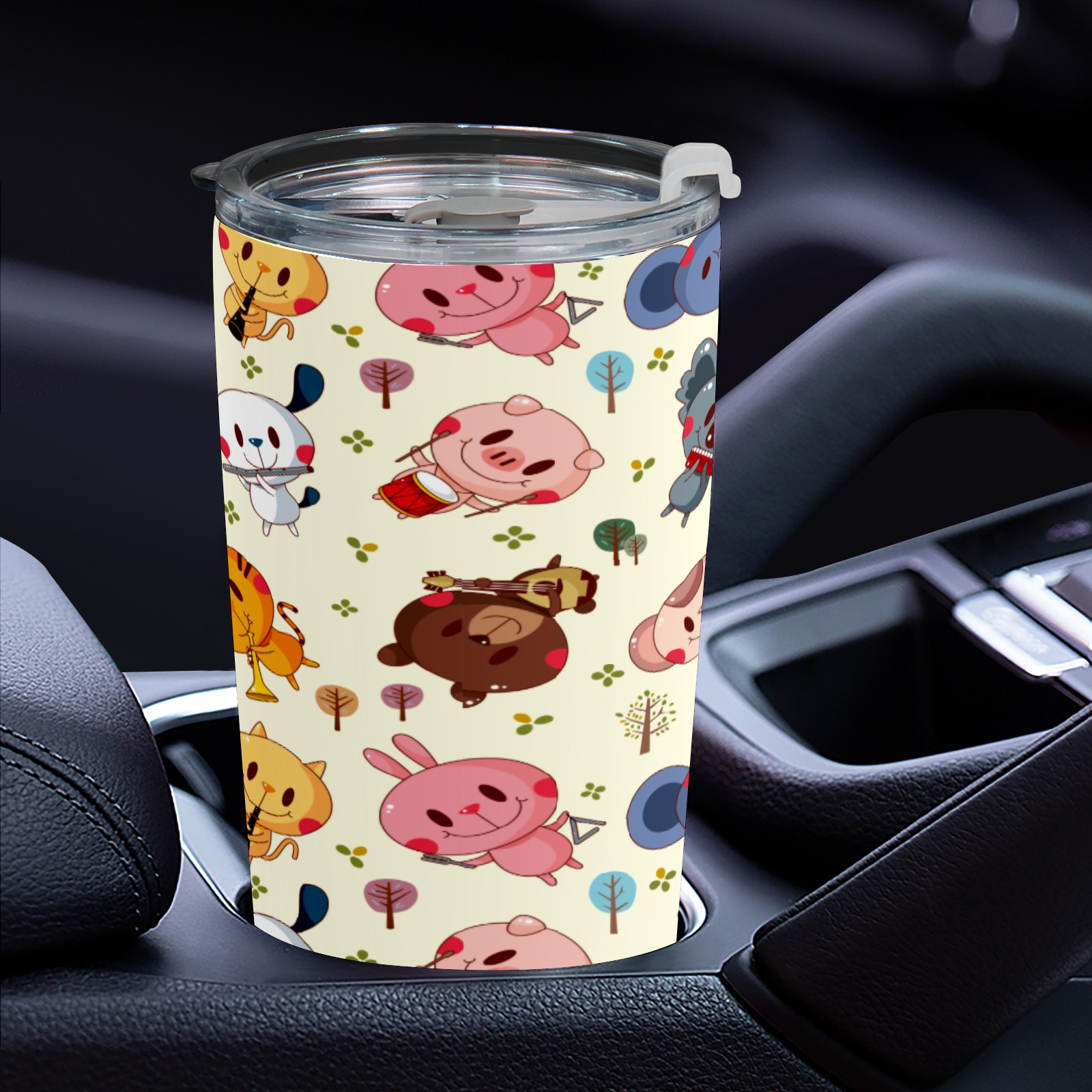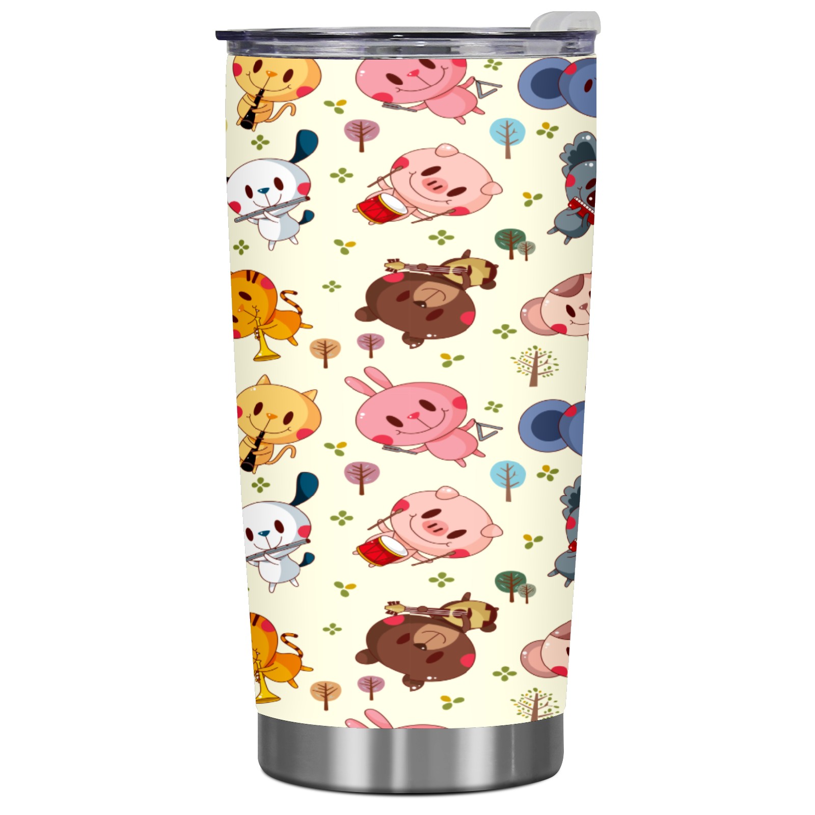 20 oz Tumbler Musical Party Forest Animal Pig Bear Kola Stainless Steel Insulated Tumbler with Lid Double Wall Vacuum Insulated Travel Mug Cup for Coffee Ice Hot Drinks
