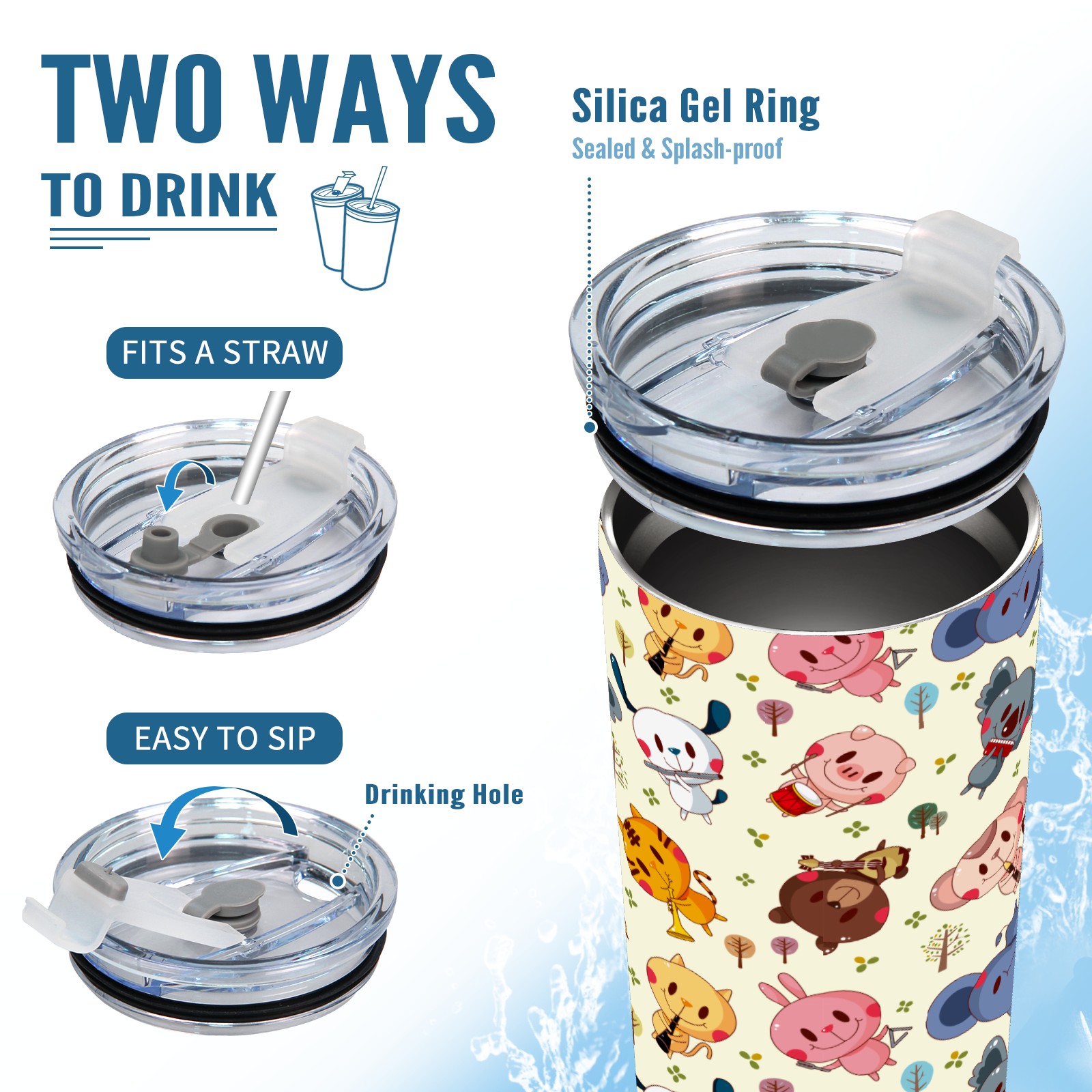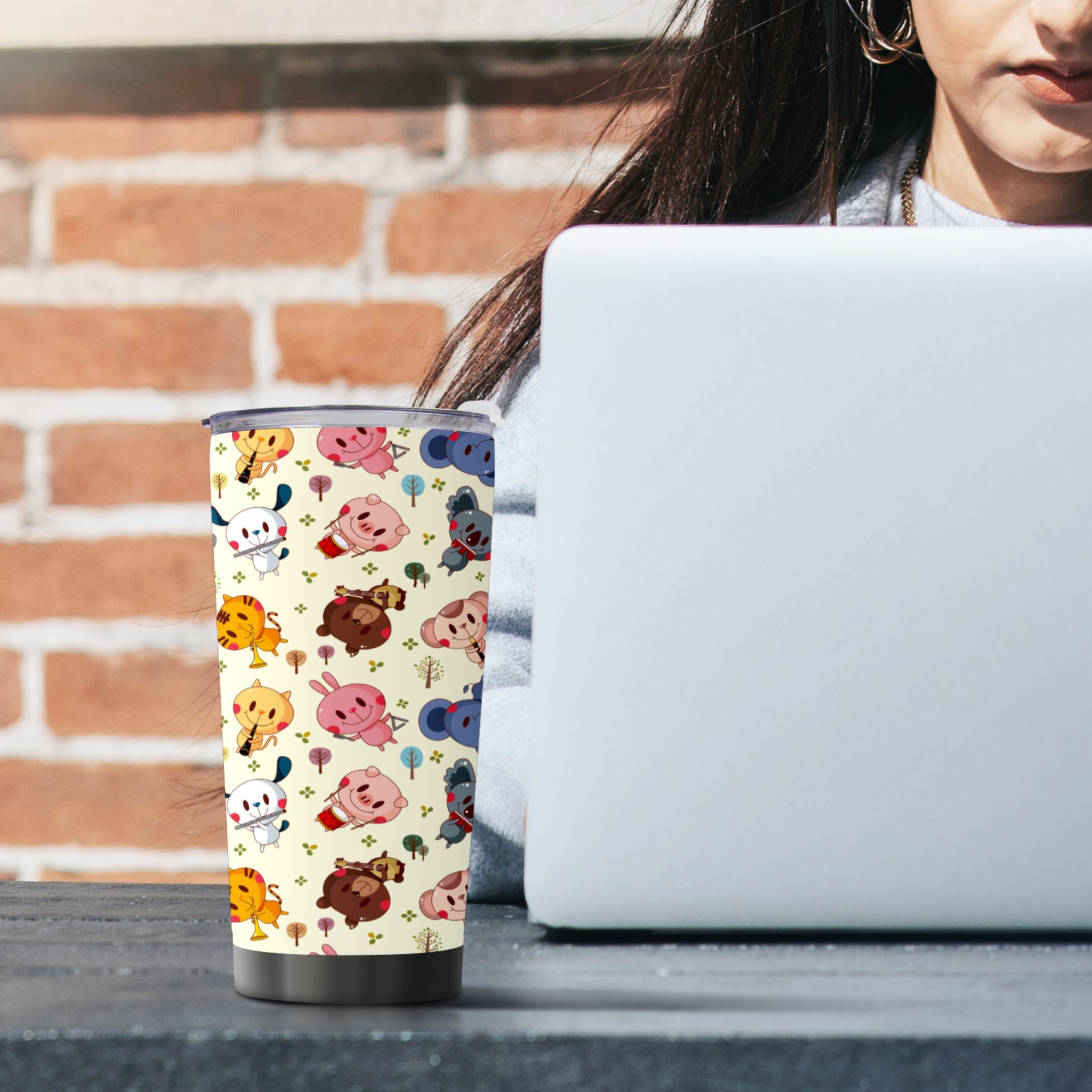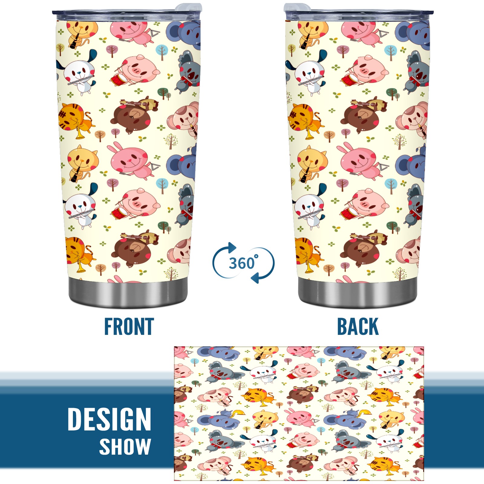 20 oz Tumbler Musical Party Forest Animal Pig Bear Kola Stainless Steel Insulated Tumbler with Lid Double Wall Vacuum Insulated Travel Mug Cup for Coffee Ice Hot Drinks
