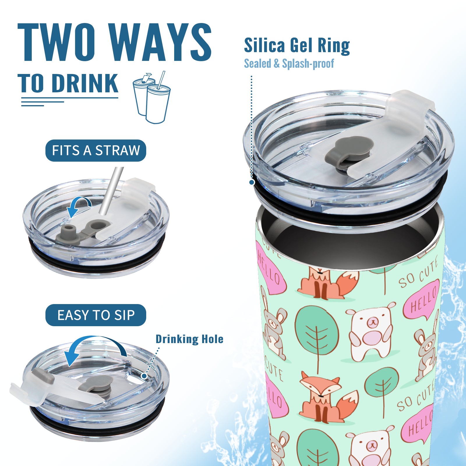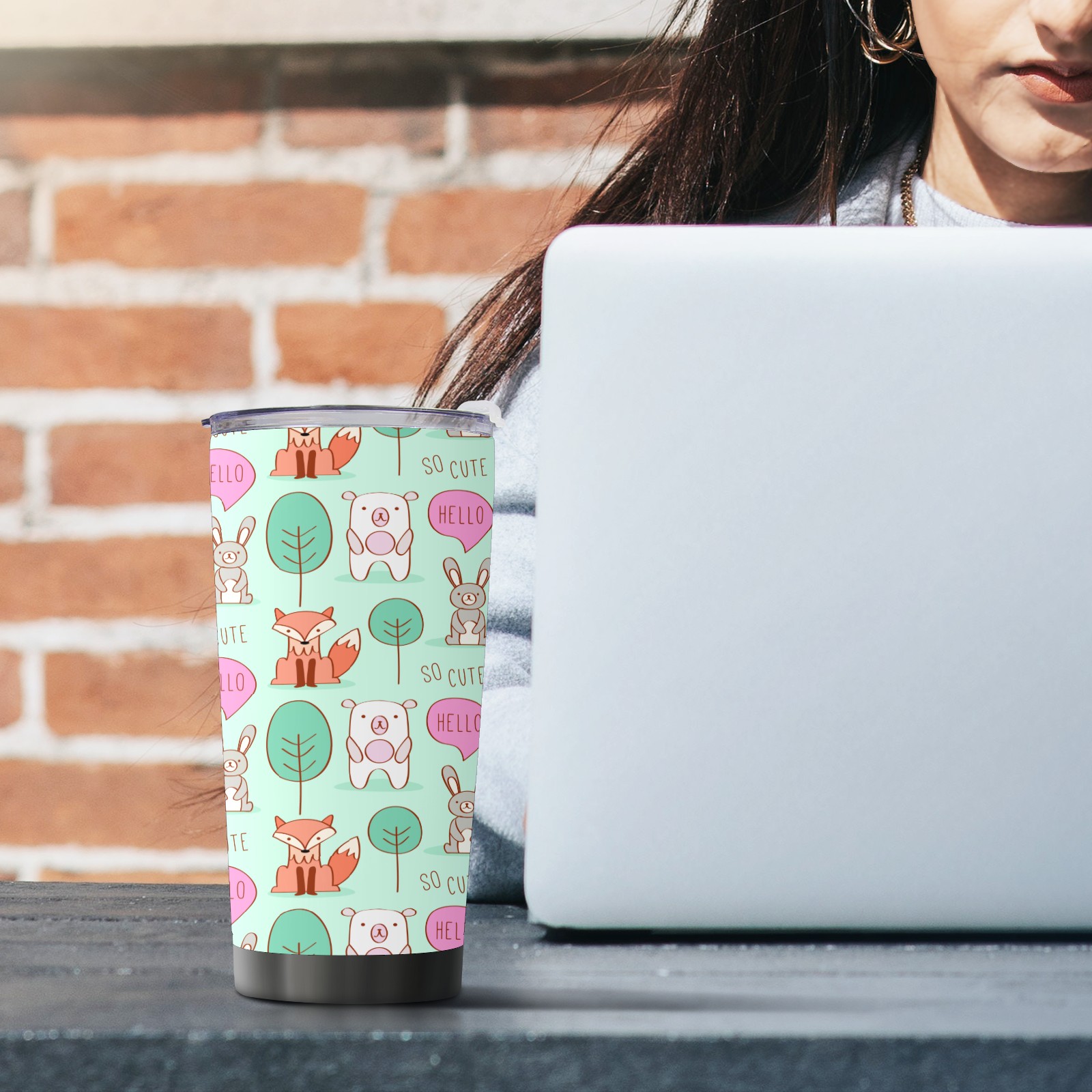 20 oz Tumbler So Cute Pig And Fox Stainless Steel Insulated Tumbler with Lid Double Wall Vacuum Insulated Travel Mug Cup for Coffee Ice Hot Drinks