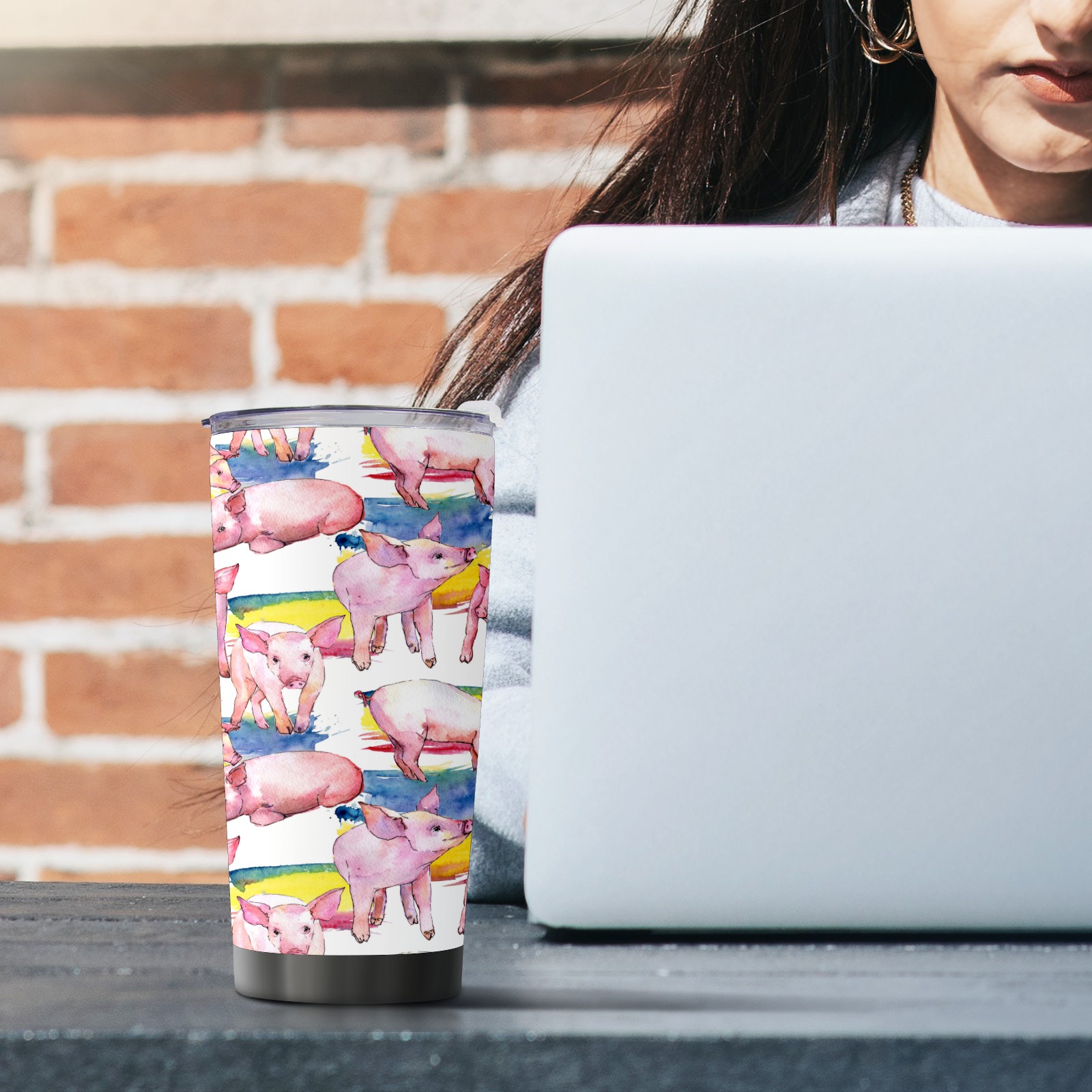 20 oz Tumbler Watercolor Pink Pigs Piggy Stainless Steel Insulated Tumbler with Lid Double Wall Vacuum Insulated Travel Mug Cup for Coffee Ice Hot Drinks