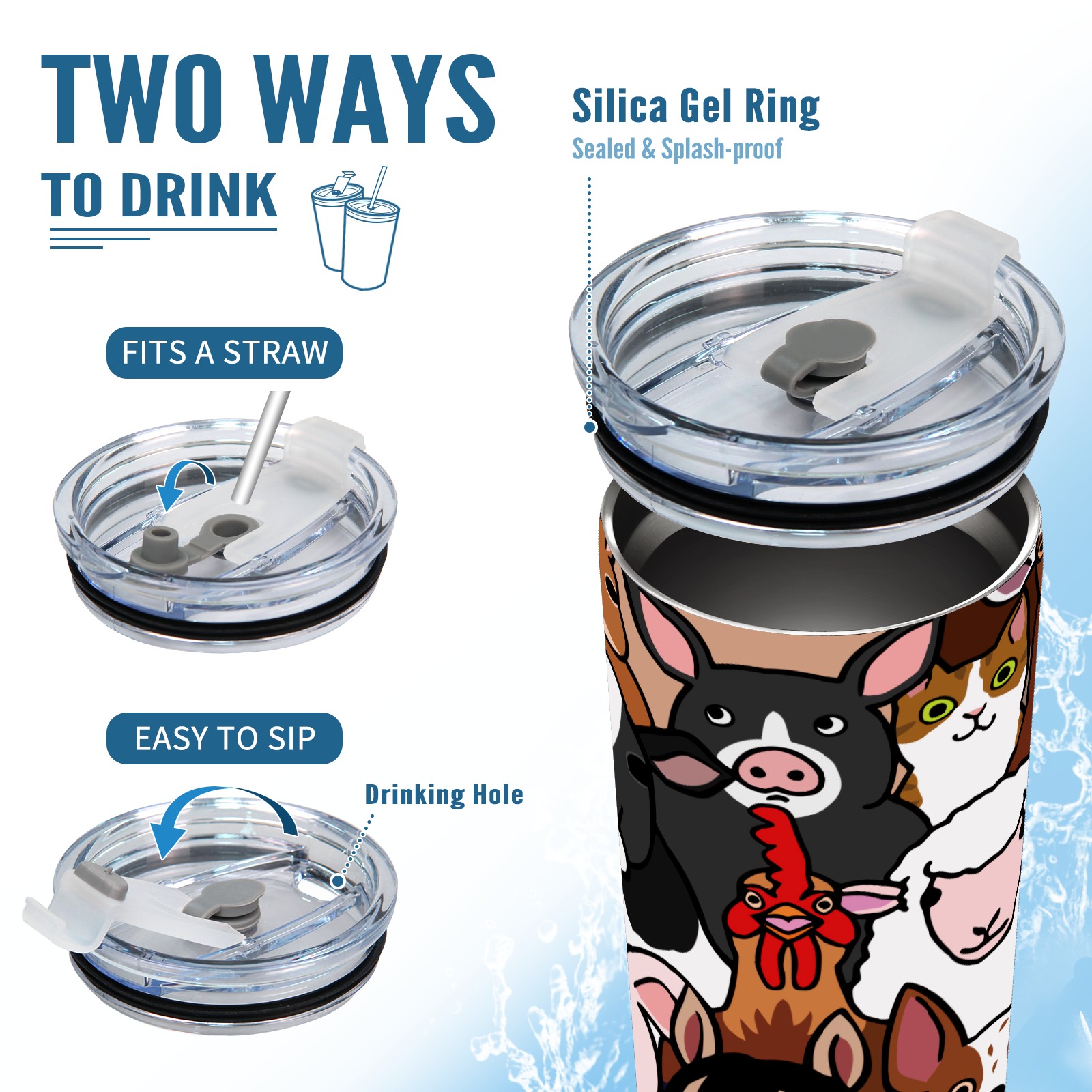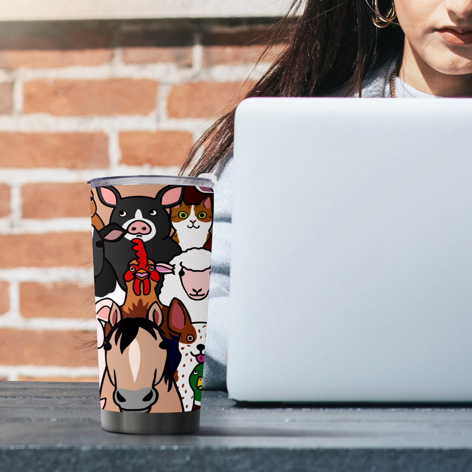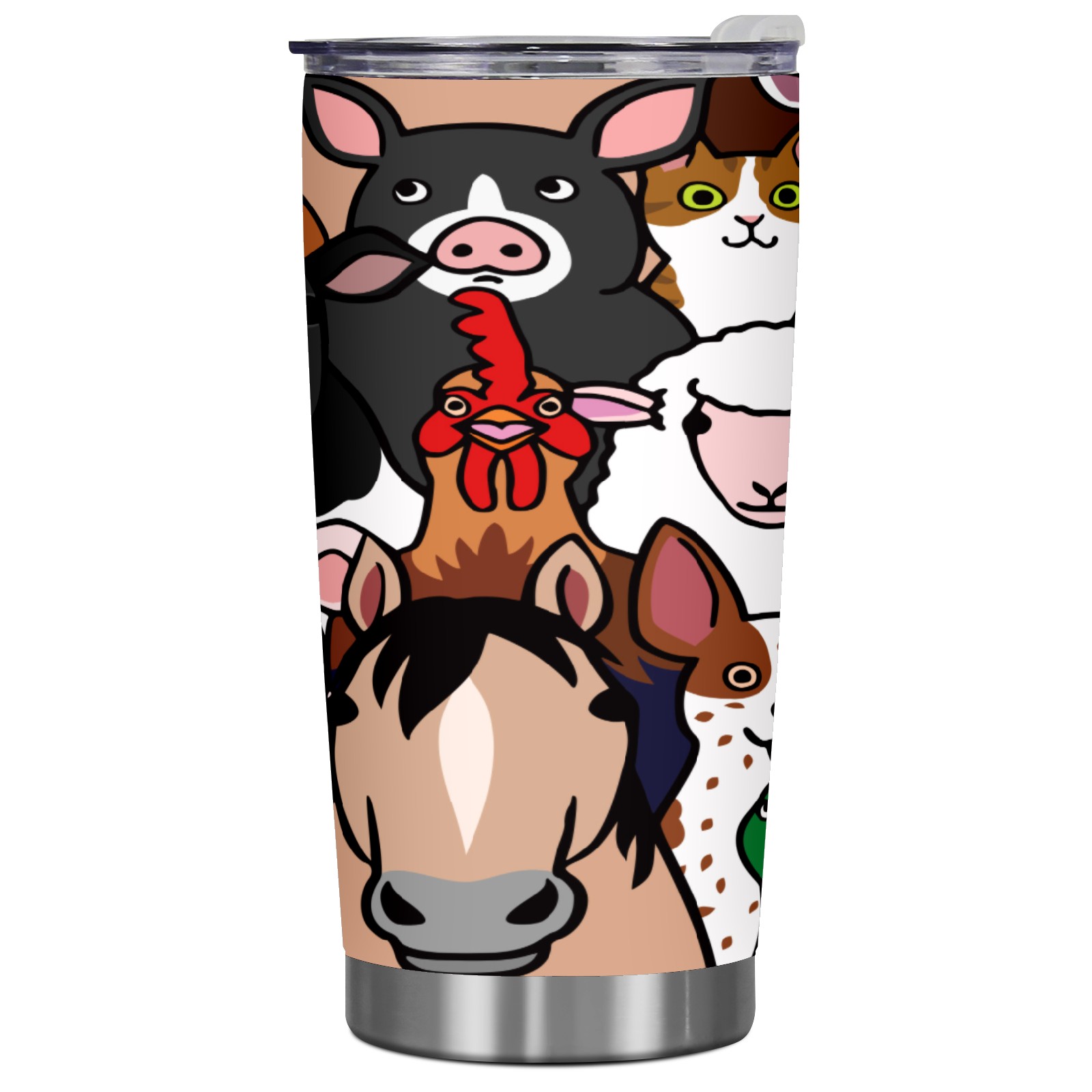 20 oz Tumbler Farm Animals Cow Pig Horse Sheep Cock Cat Stainless Steel Insulated Tumbler with Lid Double Wall Vacuum Insulated Travel Mug Cup for Coffee Ice Hot Drinks