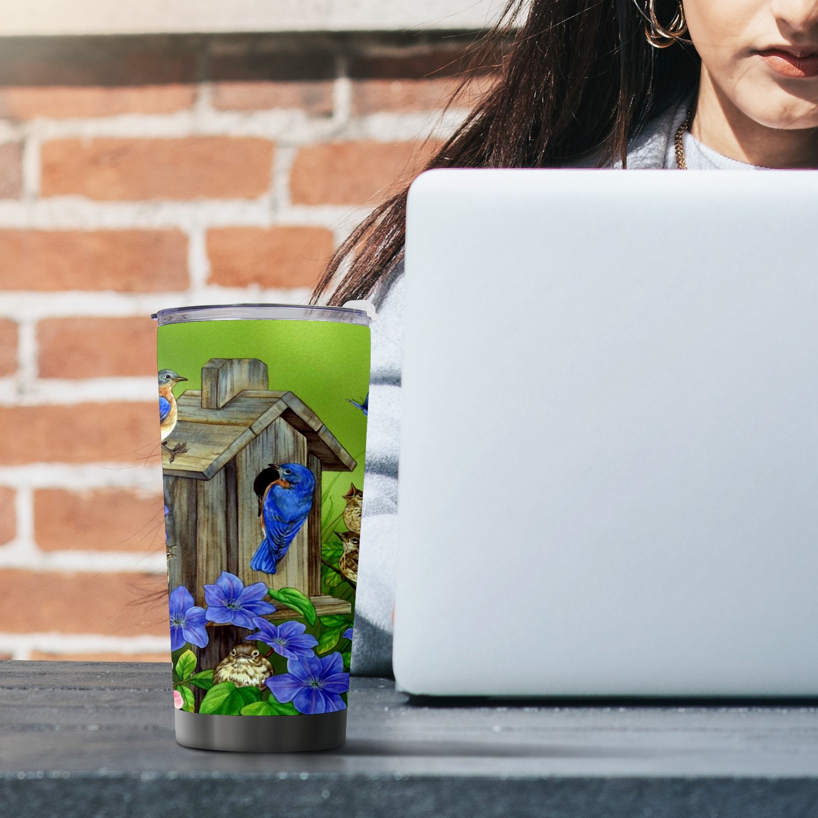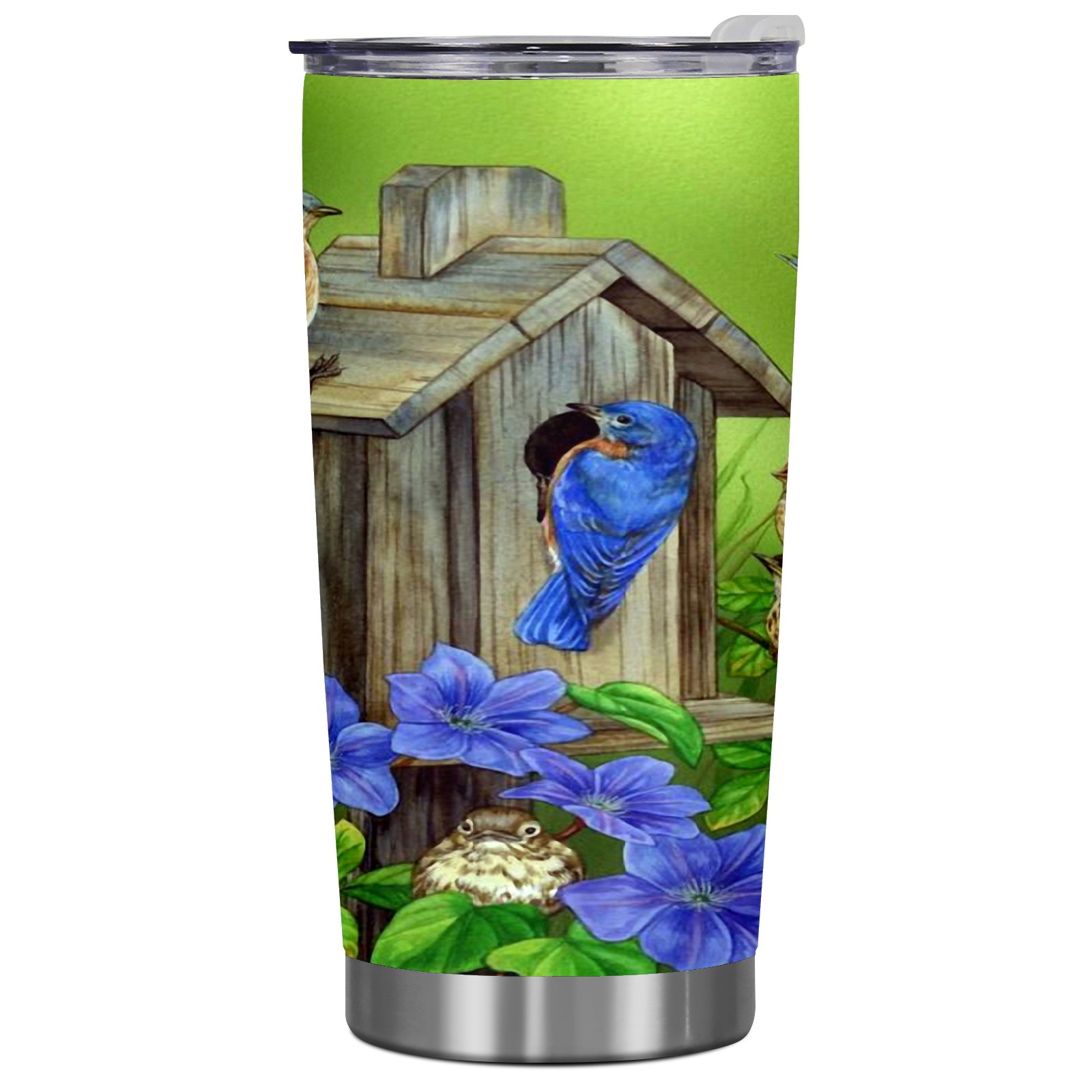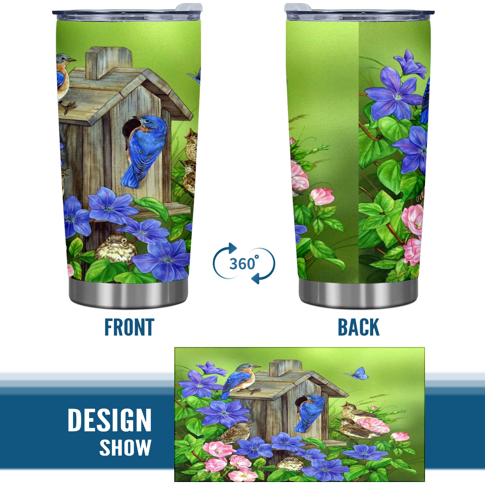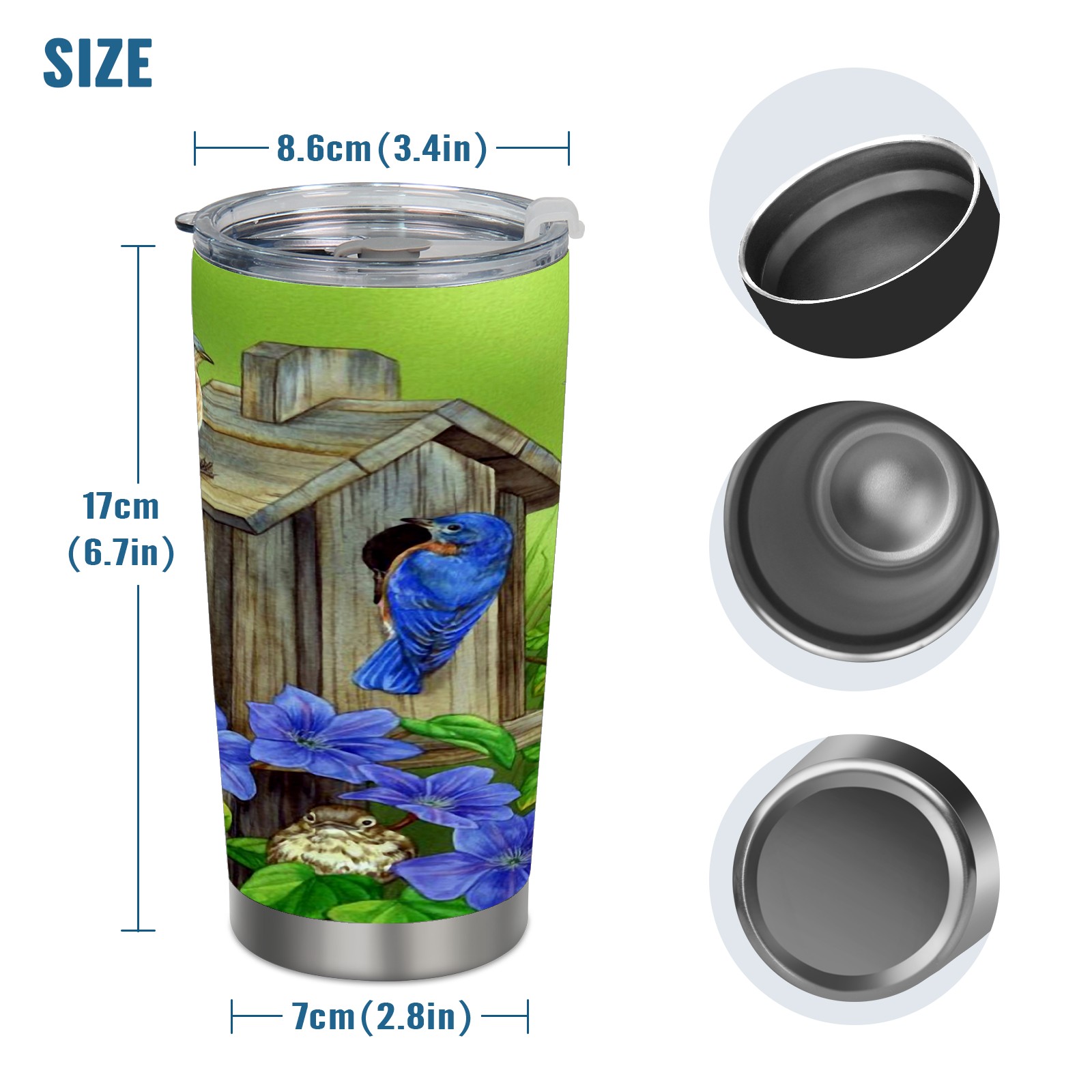20 oz Tumbler Blue Birds Flowers Butterfly Stainless Steel Insulated Tumbler with Lid Double Wall Vacuum Insulated Travel Mug Cup for Coffee Ice Hot Drinks