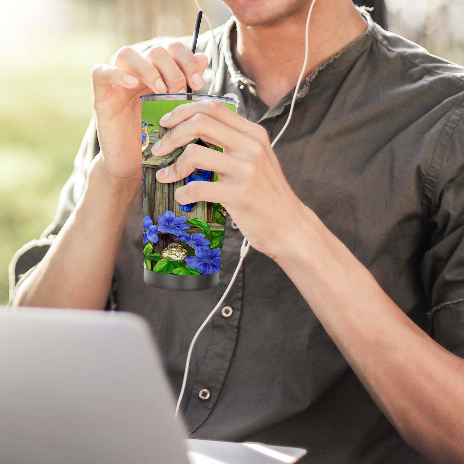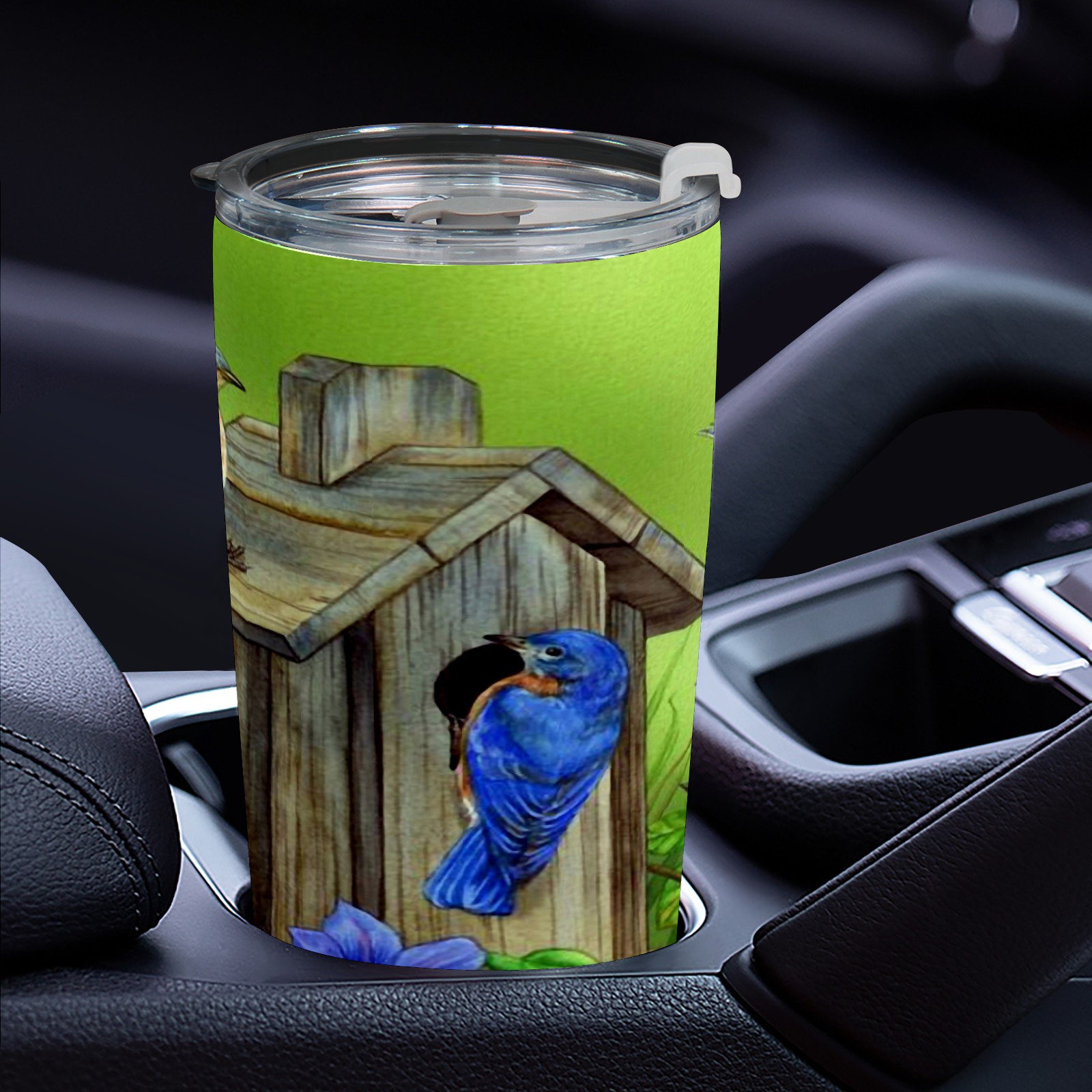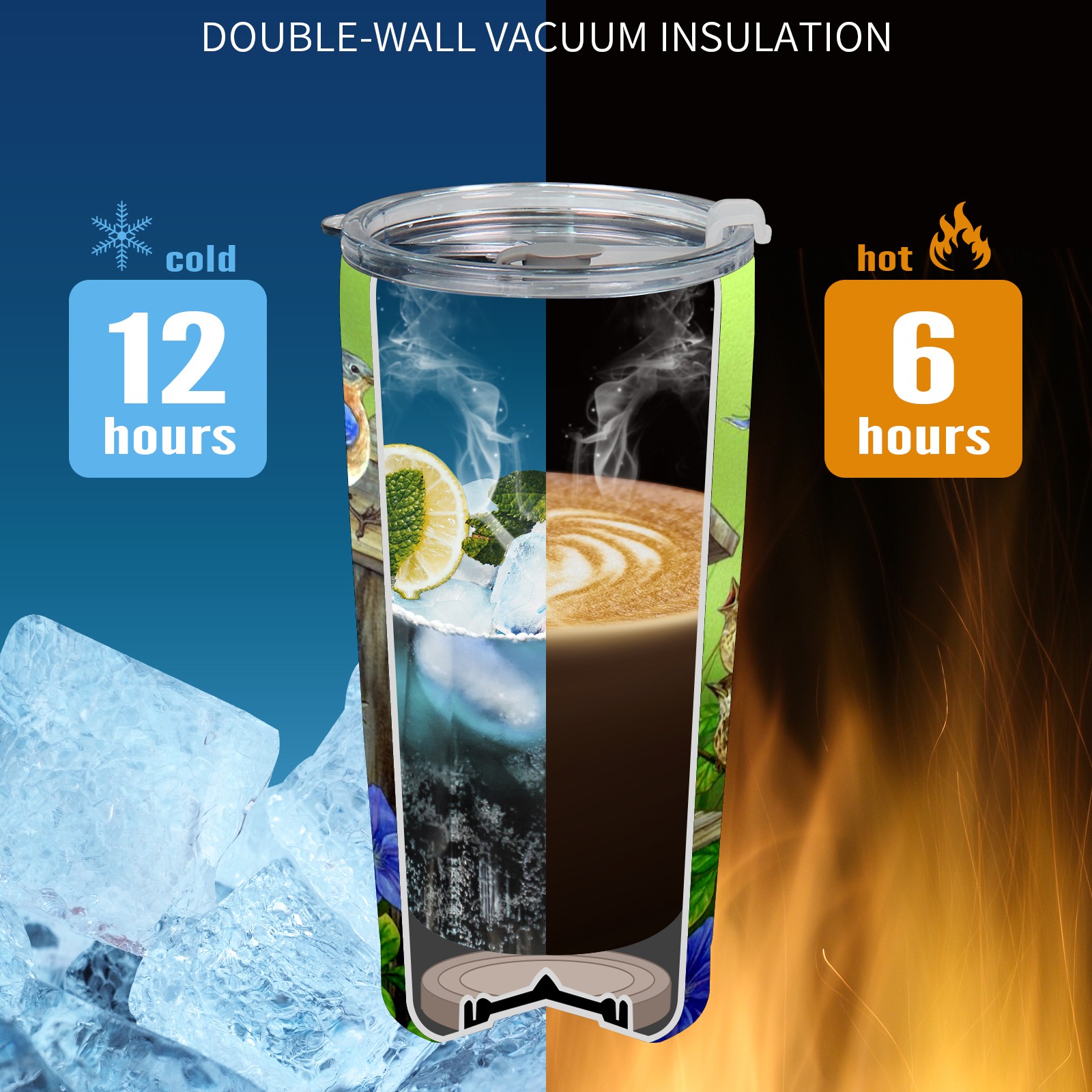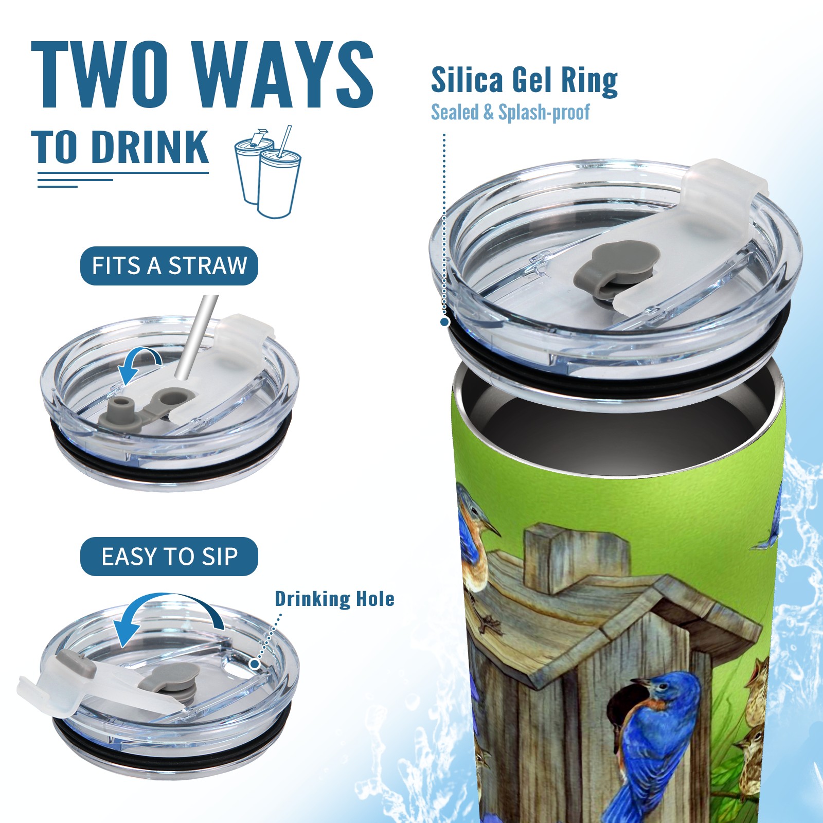 20 oz Tumbler Blue Birds Flowers Butterfly Stainless Steel Insulated Tumbler with Lid Double Wall Vacuum Insulated Travel Mug Cup for Coffee Ice Hot Drinks