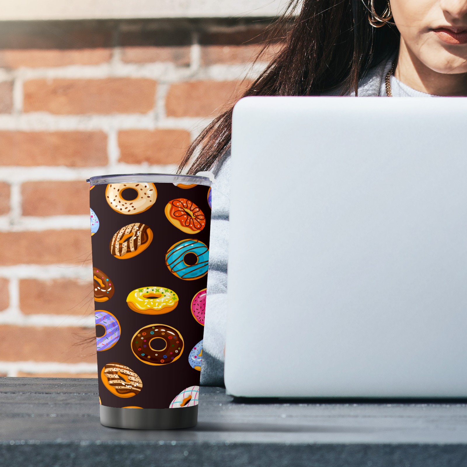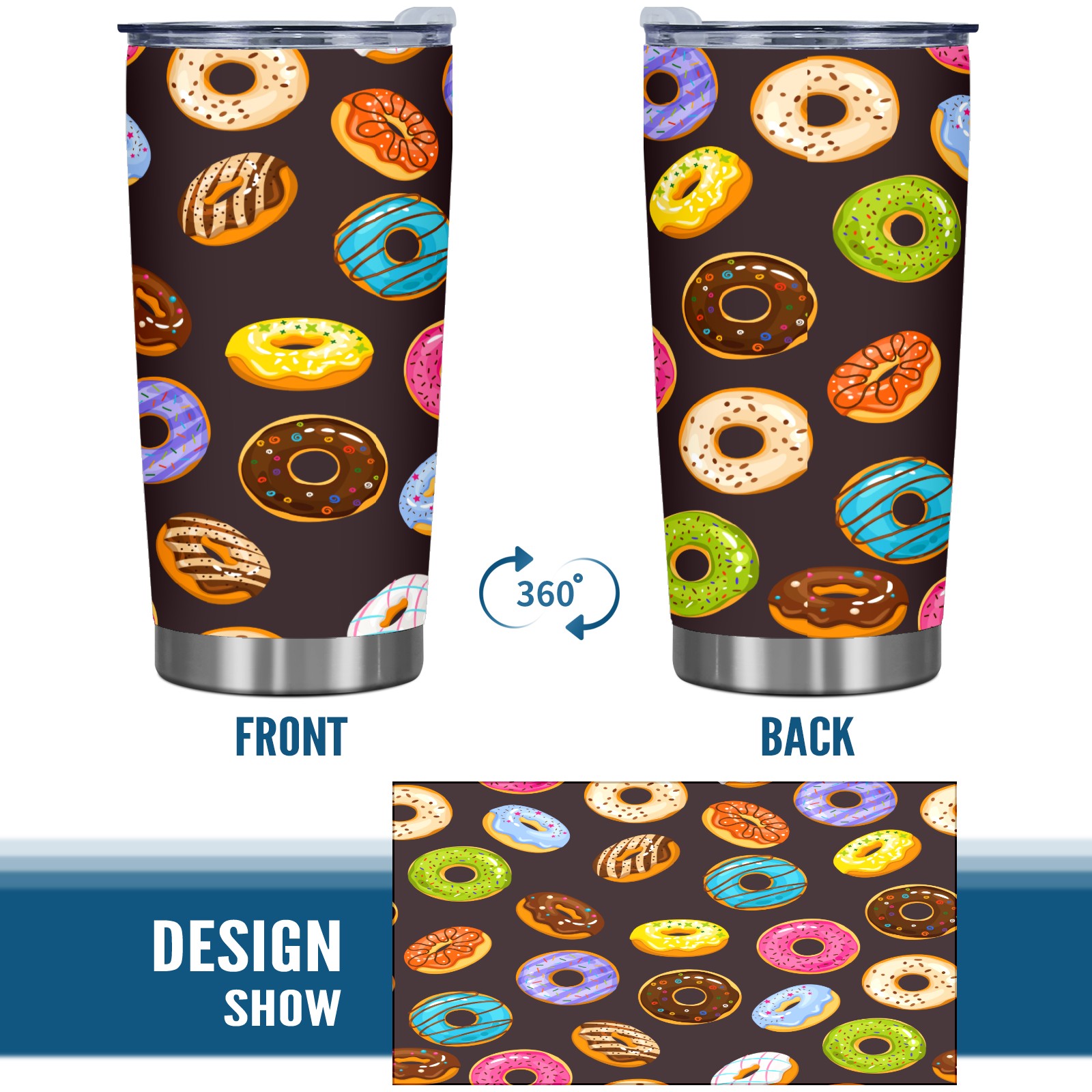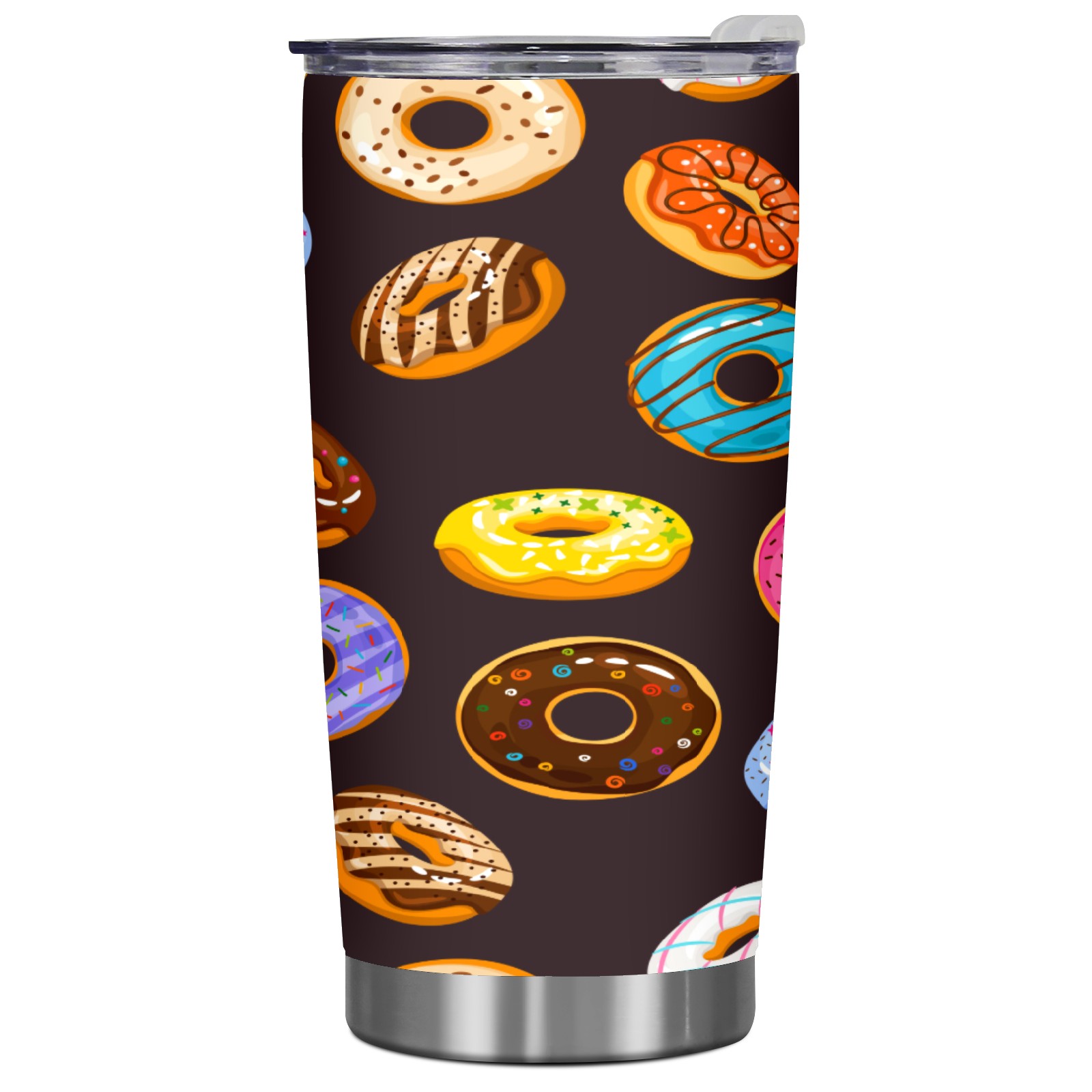 20 oz Tumbler Cartoon donut snacks yellow purple pink blue Stainless Steel Insulated Tumbler with Lid Double Wall Vacuum Insulated Travel Mug Cup for Coffee Ice Hot Drinks