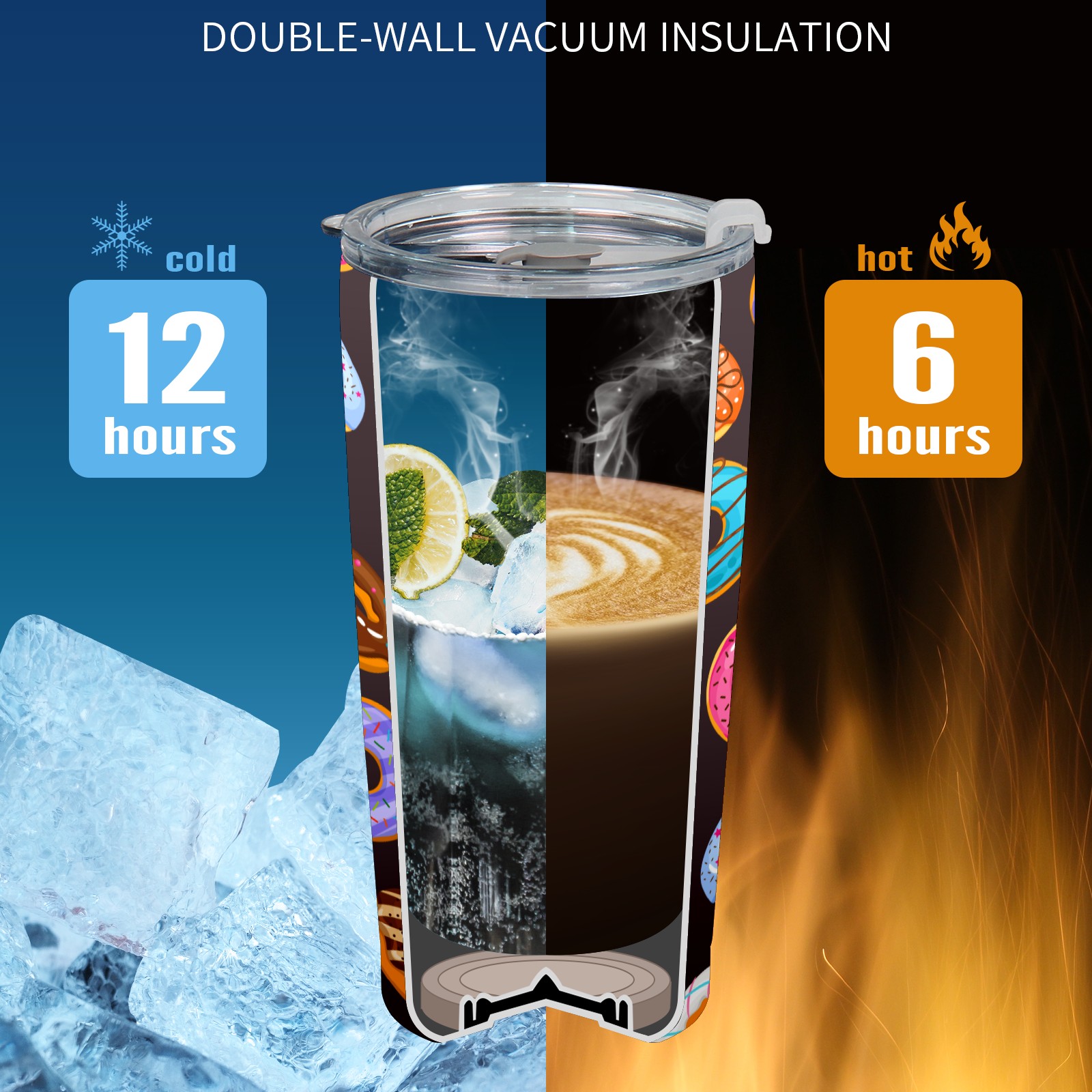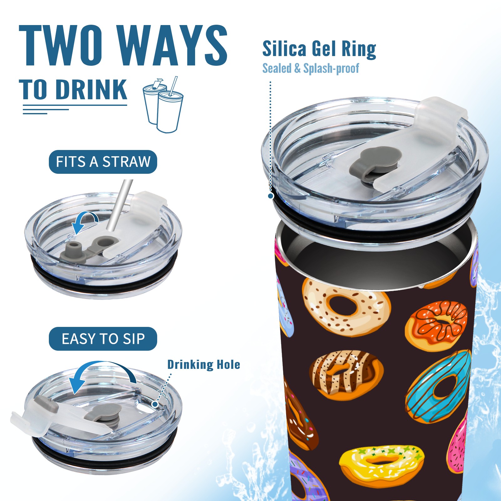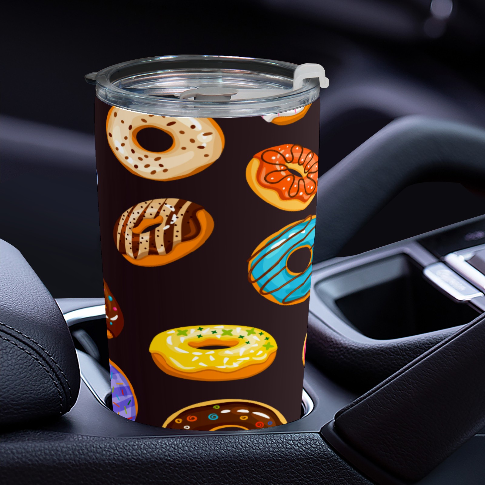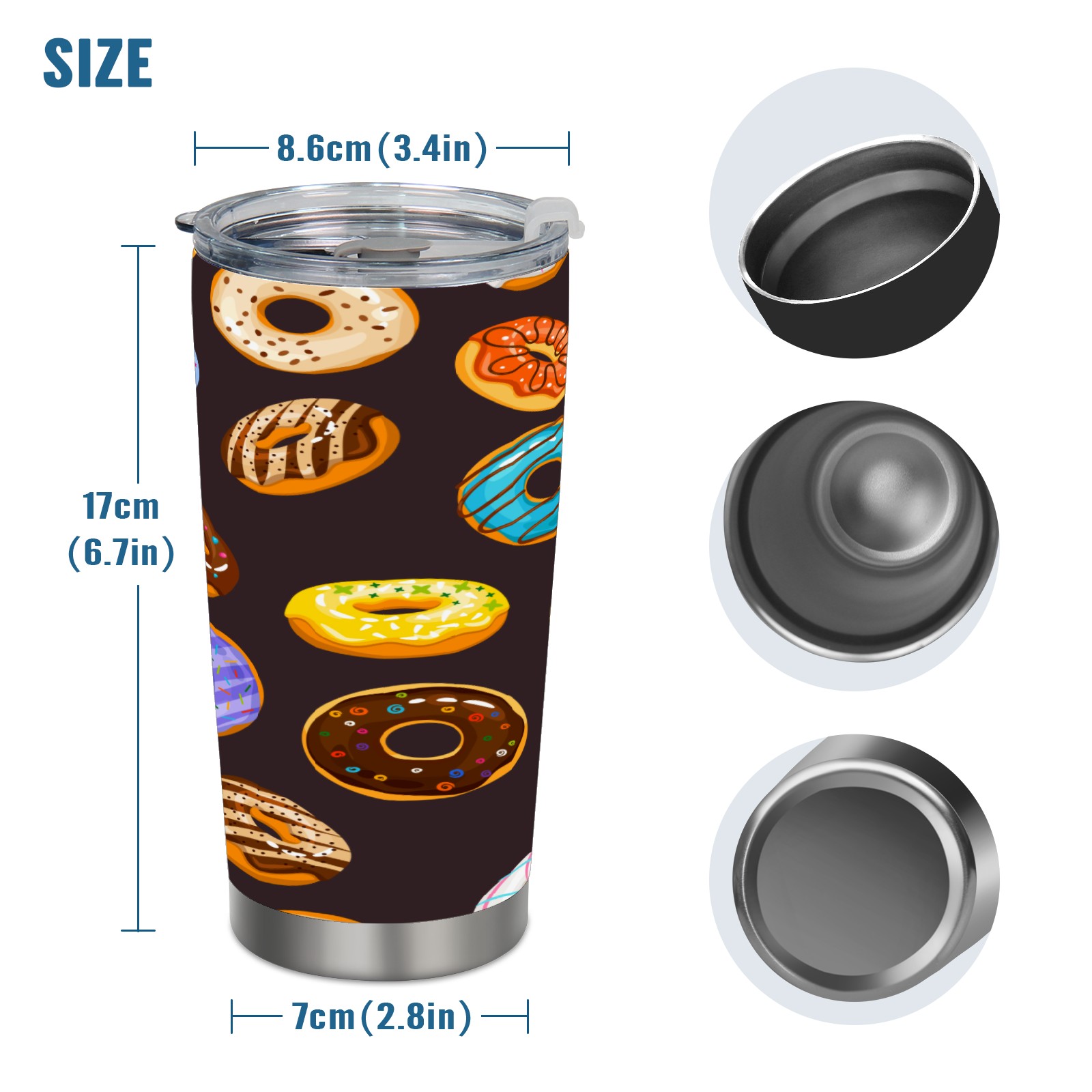 20 oz Tumbler Cartoon donut snacks yellow purple pink blue Stainless Steel Insulated Tumbler with Lid Double Wall Vacuum Insulated Travel Mug Cup for Coffee Ice Hot Drinks