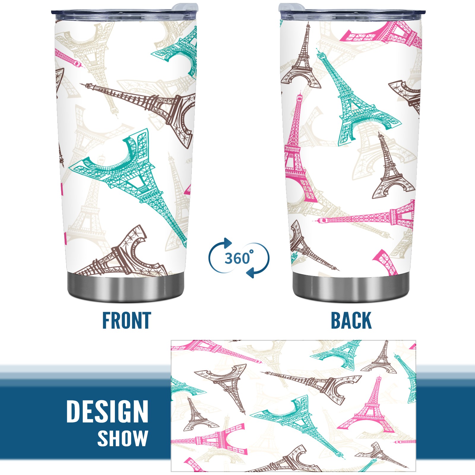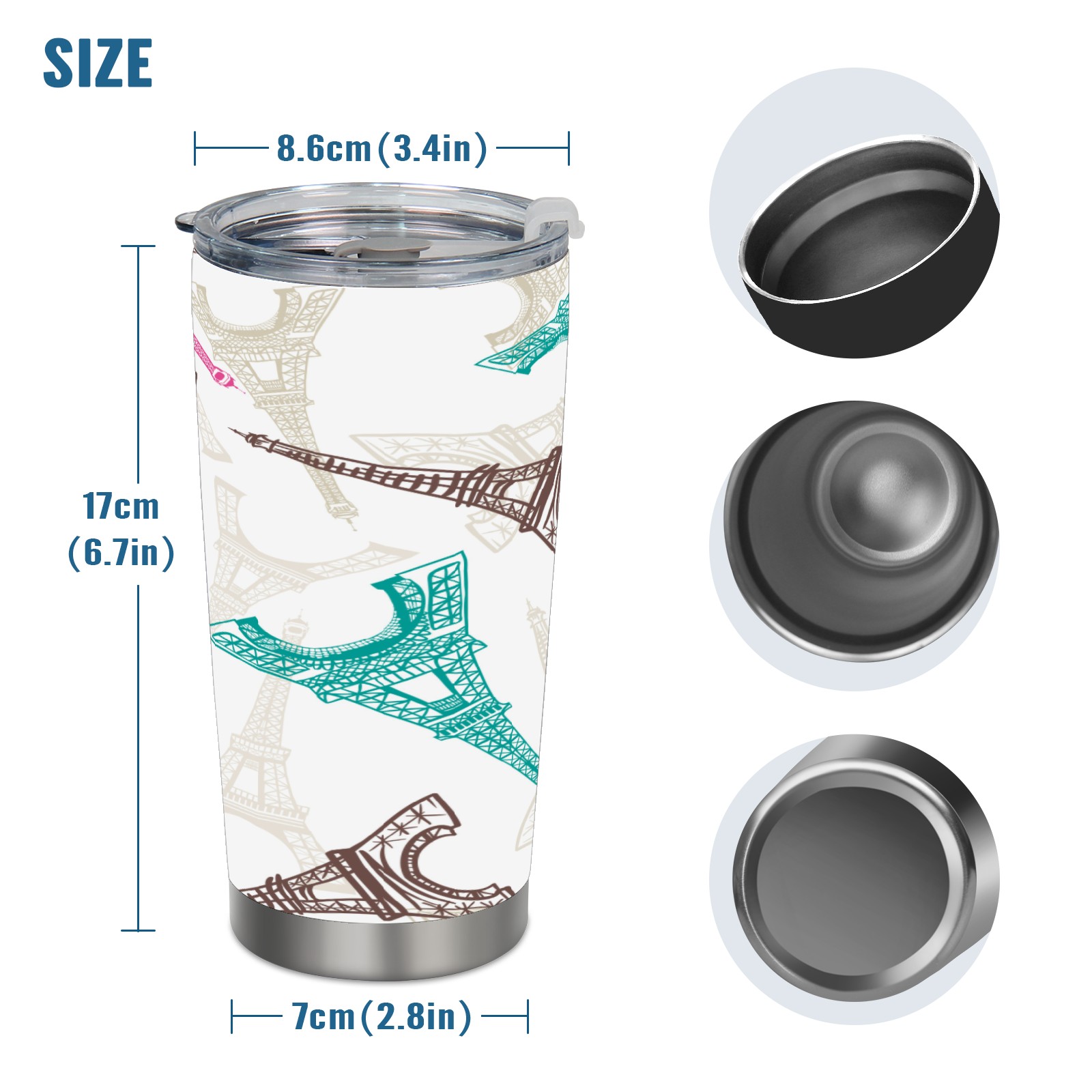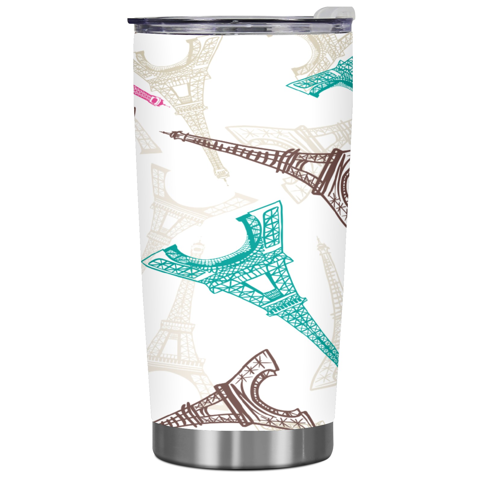 20 oz Tumbler Pink blue Eiffel tower Stainless Steel Insulated Tumbler with Lid Double Wall Vacuum Insulated Travel Mug Cup for Coffee Ice Hot Drinks
