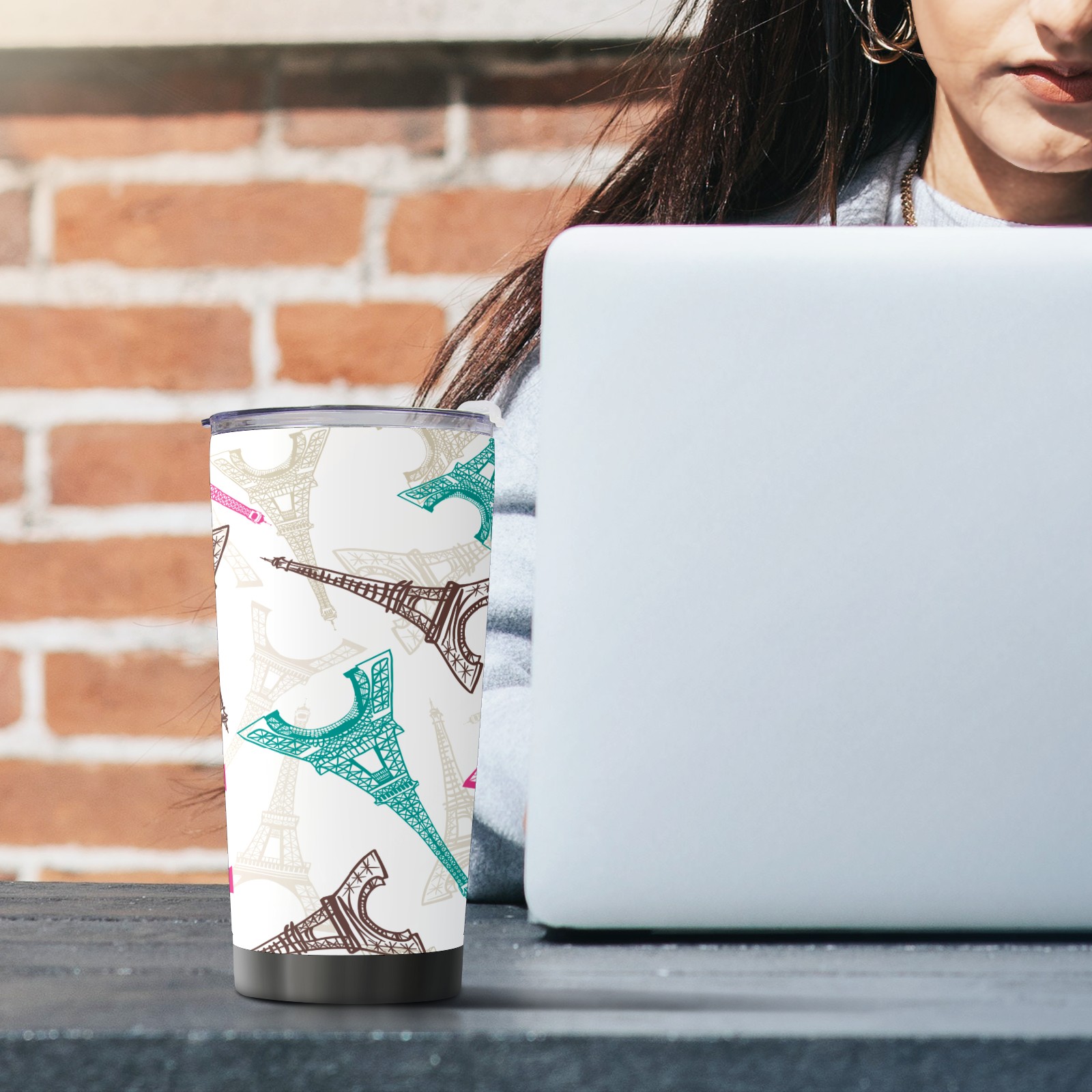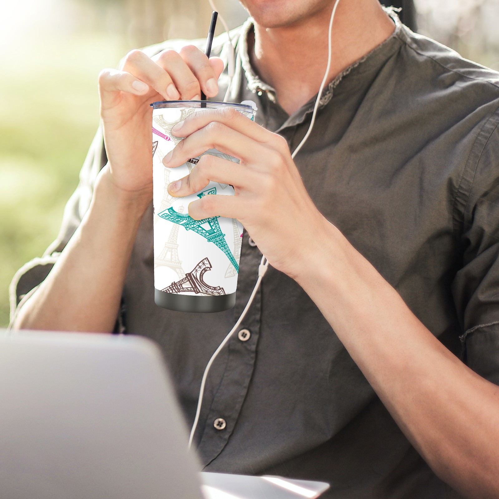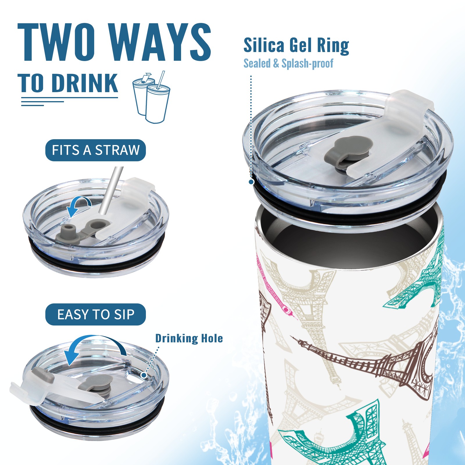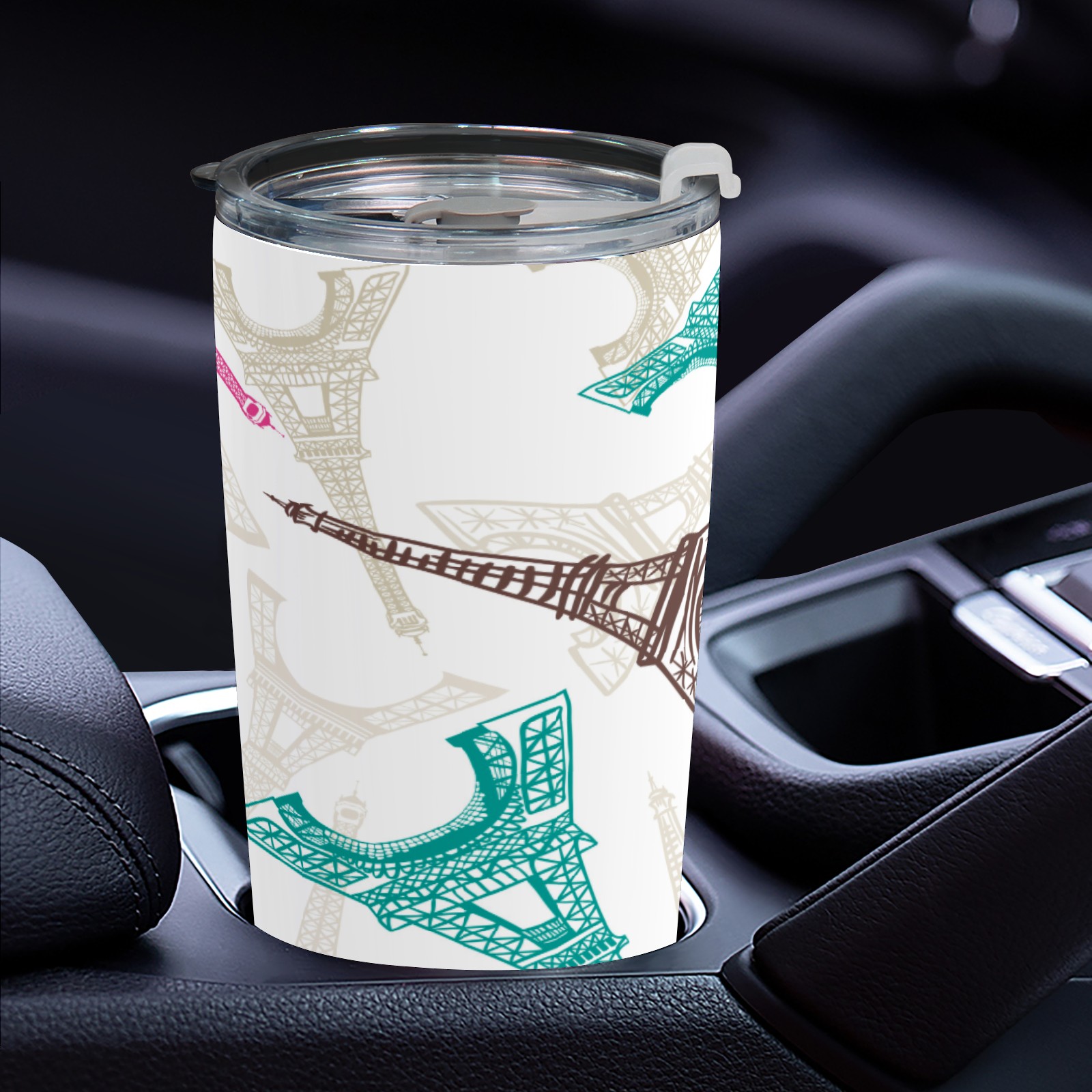 20 oz Tumbler Pink blue Eiffel tower Stainless Steel Insulated Tumbler with Lid Double Wall Vacuum Insulated Travel Mug Cup for Coffee Ice Hot Drinks