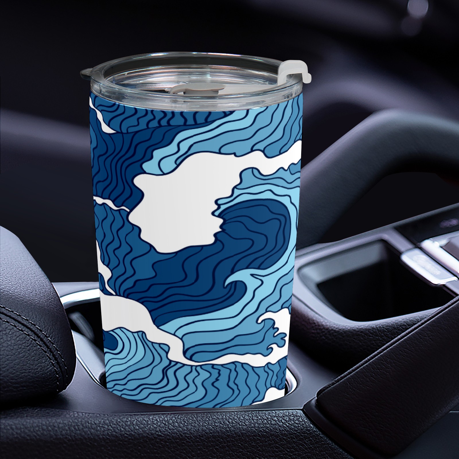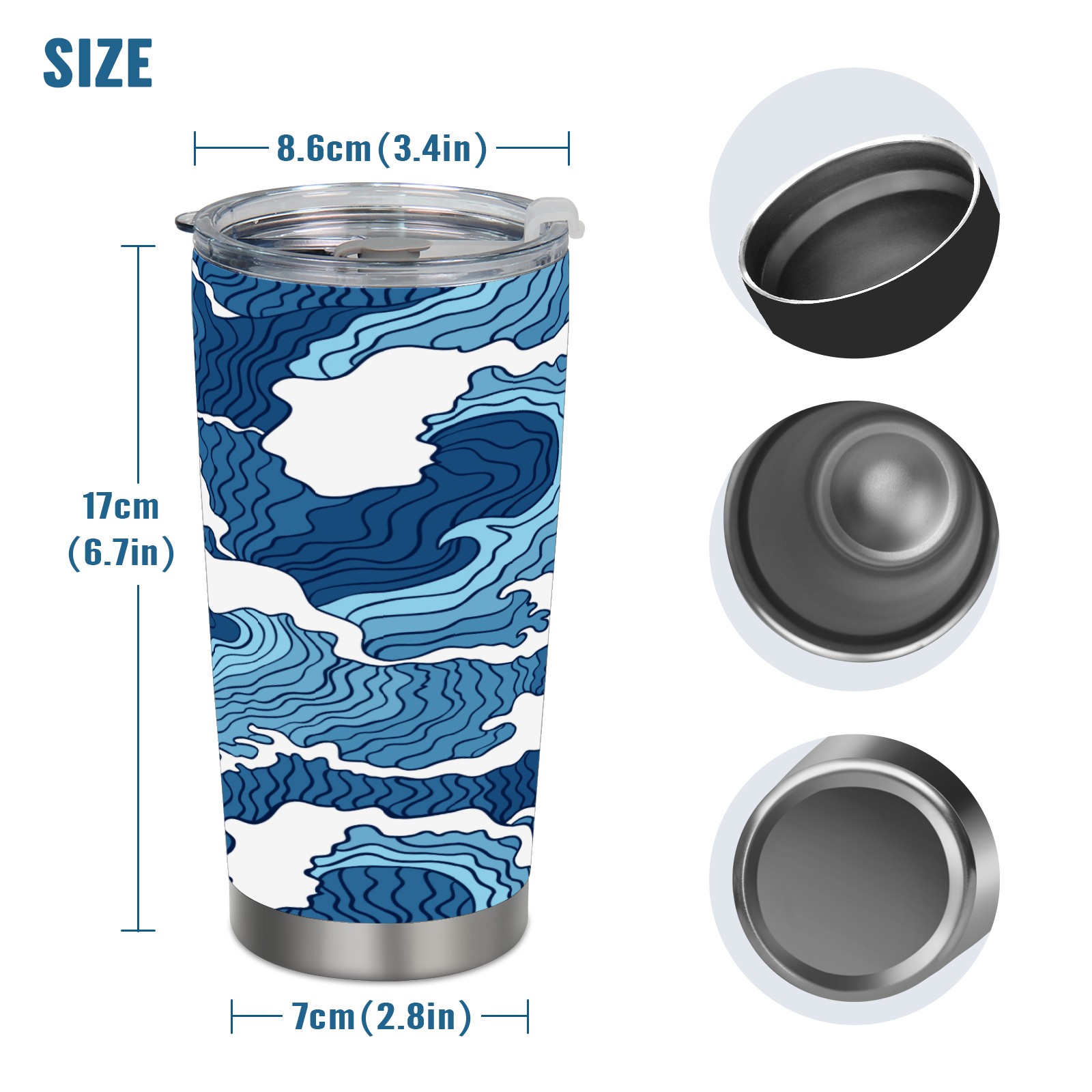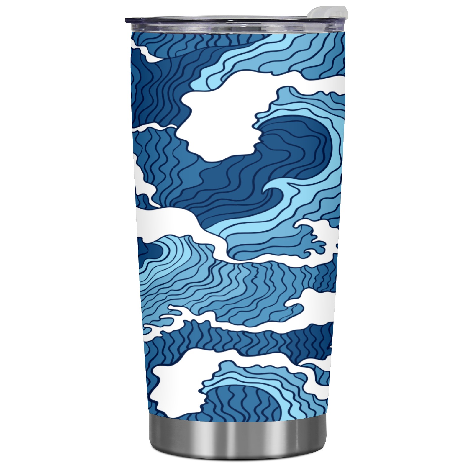 20 oz Tumbler Striped blue waves Stainless Steel Insulated Tumbler with Lid Double Wall Vacuum Insulated Travel Mug Cup for Coffee Ice Hot Drinks