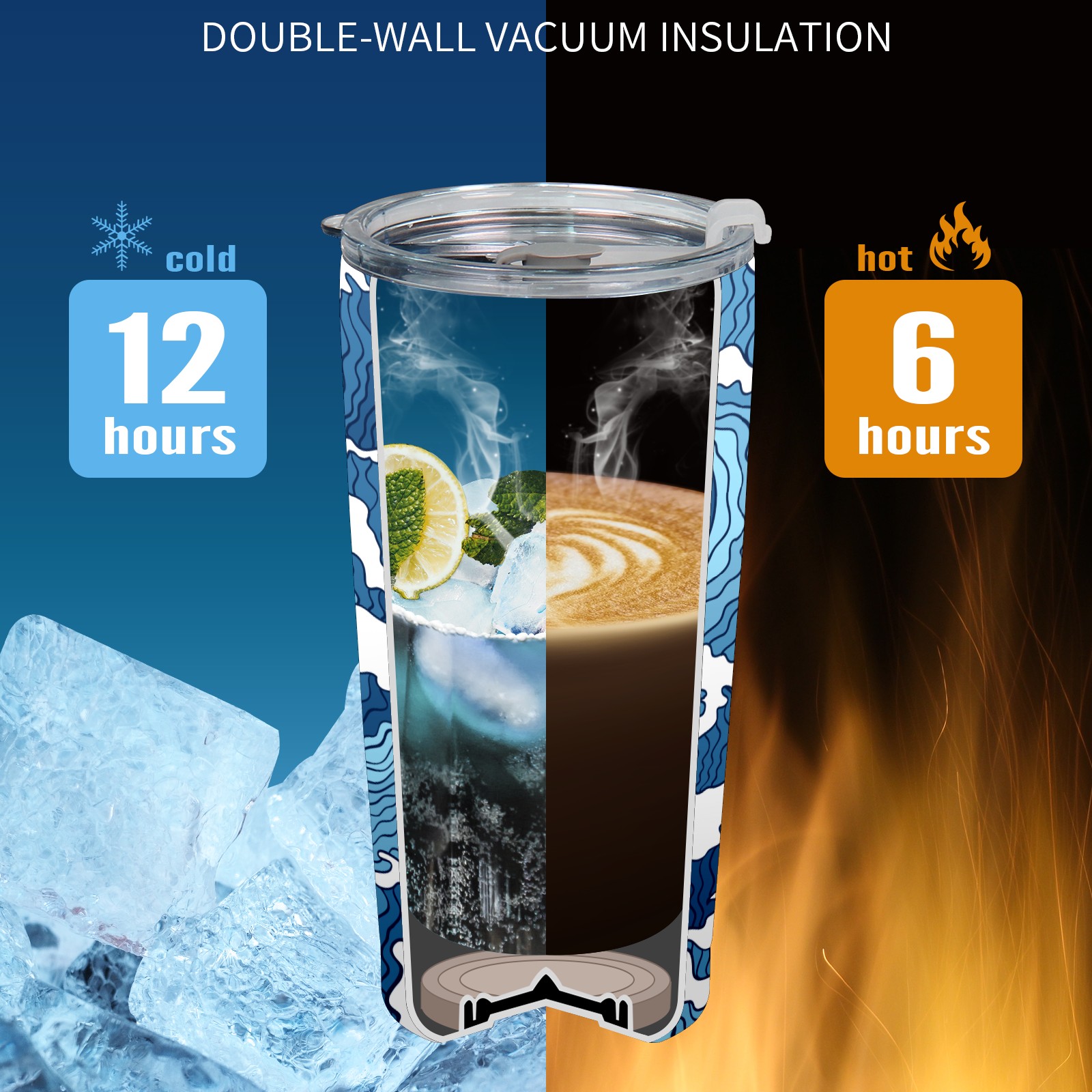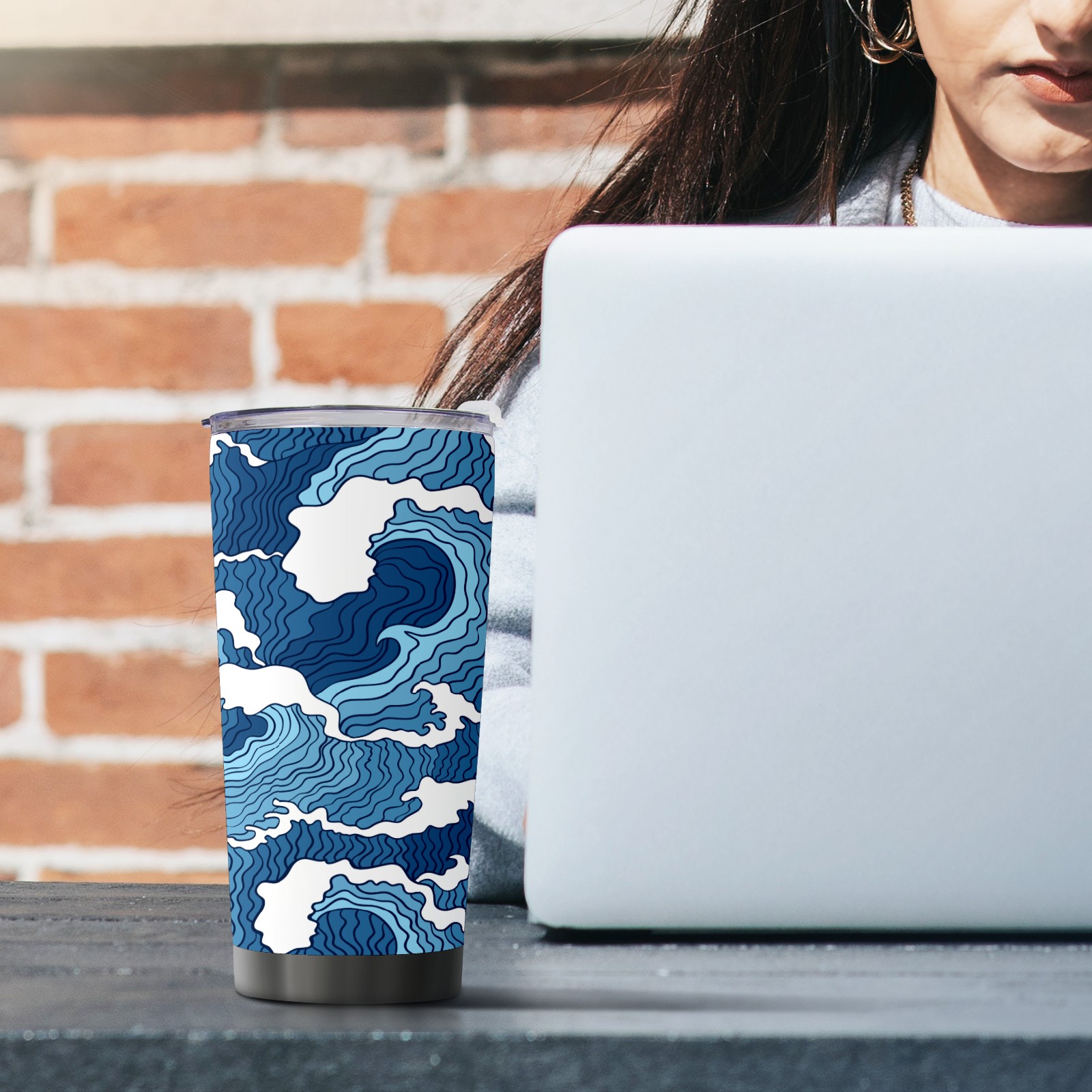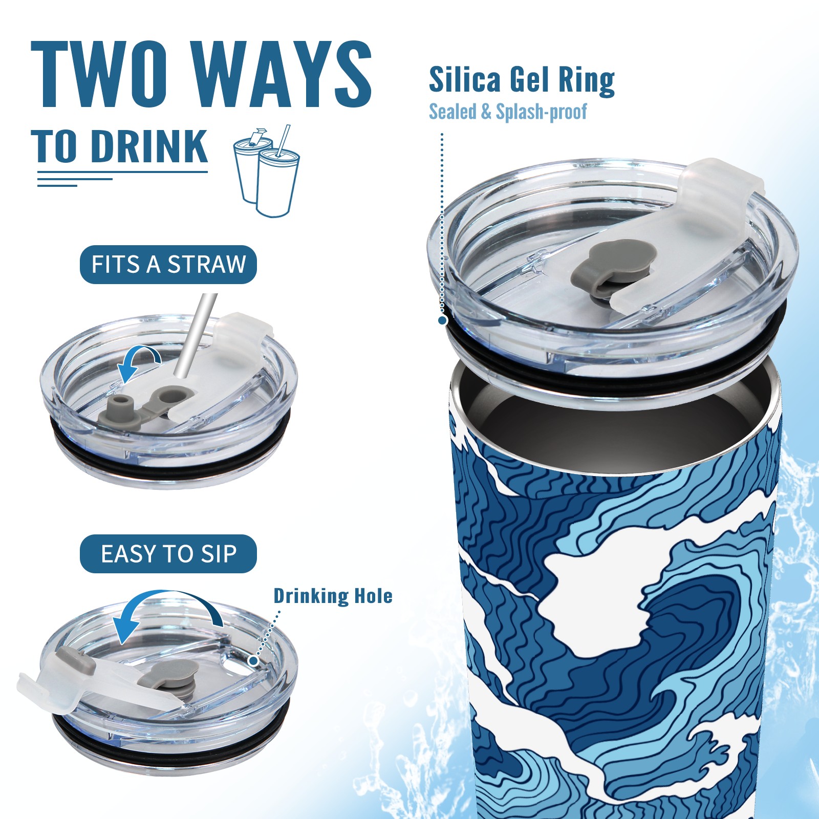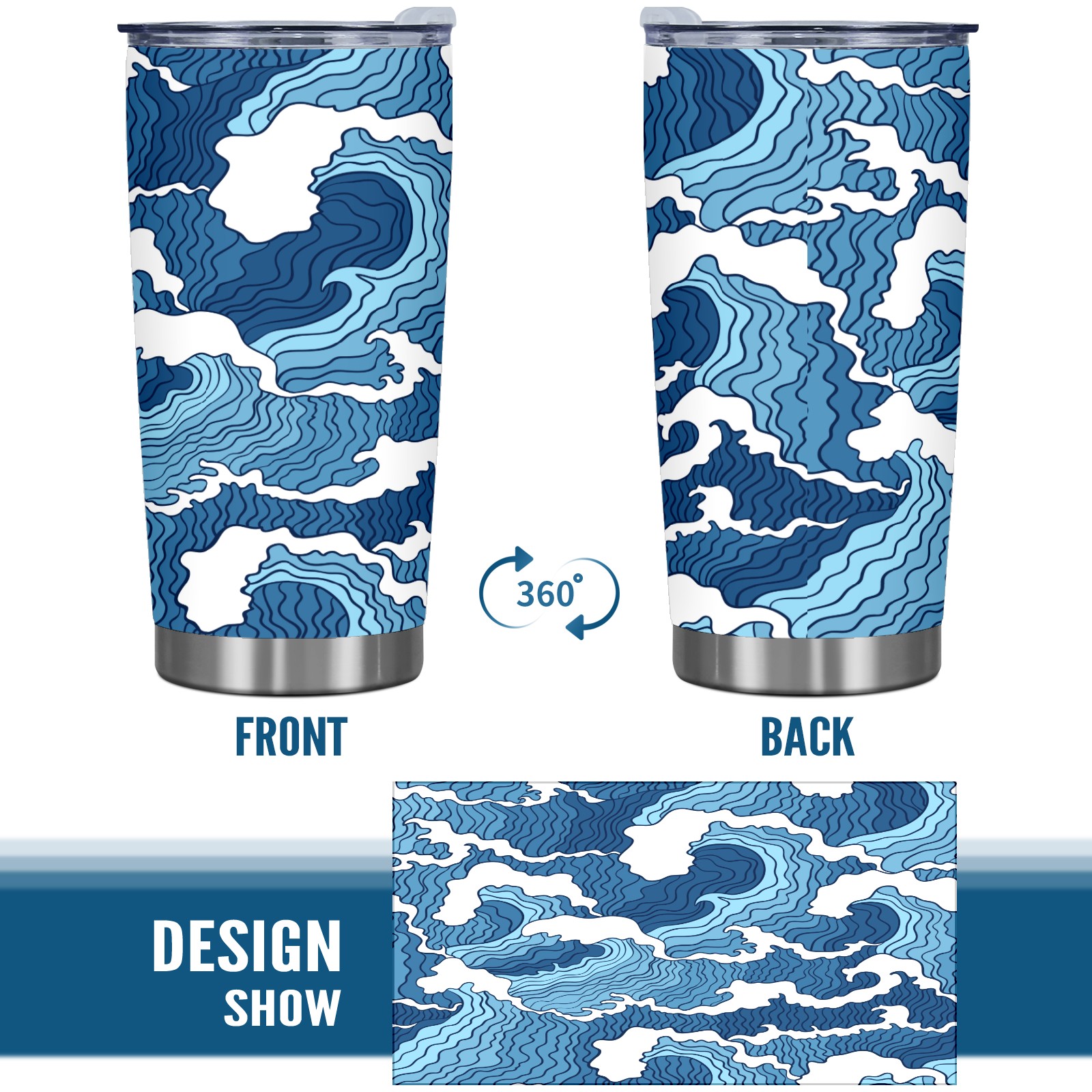 20 oz Tumbler Striped blue waves Stainless Steel Insulated Tumbler with Lid Double Wall Vacuum Insulated Travel Mug Cup for Coffee Ice Hot Drinks